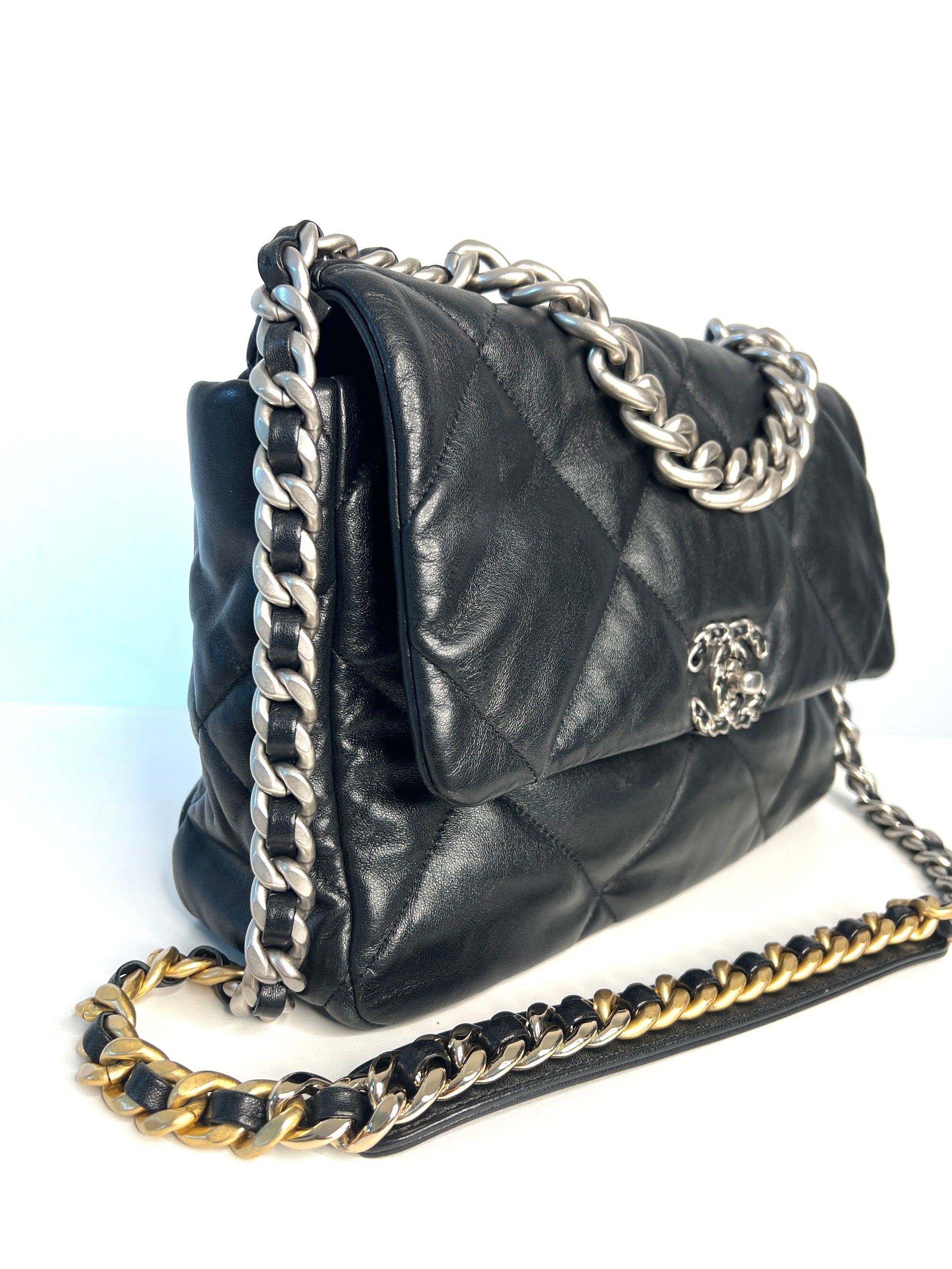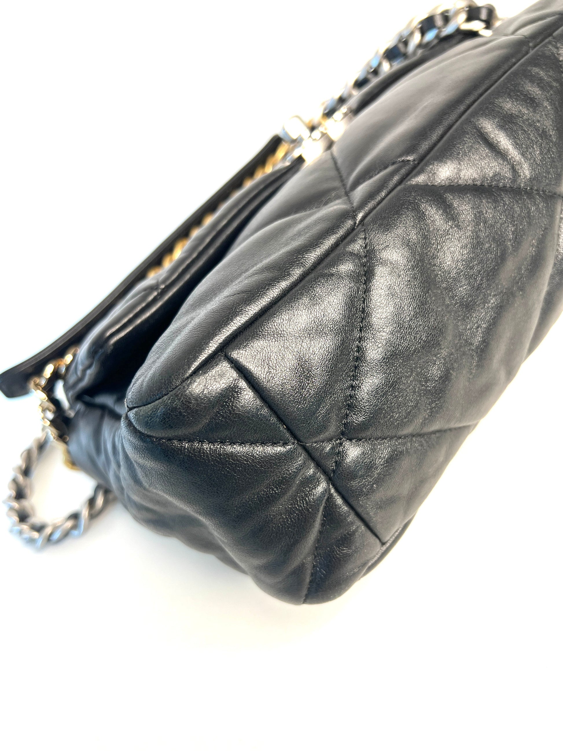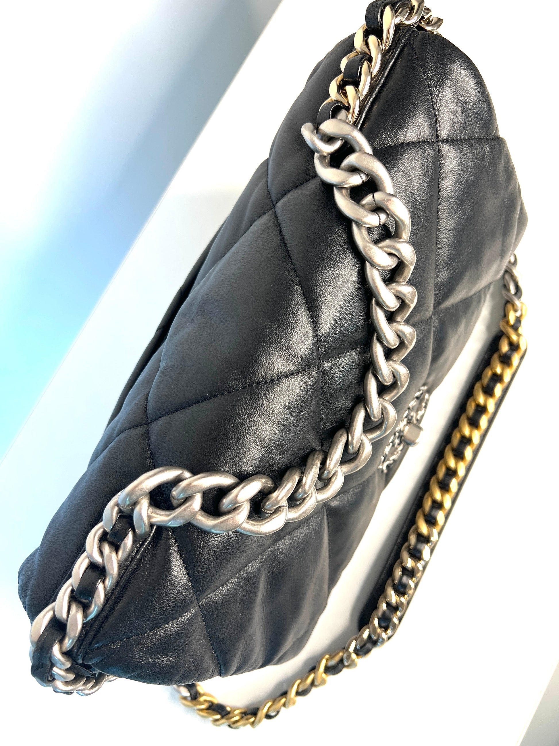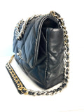 Chanel 19 Large Black Lambskin Chain Shoulder Bag - Preloved