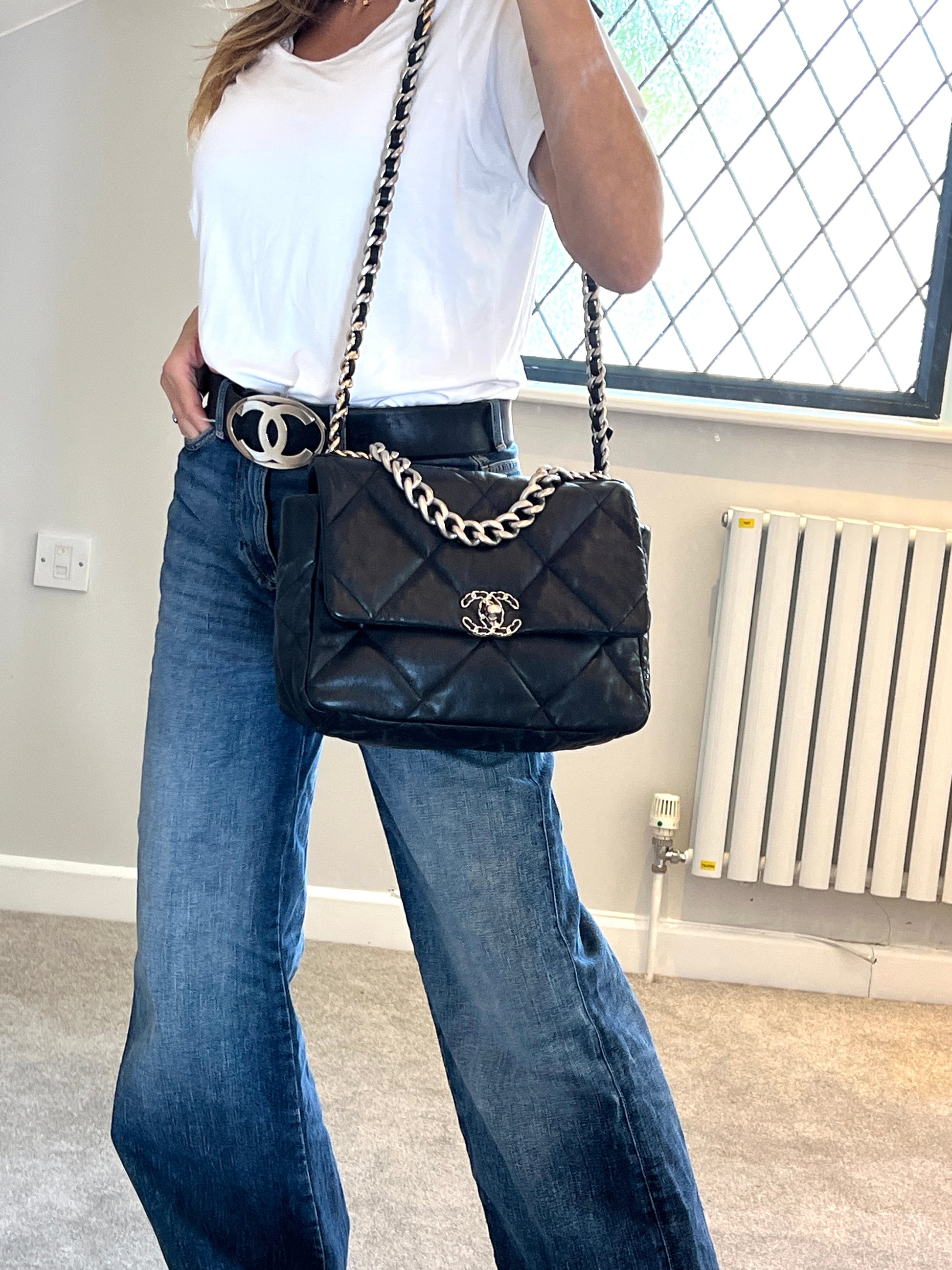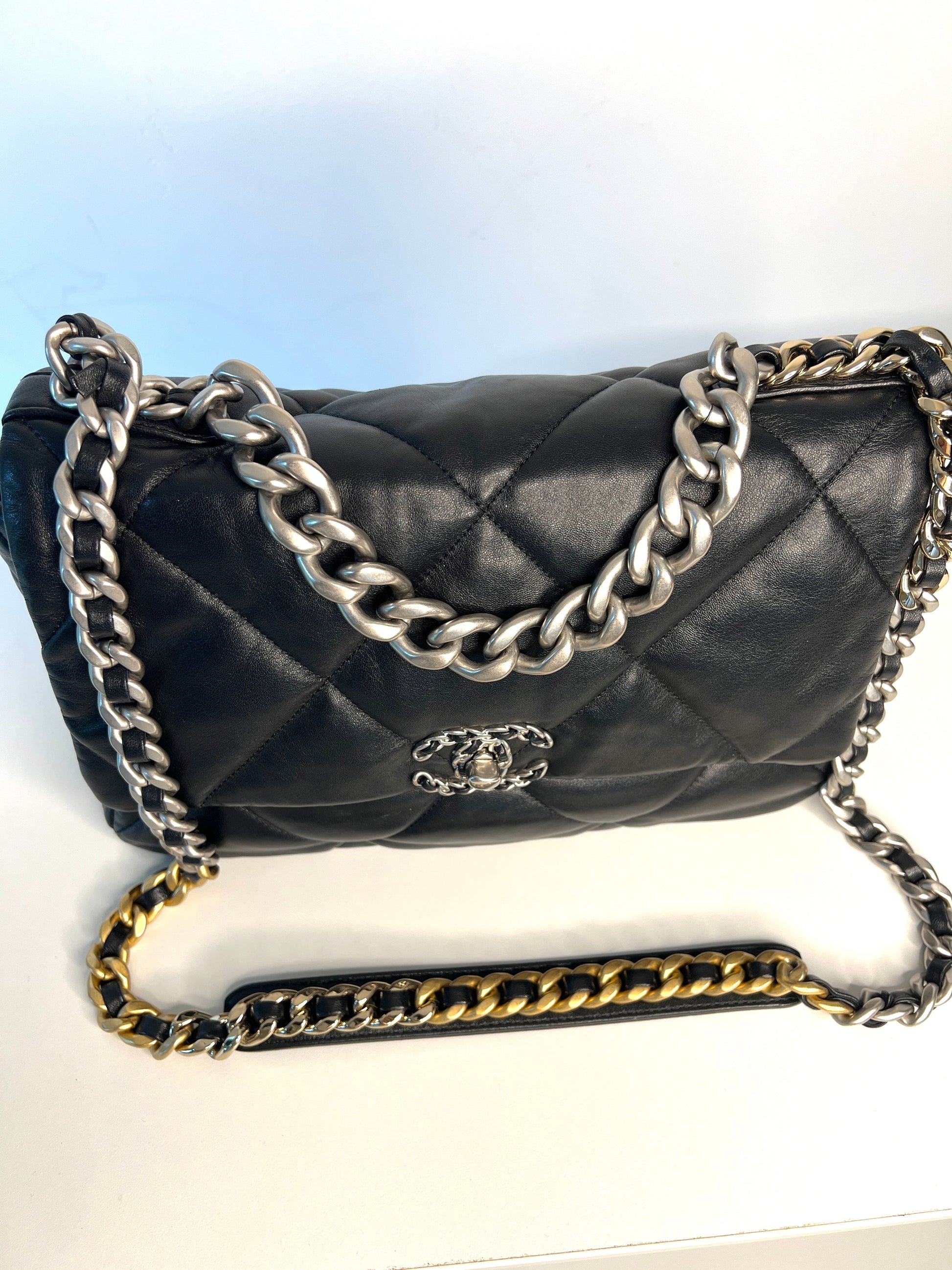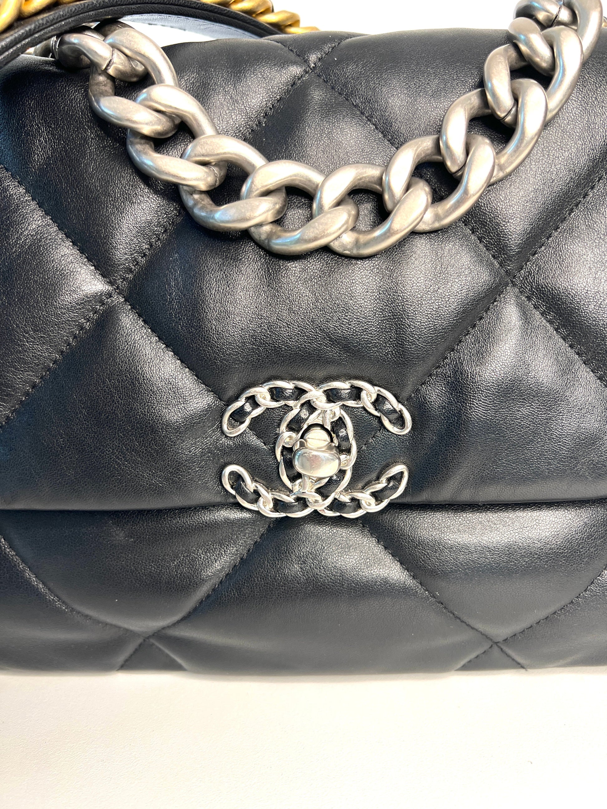 Chanel 19 Large Black Lambskin Chain Shoulder Bag - Preloved