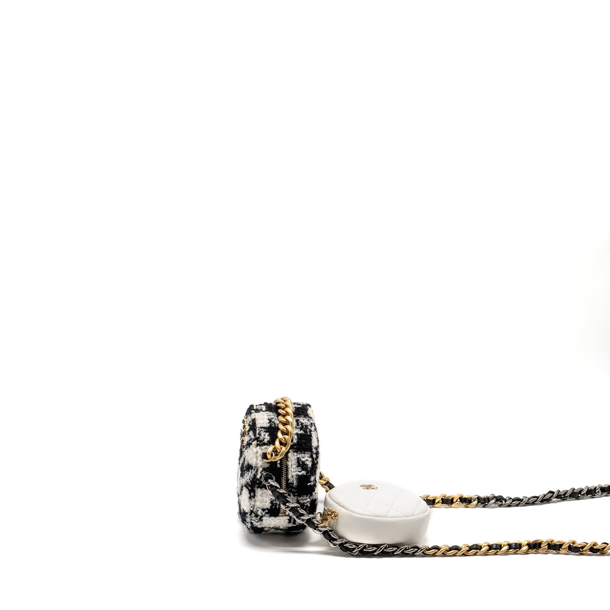 Chanel 19 round clutch with chain with coin purse tweed / lambskin black/ white GHW