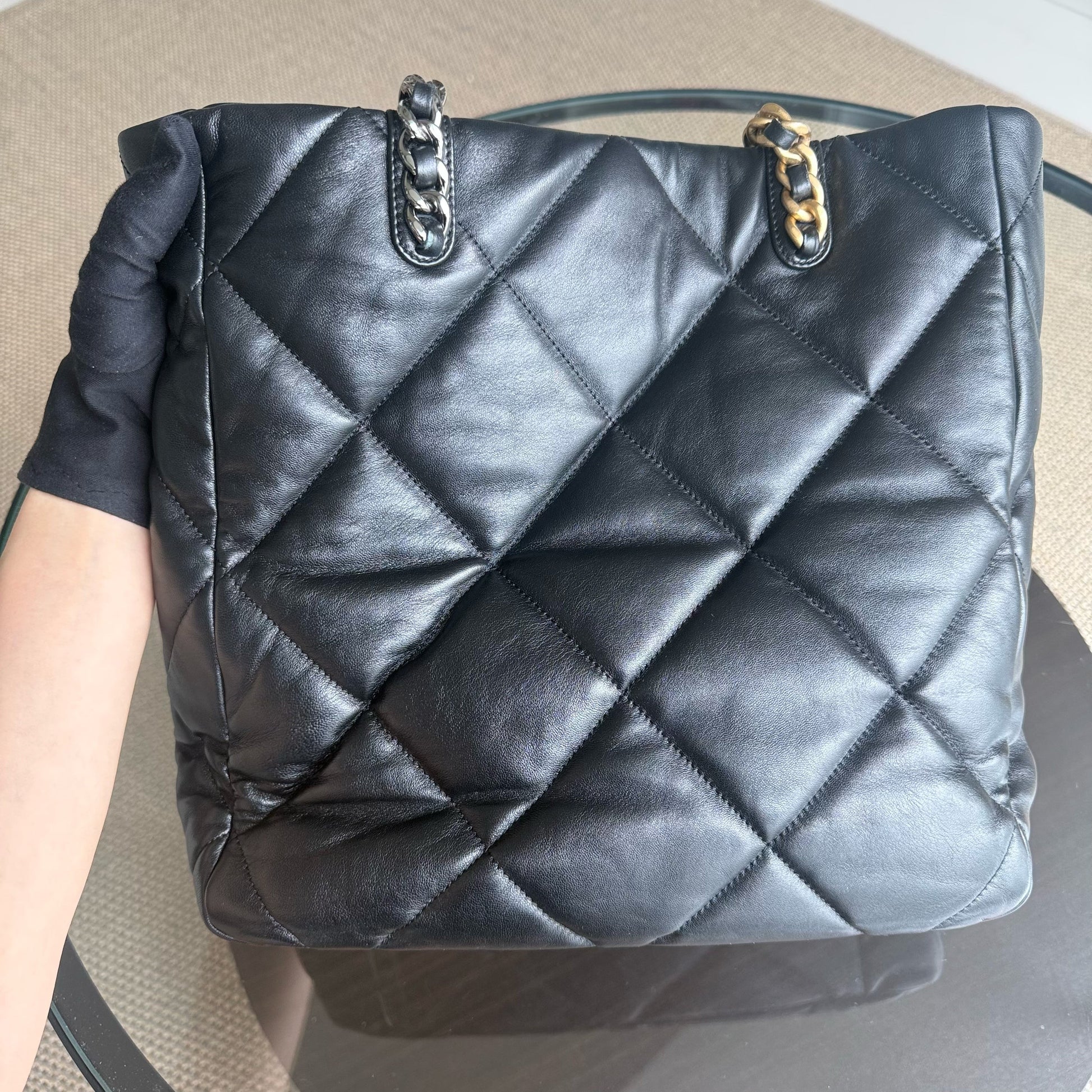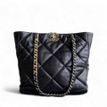 Chanel 19 Shopping Bag - Quilted Goatskin Black Gold Hardware Microchip
