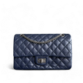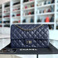Chanel 2.55 225 Reissue - Small 24CM Quilted Grained Calfskin Dark Blue Ruthenium Silver Hardware Series 22