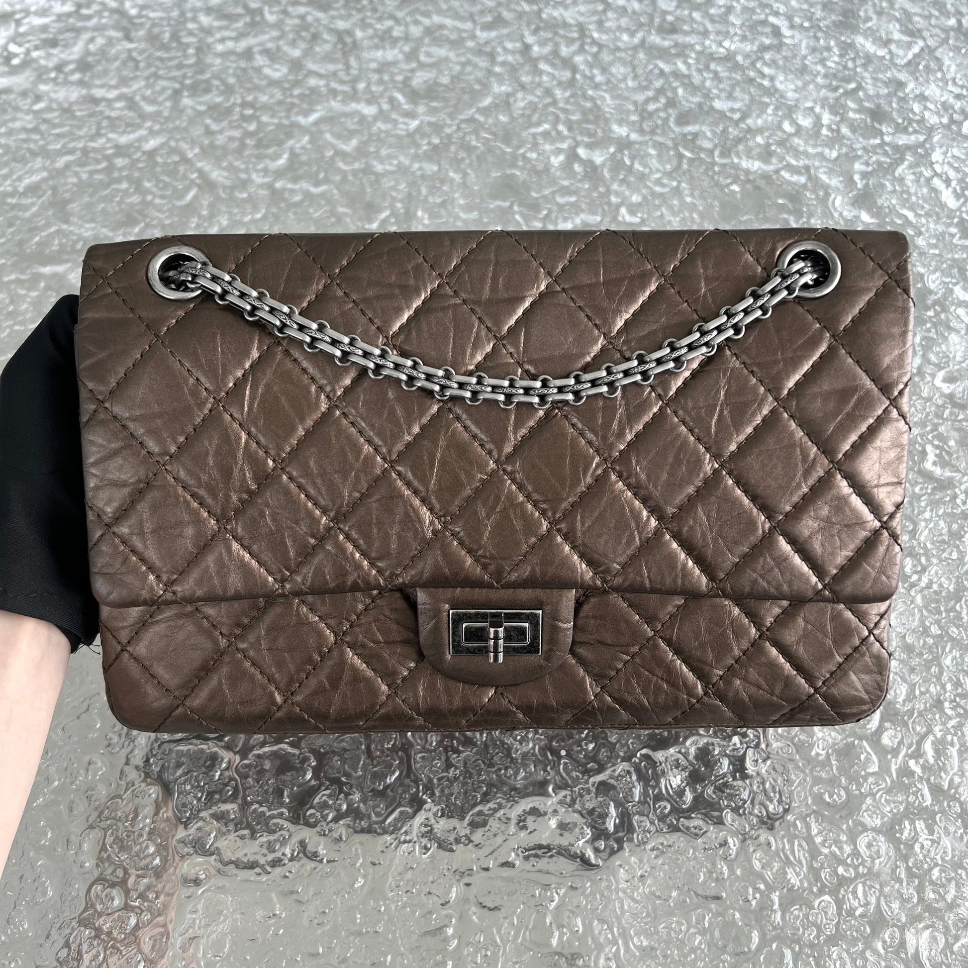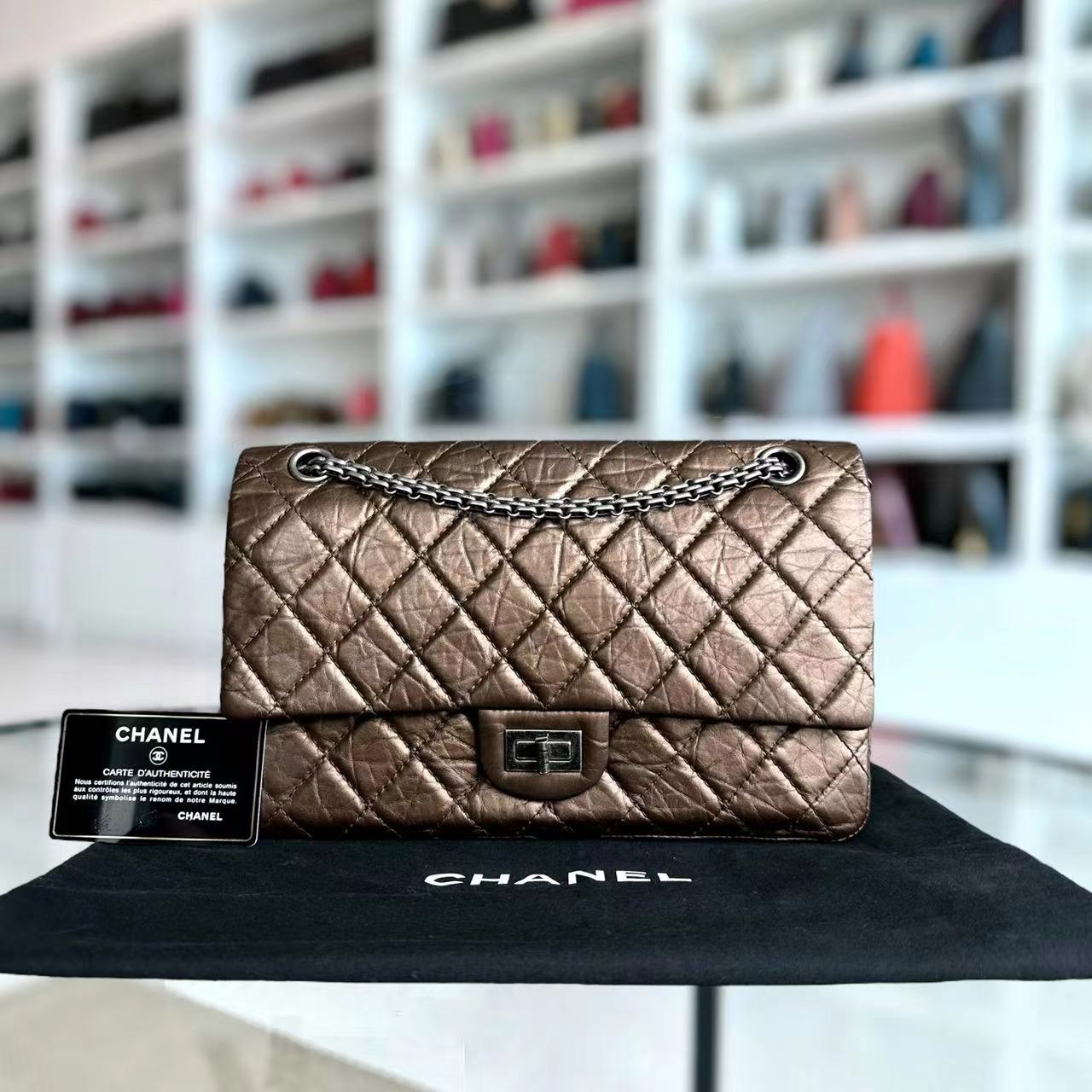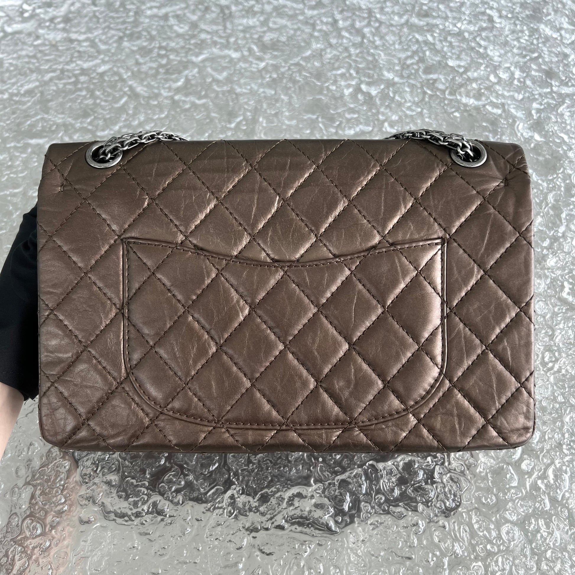 Chanel 2.55 226 Medium 28CM Quilted Calfskin Metallic Brown Bronze Silver Hardware Series 12