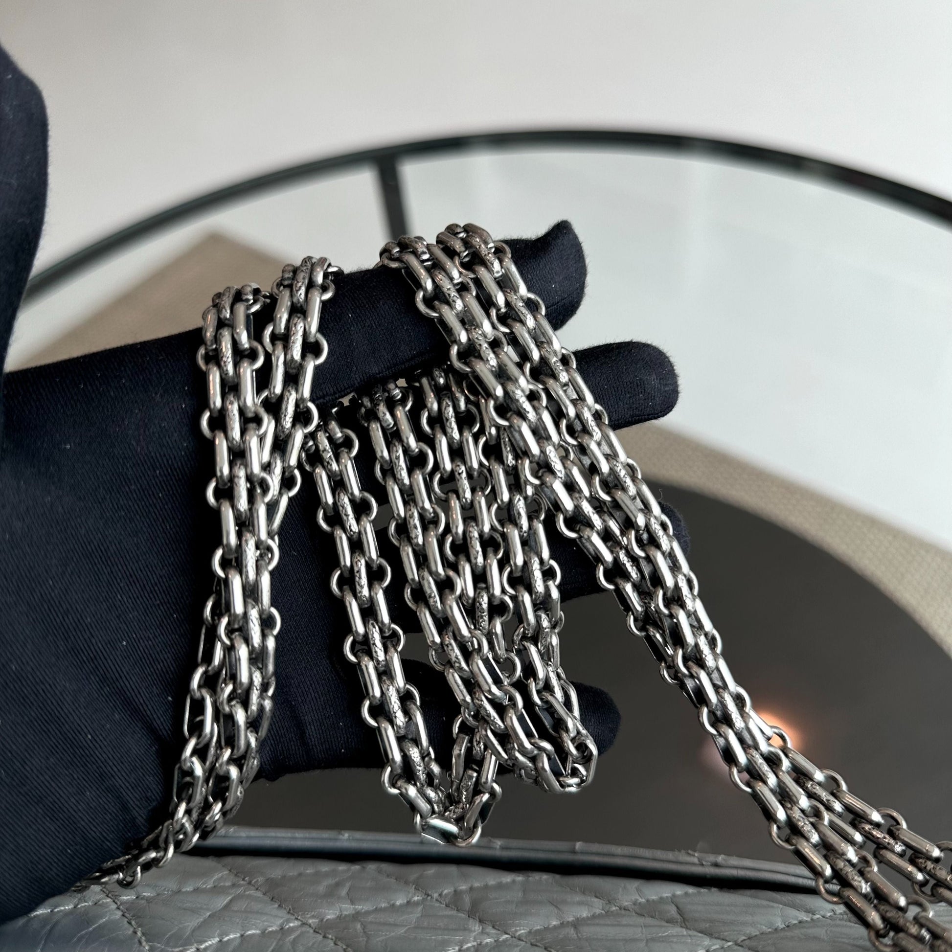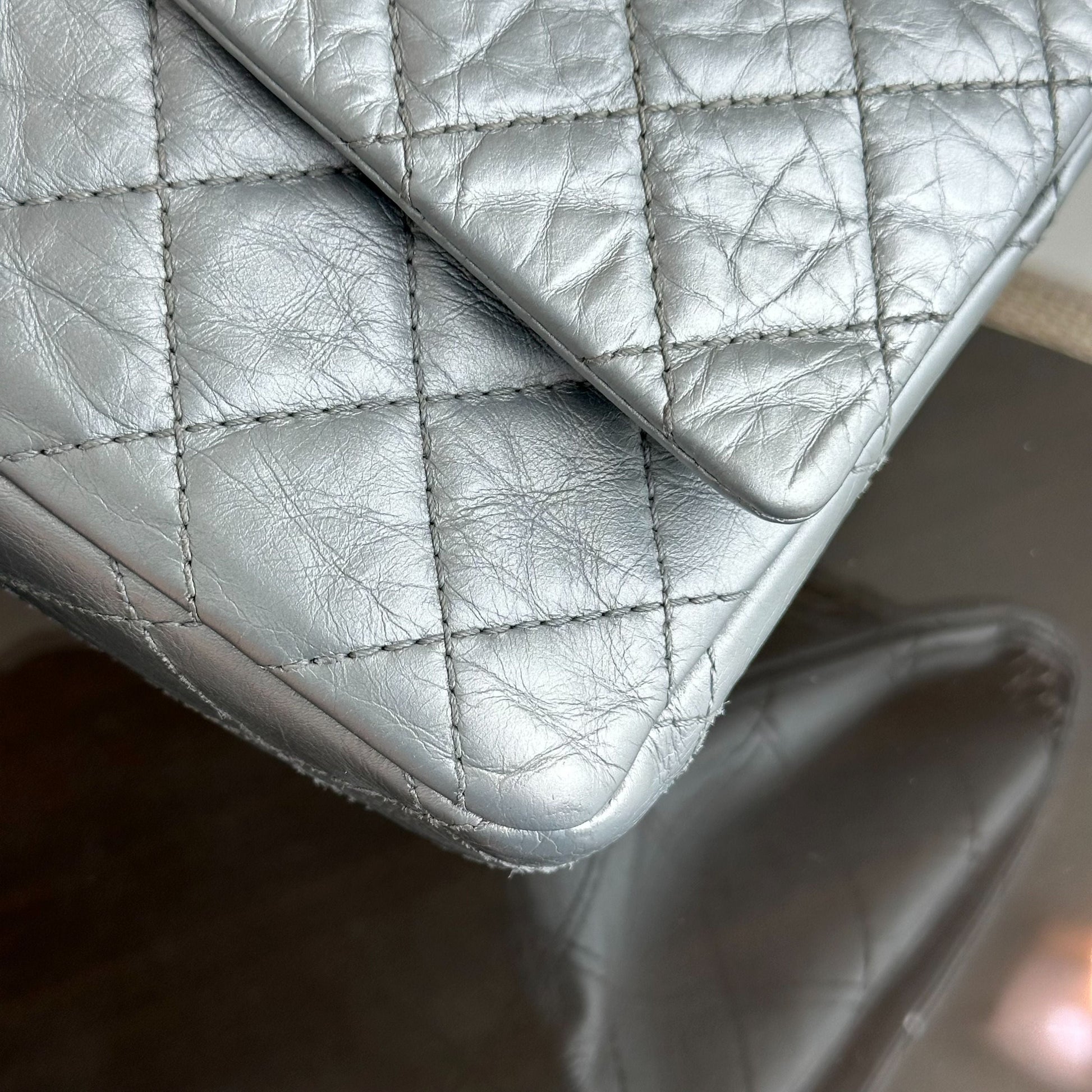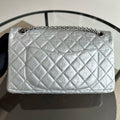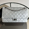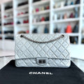 2.55 266 Medium 28CM Reissue Double Flap Quilted Aged Calfskin Silver RSHW No 15