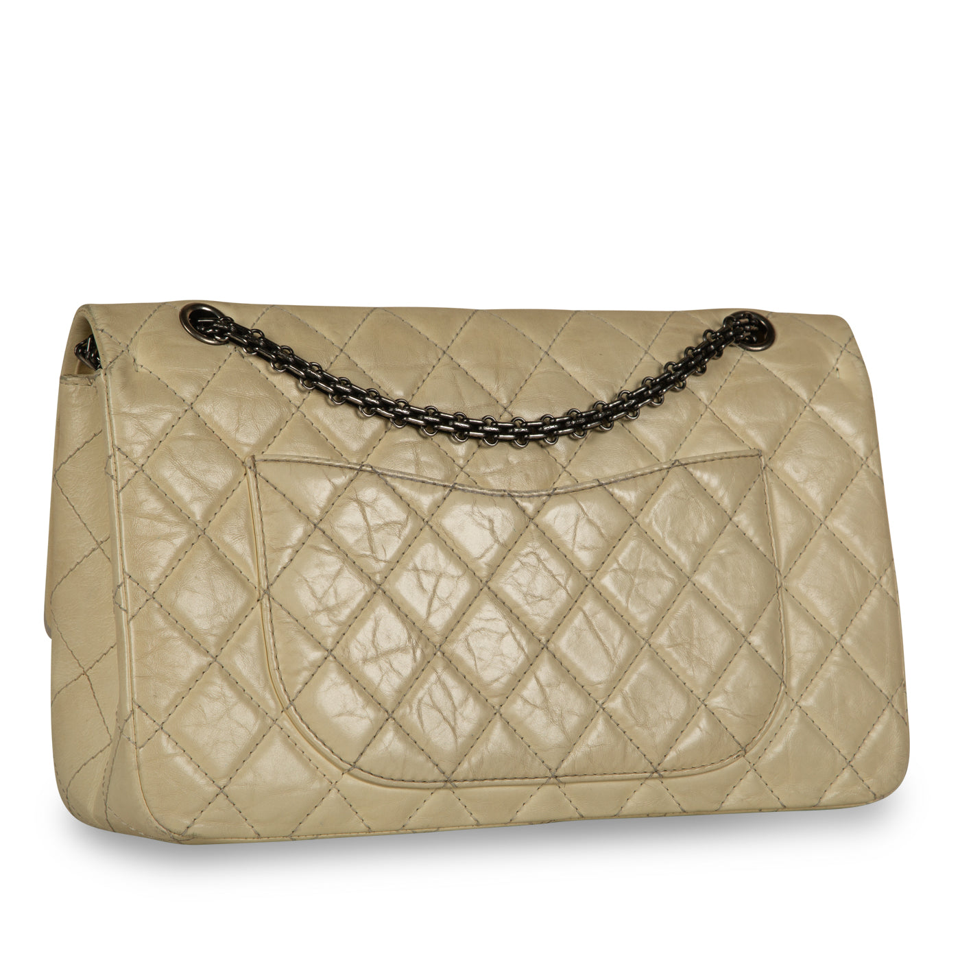For timeless Parisian-chic there is no better investment than a Chanel classic flap bag, and this 2.55 re-issue is classic and stunning. This stylish shoulder bag is beautifully crafted in diamond quilted cream aged calfskin leather with a brushed ruthenium hardware tone. Under the creative direction of Karl Lagerfeld, Chanel have continued to create these flawlessly crafted handbags which last a lifetime.