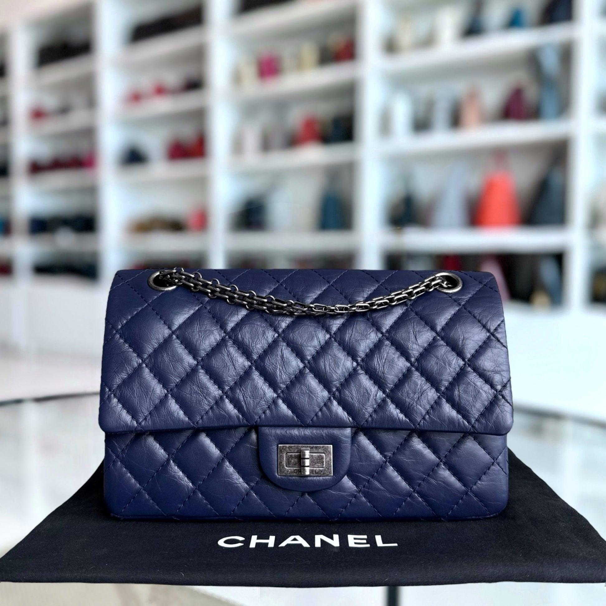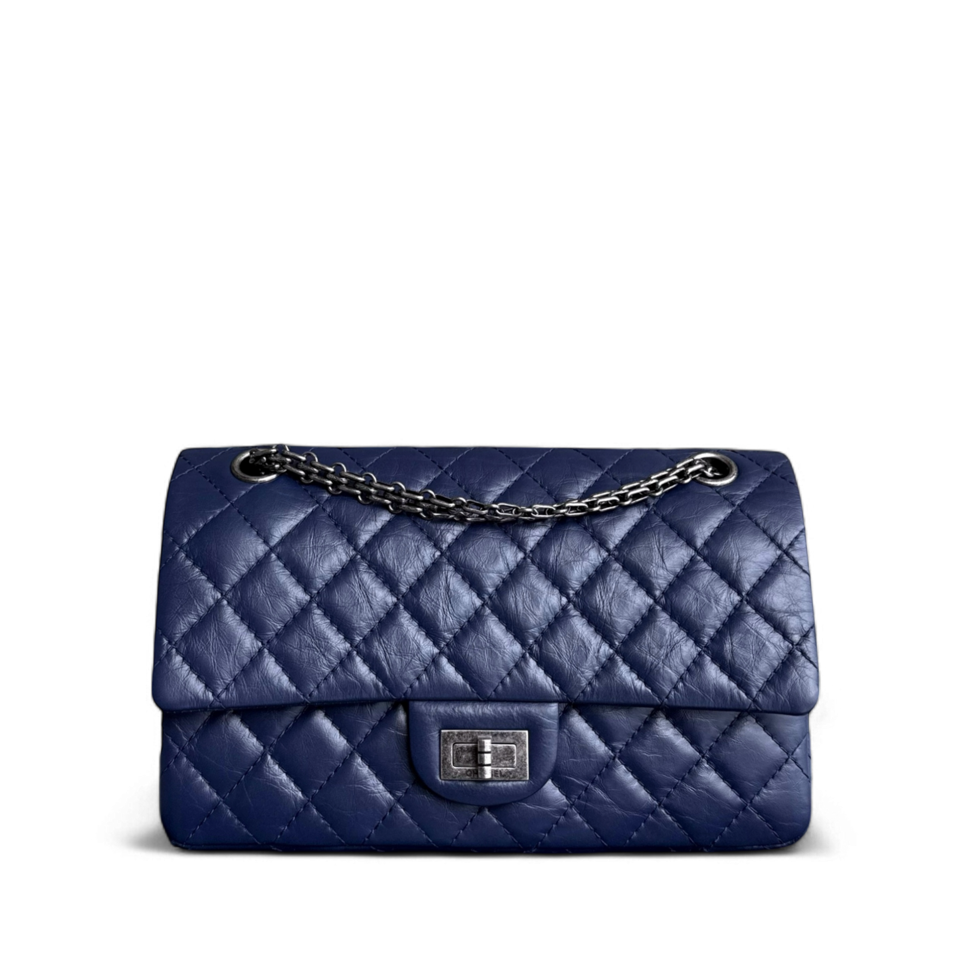 Chanel 2.55 Reissue 225 Small - 24CM Quilted Aged Calfskin Dark Blue Ruthenium Silver Hardware Series 21