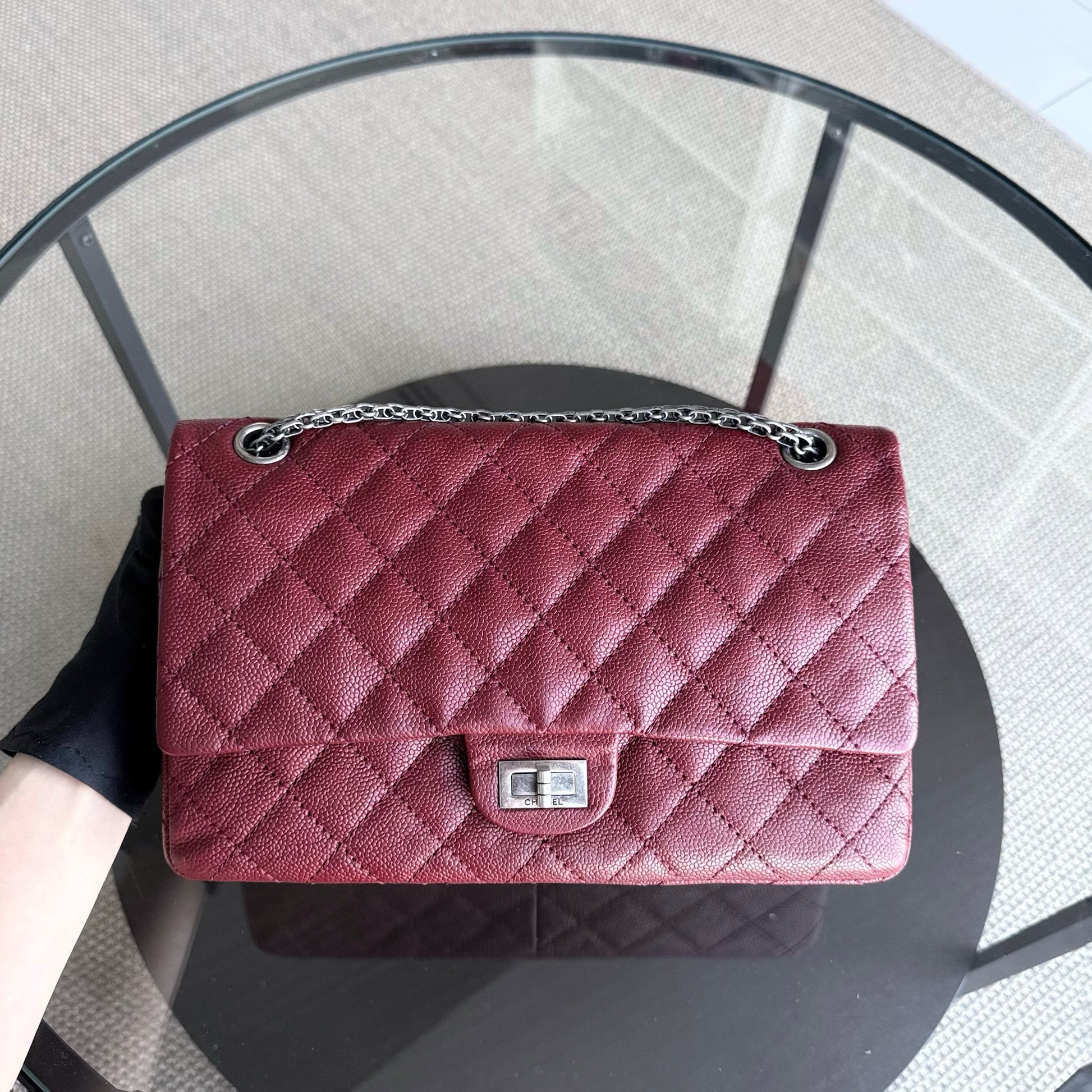Chanel 2.55 Reissue 226 - Caviar Quilted Grained Calfskin Burgundy Dark Red Ruthenium Silver Hardware Series 14