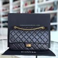 Chanel 2.55 Reissue 226 in exquisite black calfskin, a timeless piece with iconic gold hardware.
