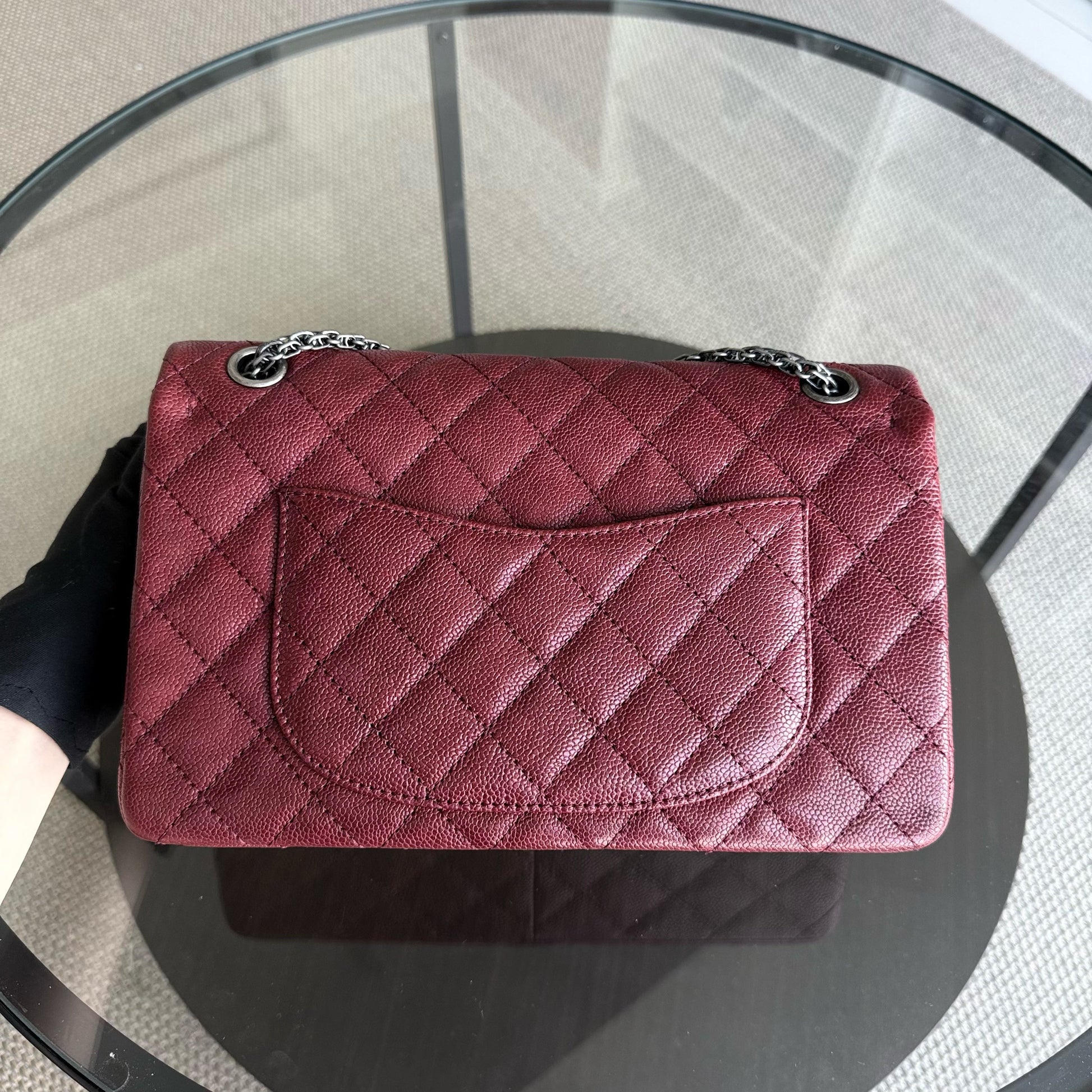 Chanel 2.55 Reissue 226 Medium - Caviar 28CM Quilted Dark Red Burgundy Ruthenium Silver Hardware Series 14
