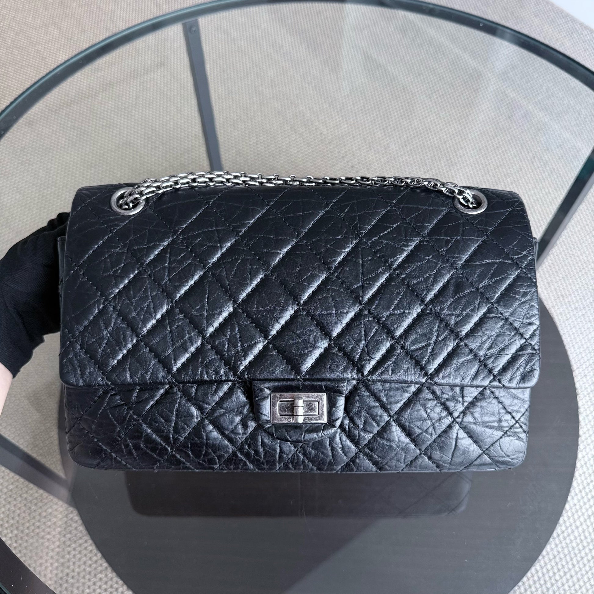 Chanel 2.55 Reissue 226 - Quilted Aged Calfskin 28CM Black Ruthenium Silver Hardware Series 13