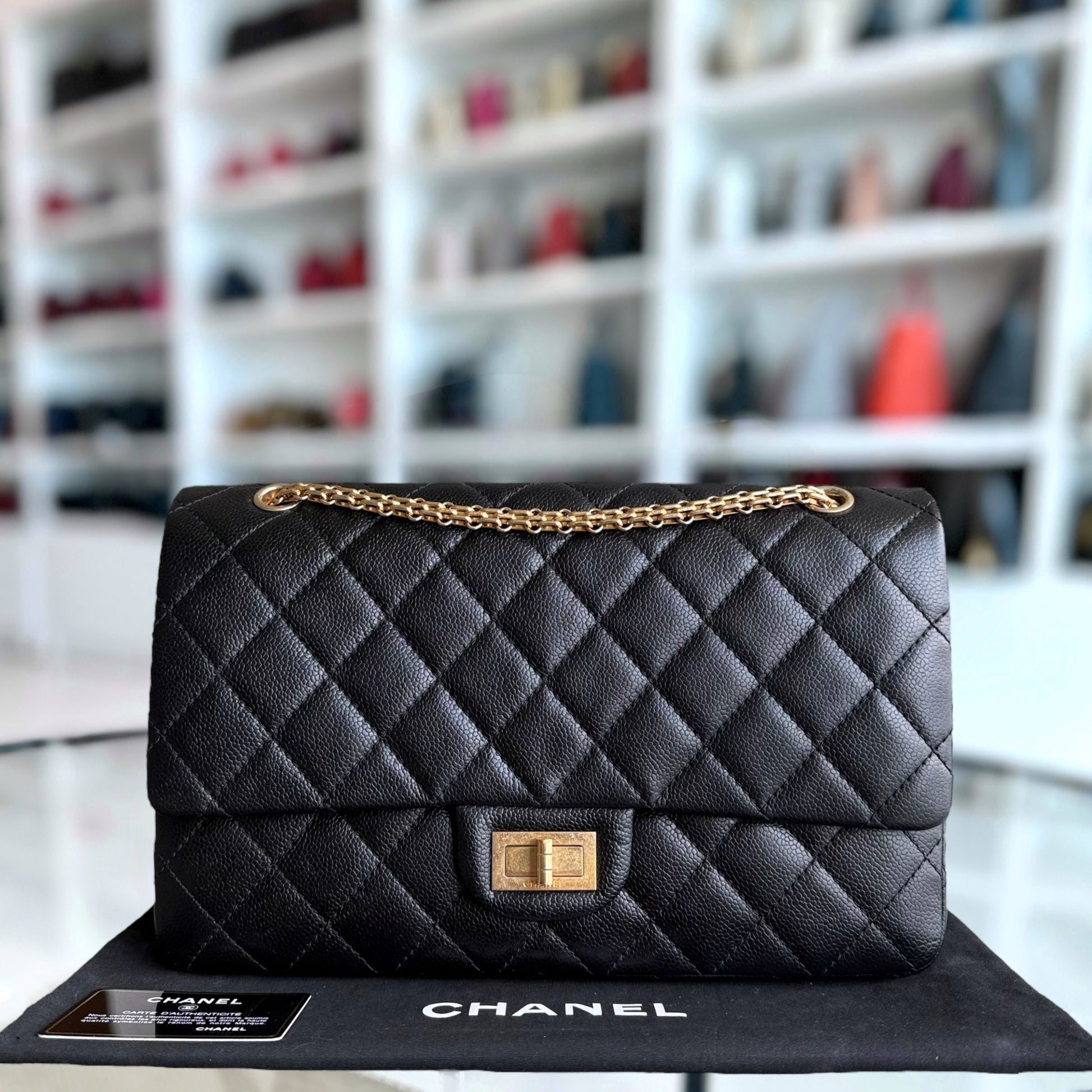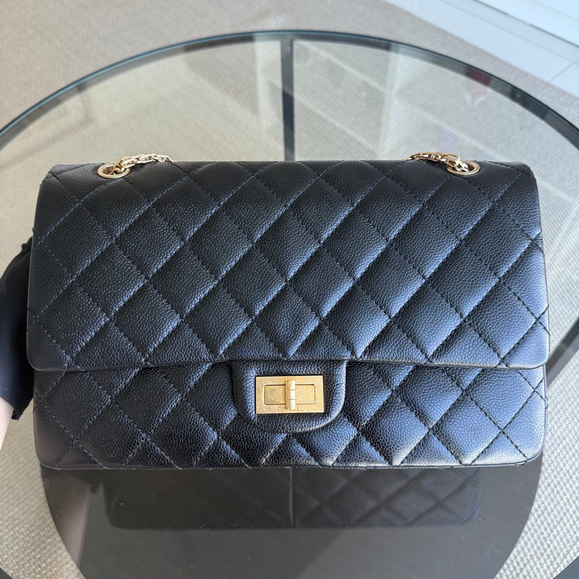 Chanel 2.55 Reissue 227 - Caviar Quilted Black Aged Gold Hardware Series 18
