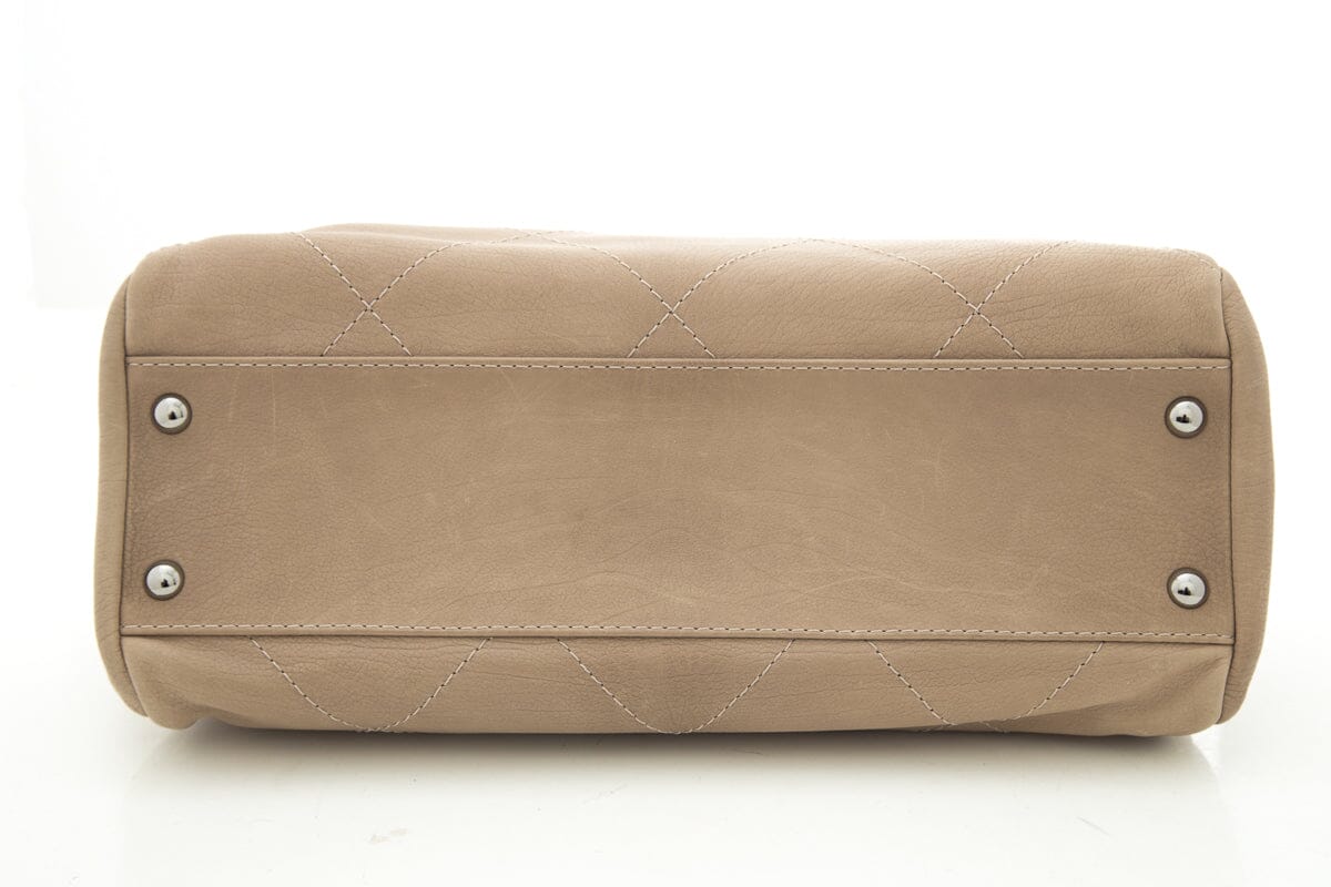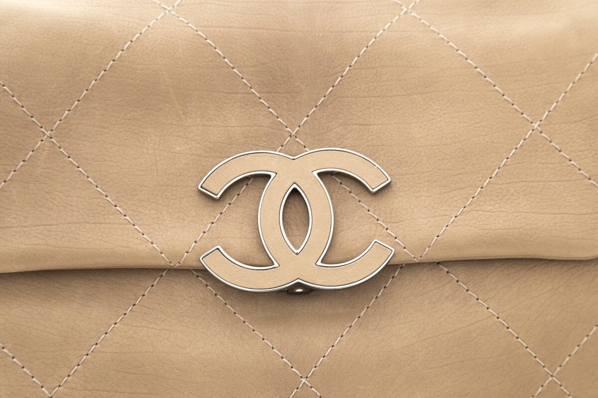 Chanel 2011 Beige Hamptons CC Flap Handbag. This item is in good condition; slight discoloring on leather.
