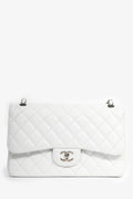 Pre-Loved Chanel™ 2011 White Caviar Leather Jumbo Double Flap Shoulder Bag