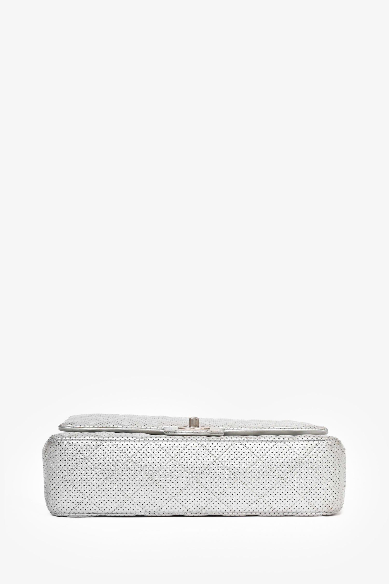 Pre-Loved Chanel™ 2014 Silver Perforated Leather Medium Double Flap Shoulder Bag