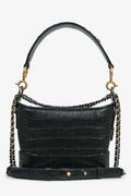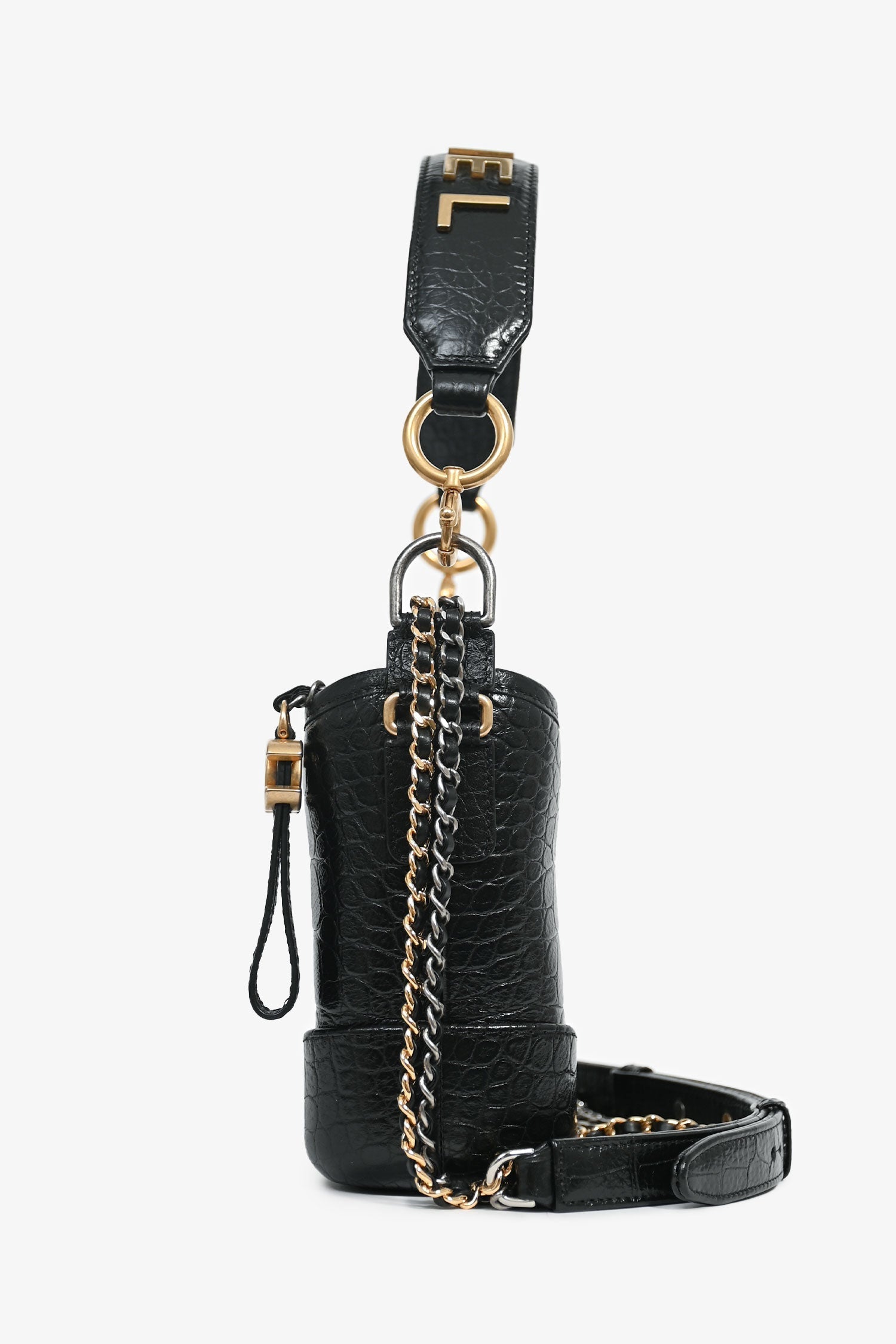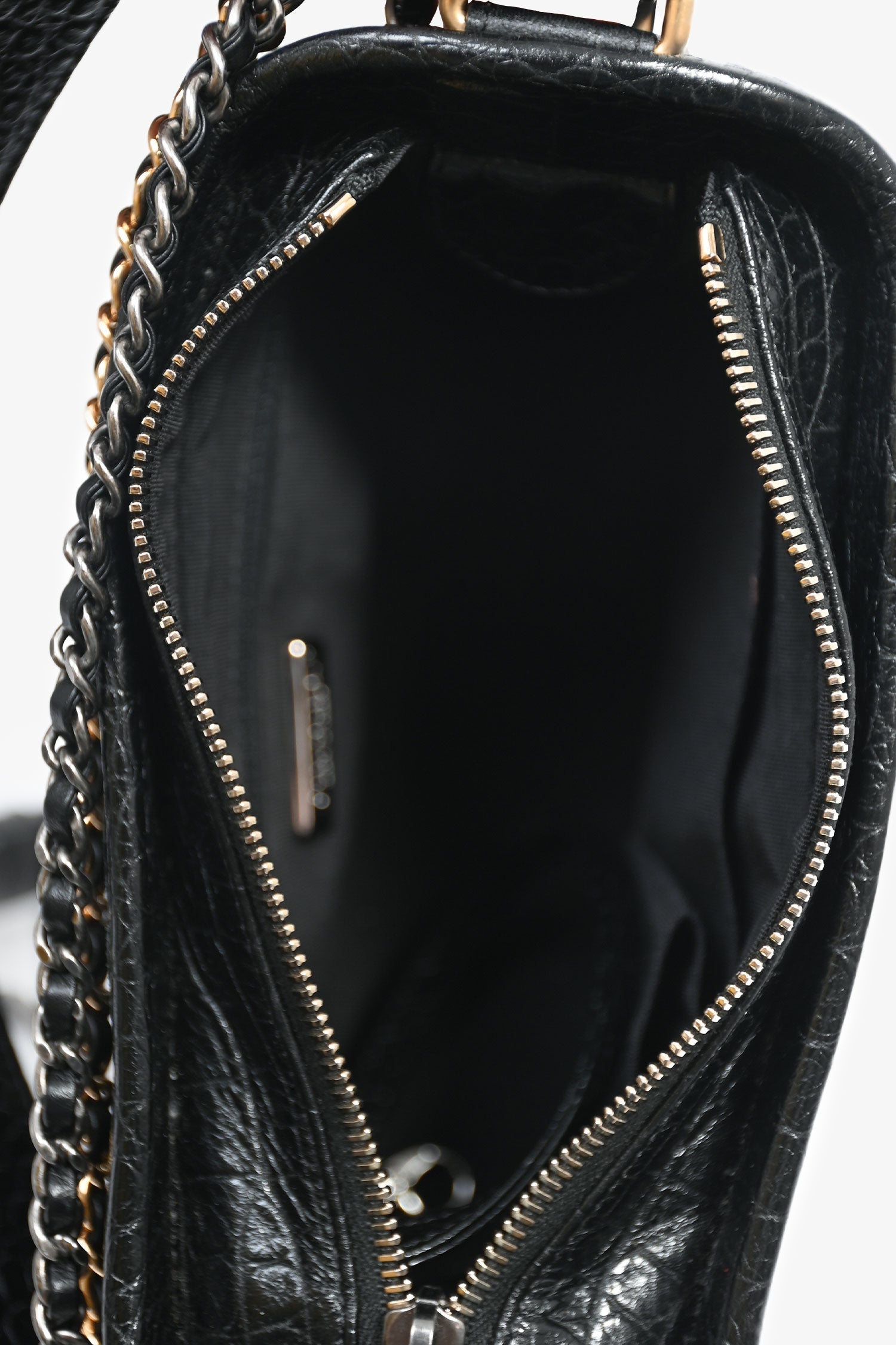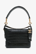 Pre-Loved Chanel™ 2019-20 Black Croc Embossed Leather Medium Gabrielle Crossbody Bag with Logo Strap