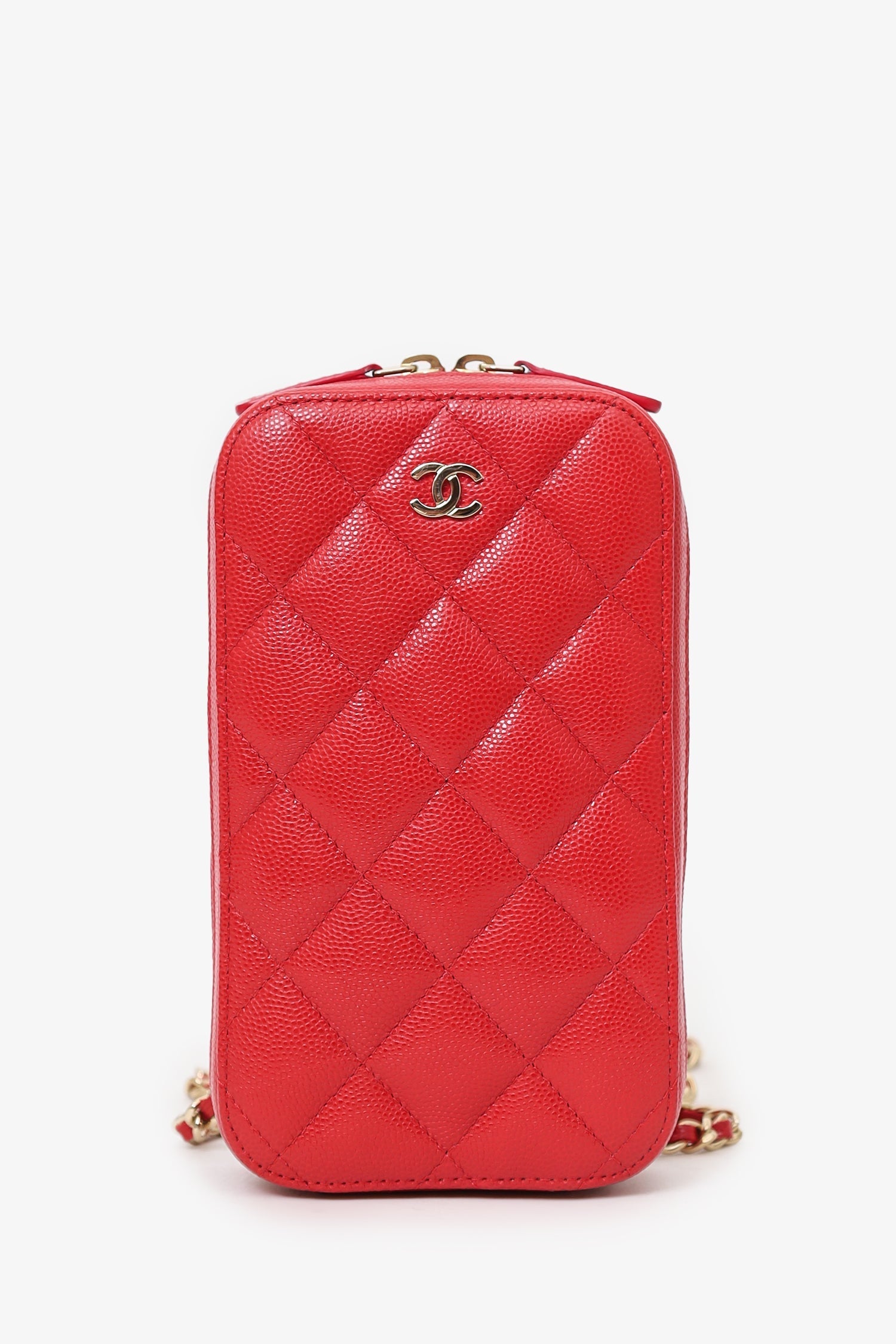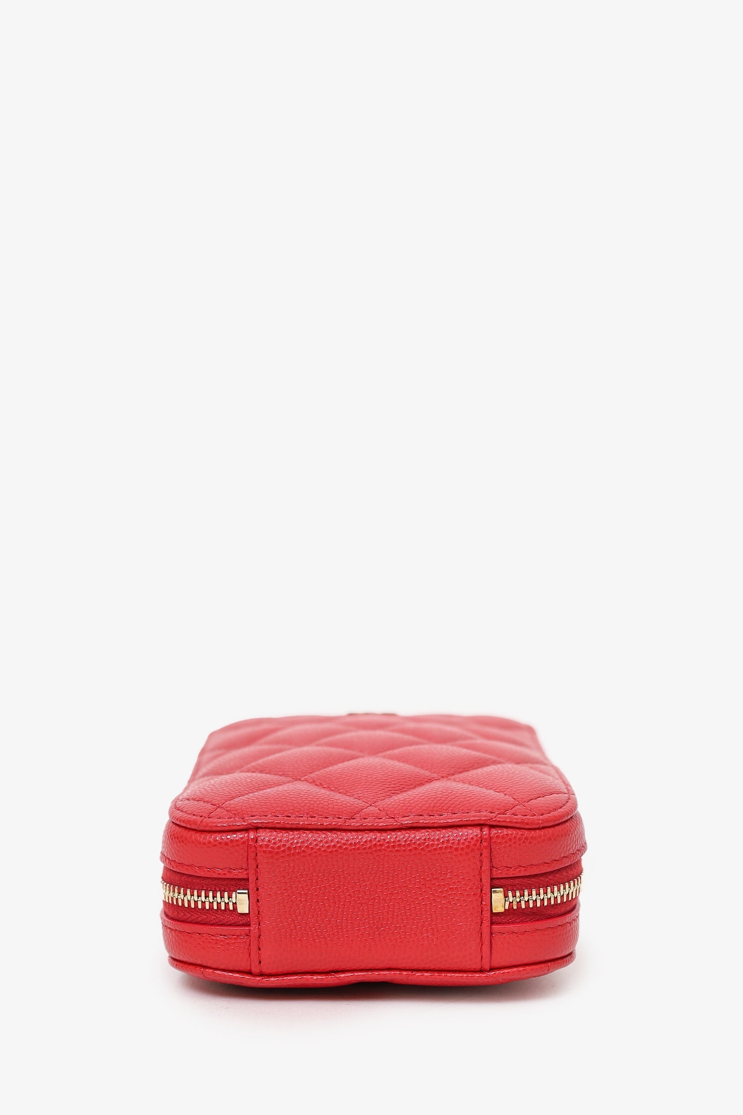 Pre-Loved Chanel™ 2019 Red Caviar Vertical ZIP Around Phone Chain Bag