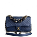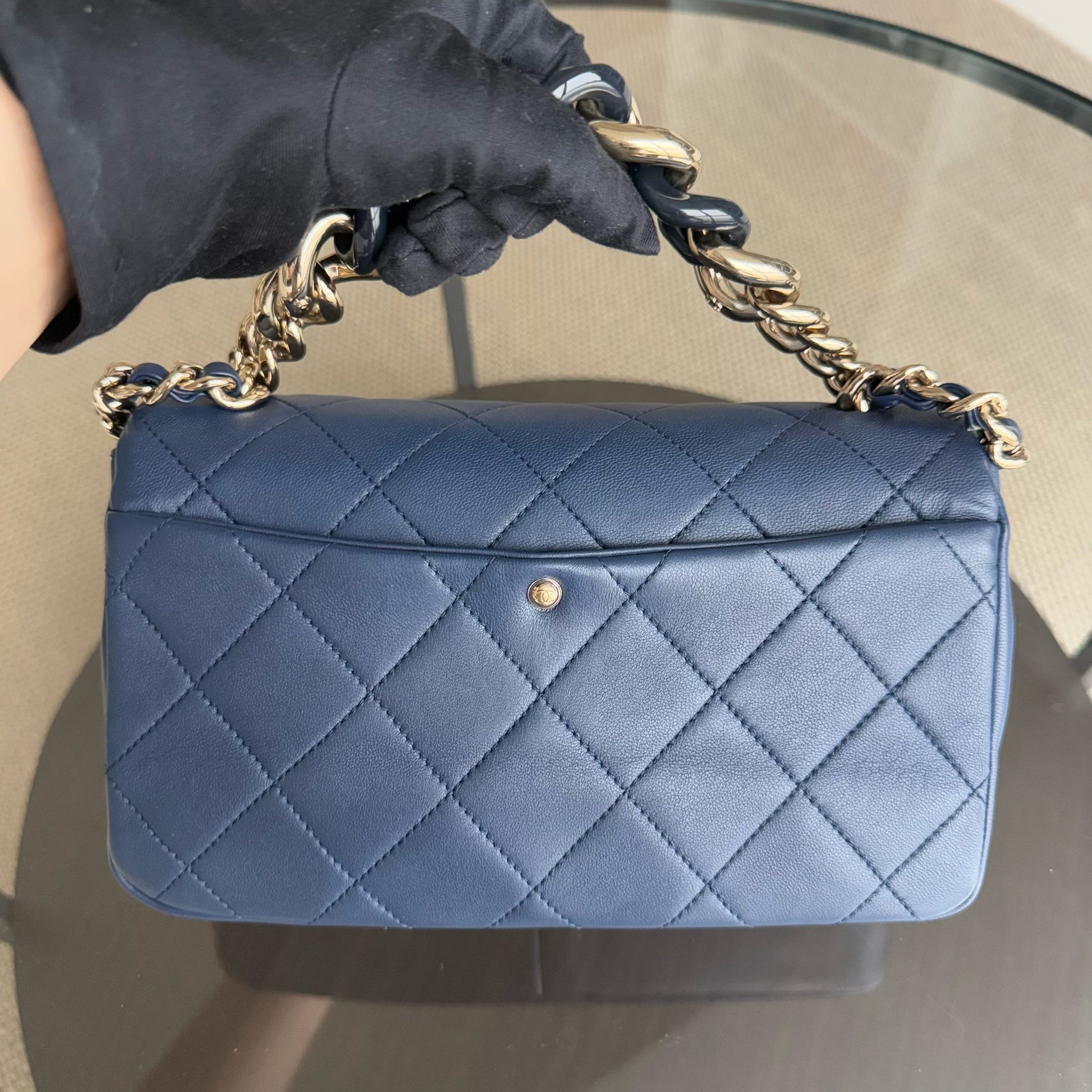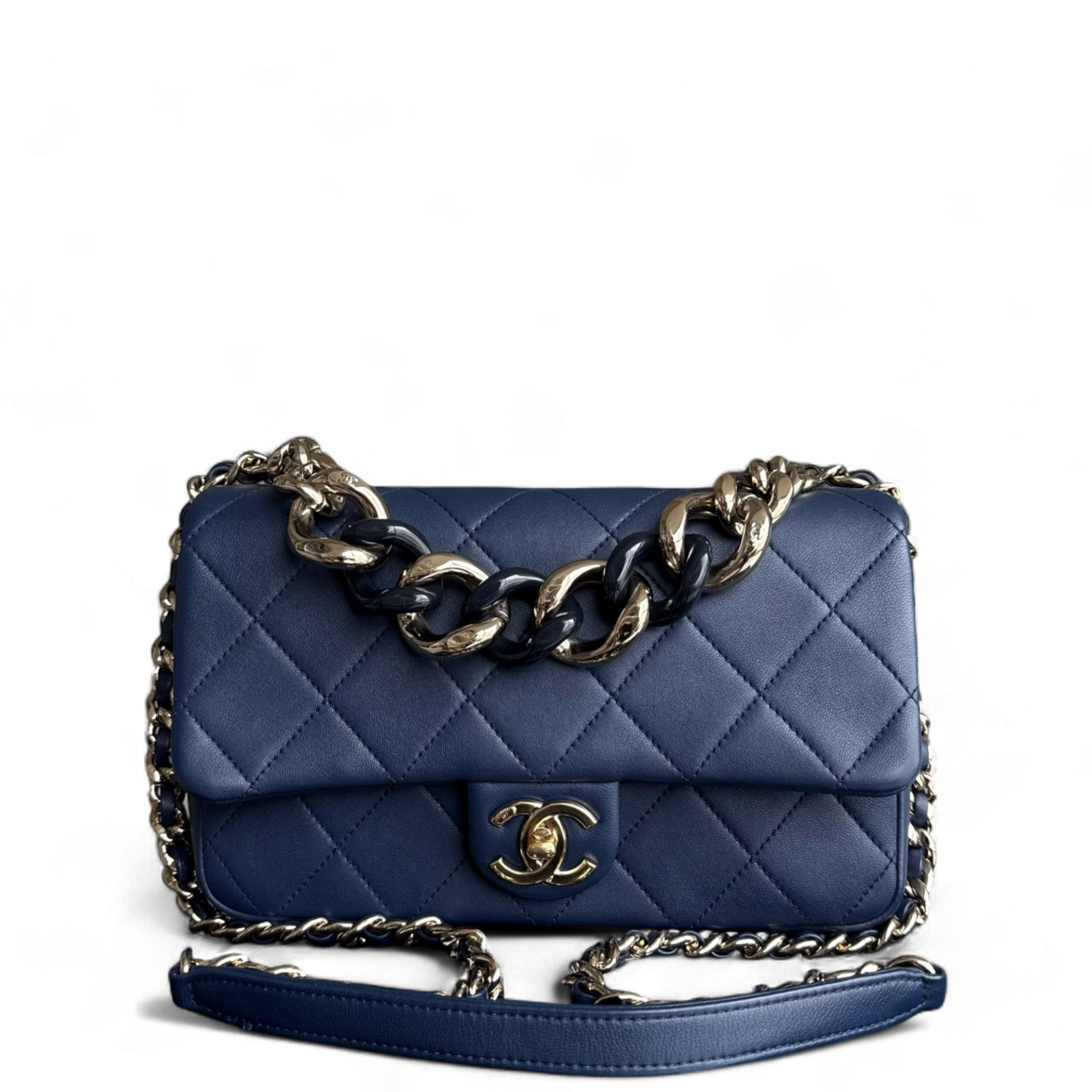 Chanel 2020 Elegant Resin Chain Seasonal Flap - Quilted Lambskin Dark Blue GHW No 29
