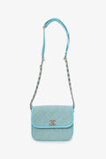 Pre-Loved Chanel™ 2021 Blue Denim Quilted CC Small Messenger Flap Bag