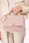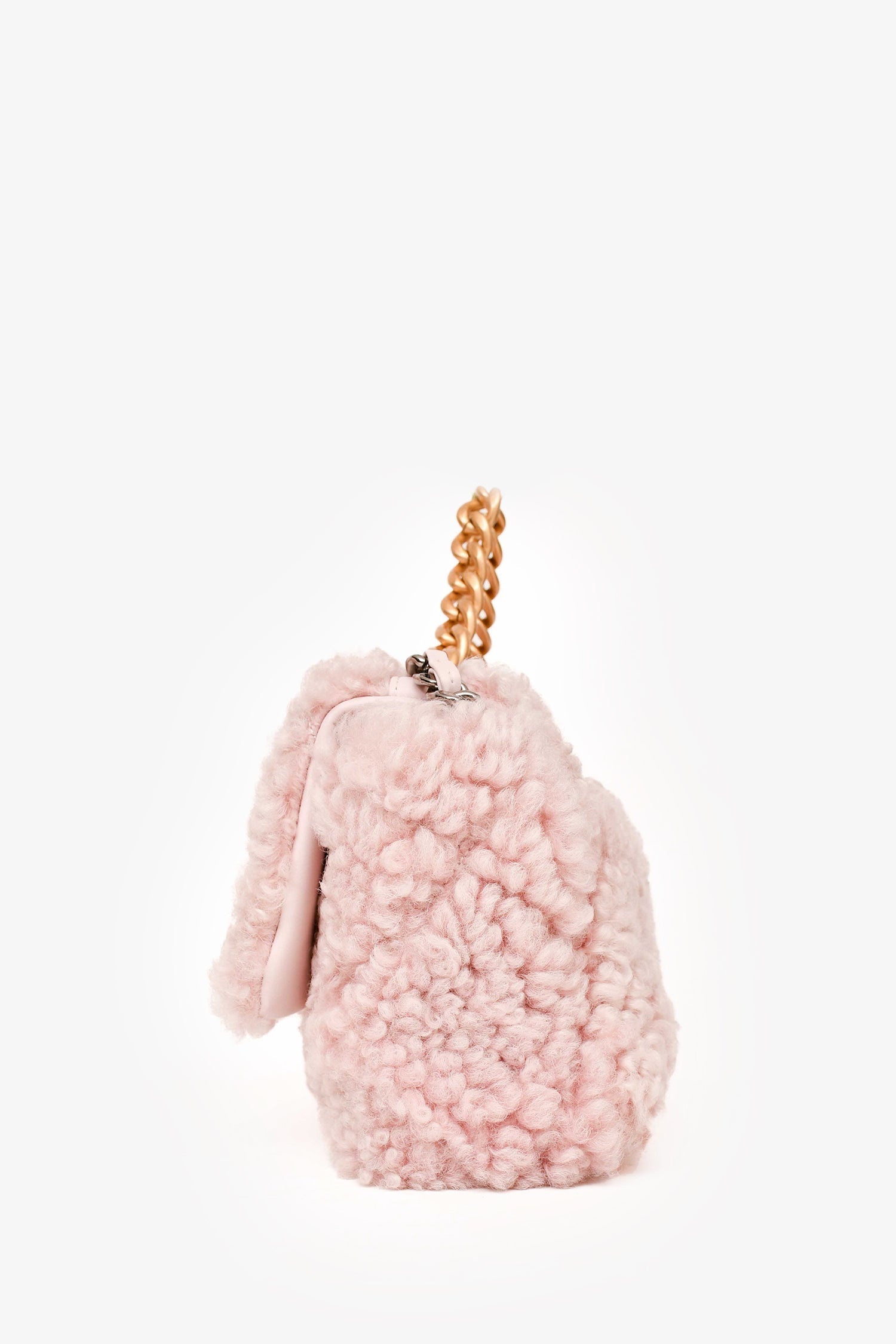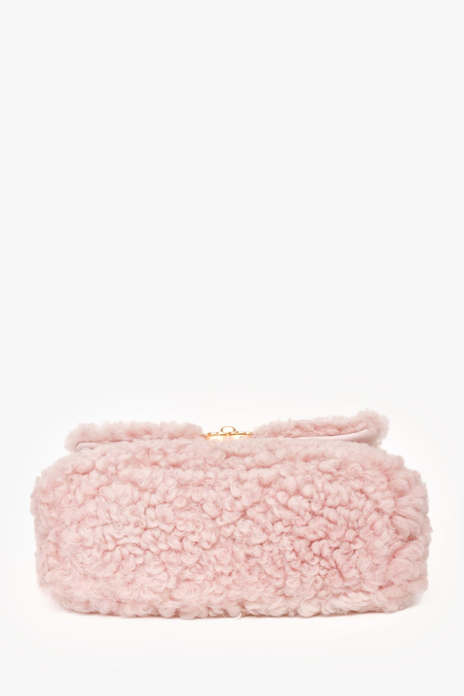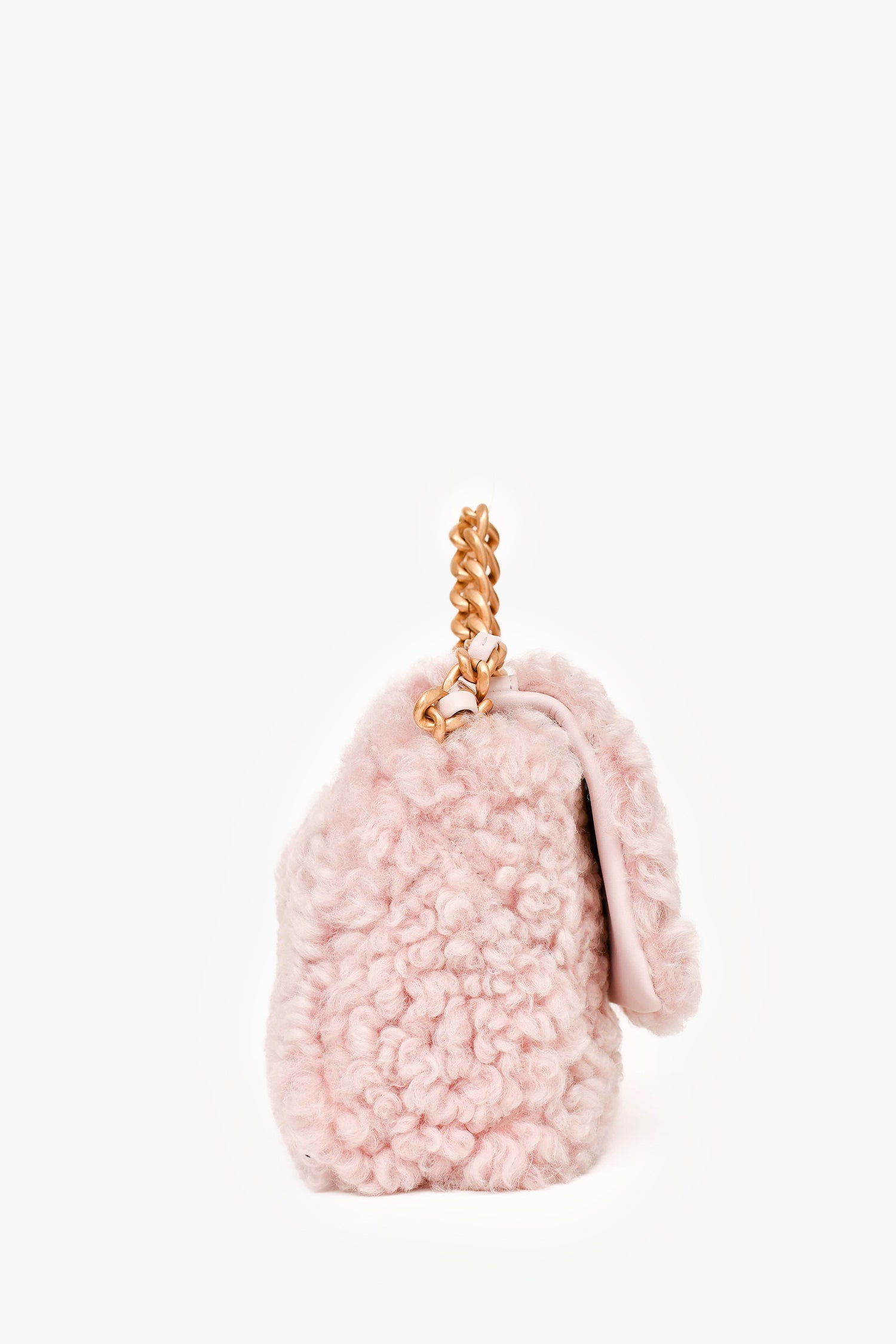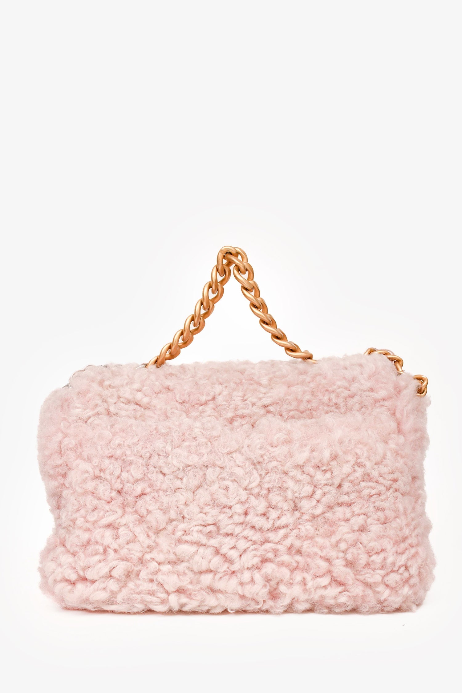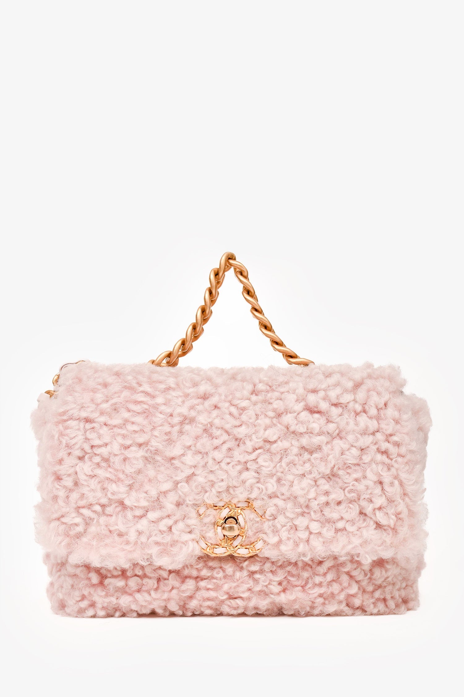 Pre-Loved Chanel™ 2021 Pink Shearling 'Chanel 19' Medium Flap Shoulder Bag