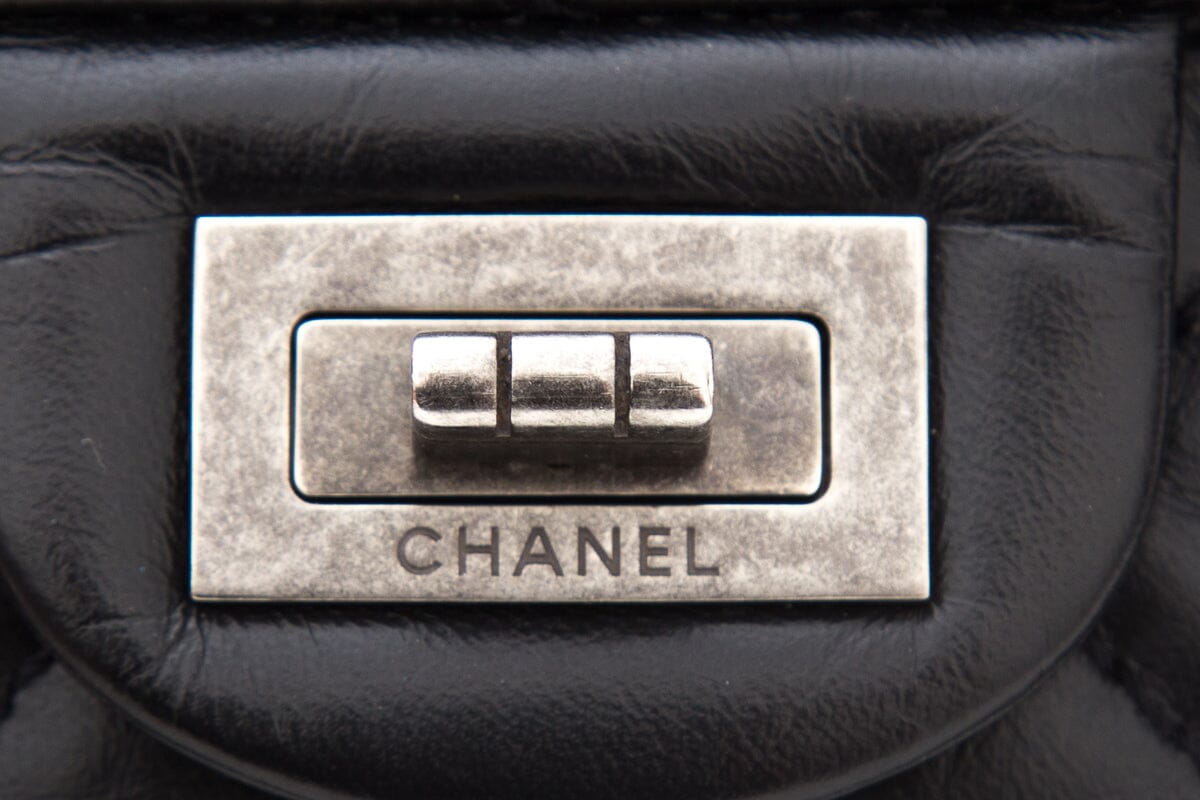 Chanel 2022 2.55 Reissue Jumbo Flapbag with Aged Black Calfskin. This item is in good condition; some staning on interior.