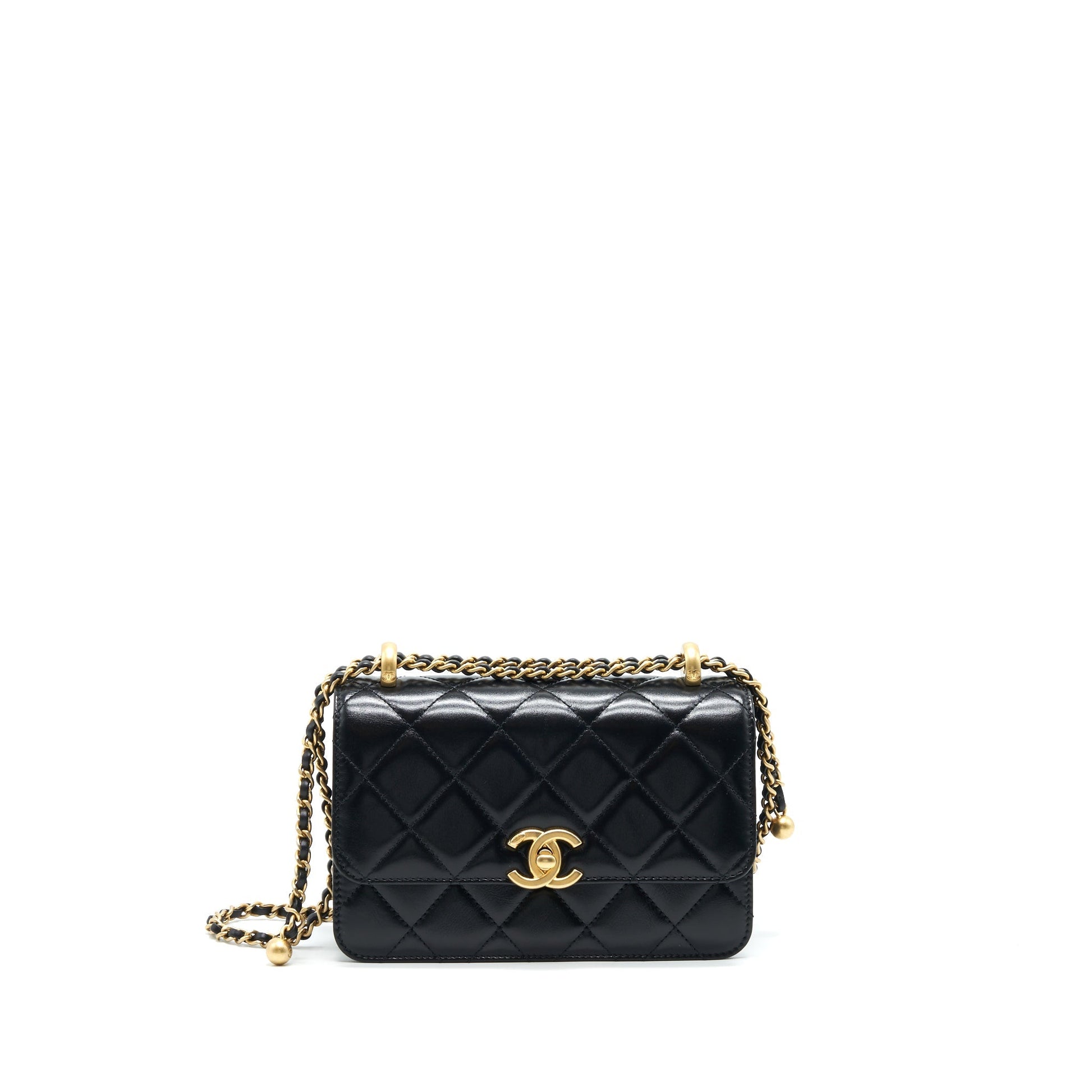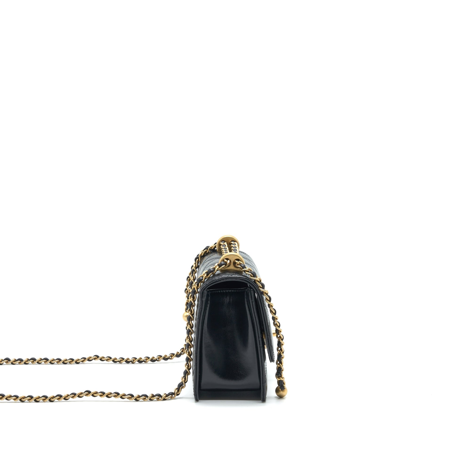 Chanel 21A Gold Crush Mini Flap Bag Calfskin Black GHW