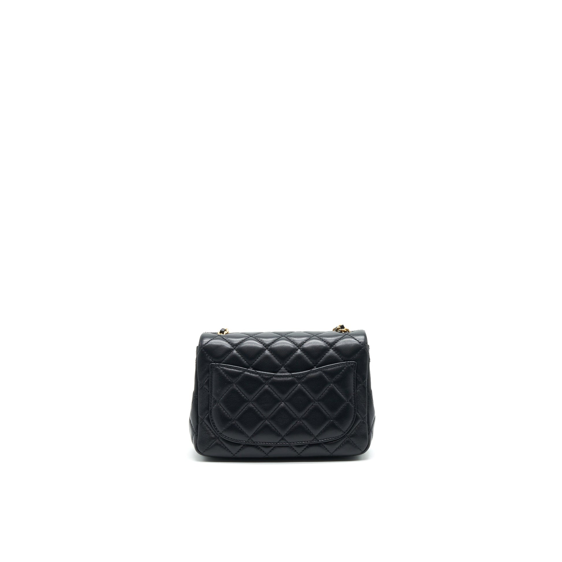 Chanel 21B pearl Crush Mini Square flap Bag Black GHW (microchip)