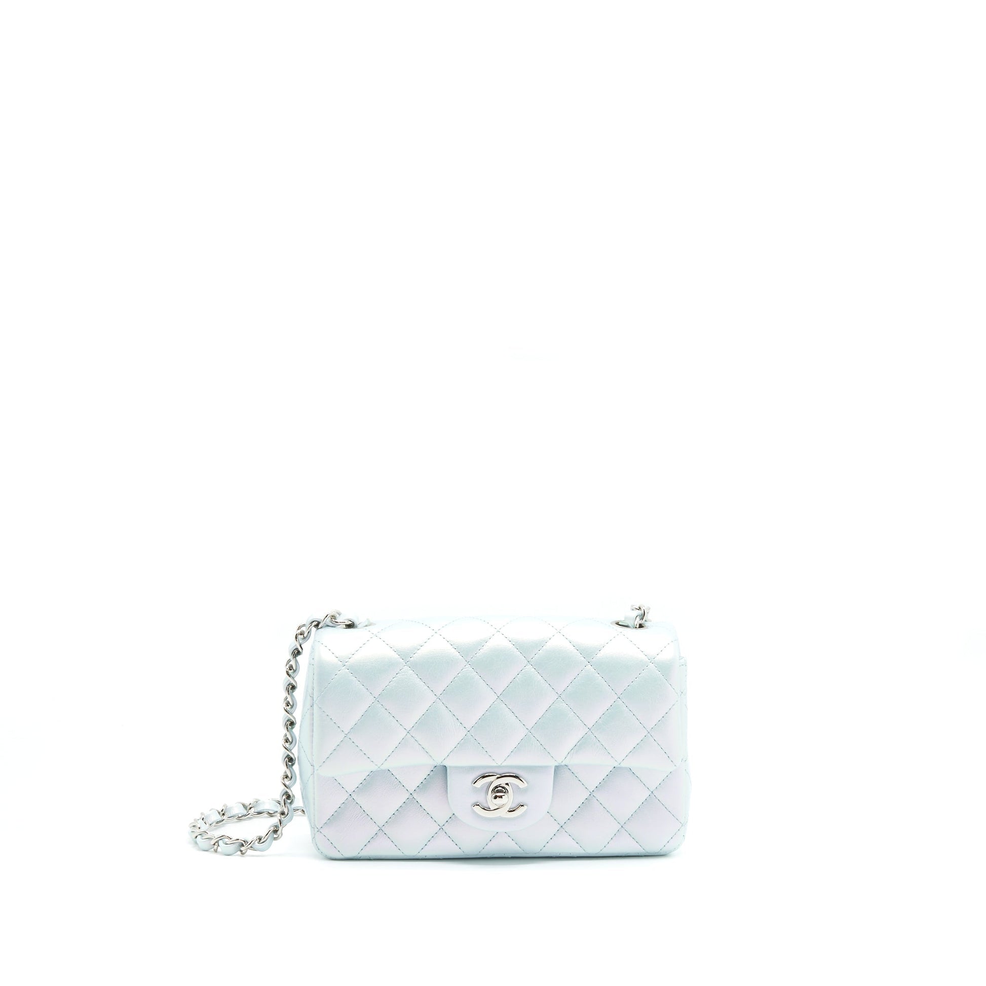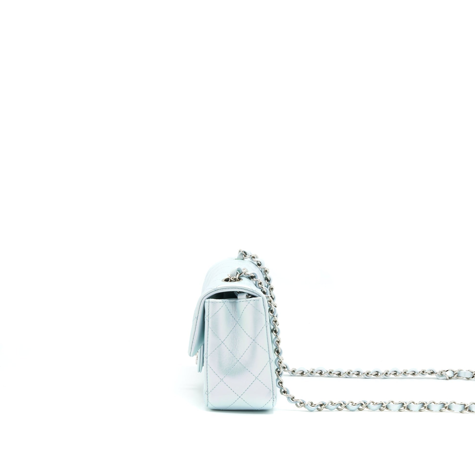 Chanel 21K Iridescent Baby Blue Mini Rectangular SHW