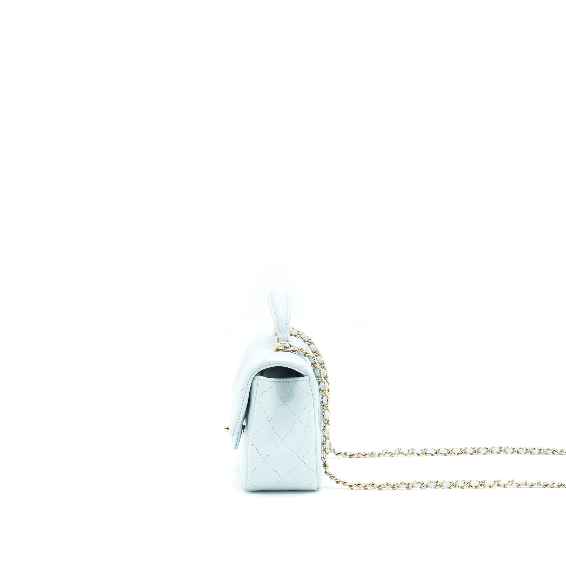 Chanel 21K Mini Top Handle Rectangular Flap Bag Pastel Blue LGHW