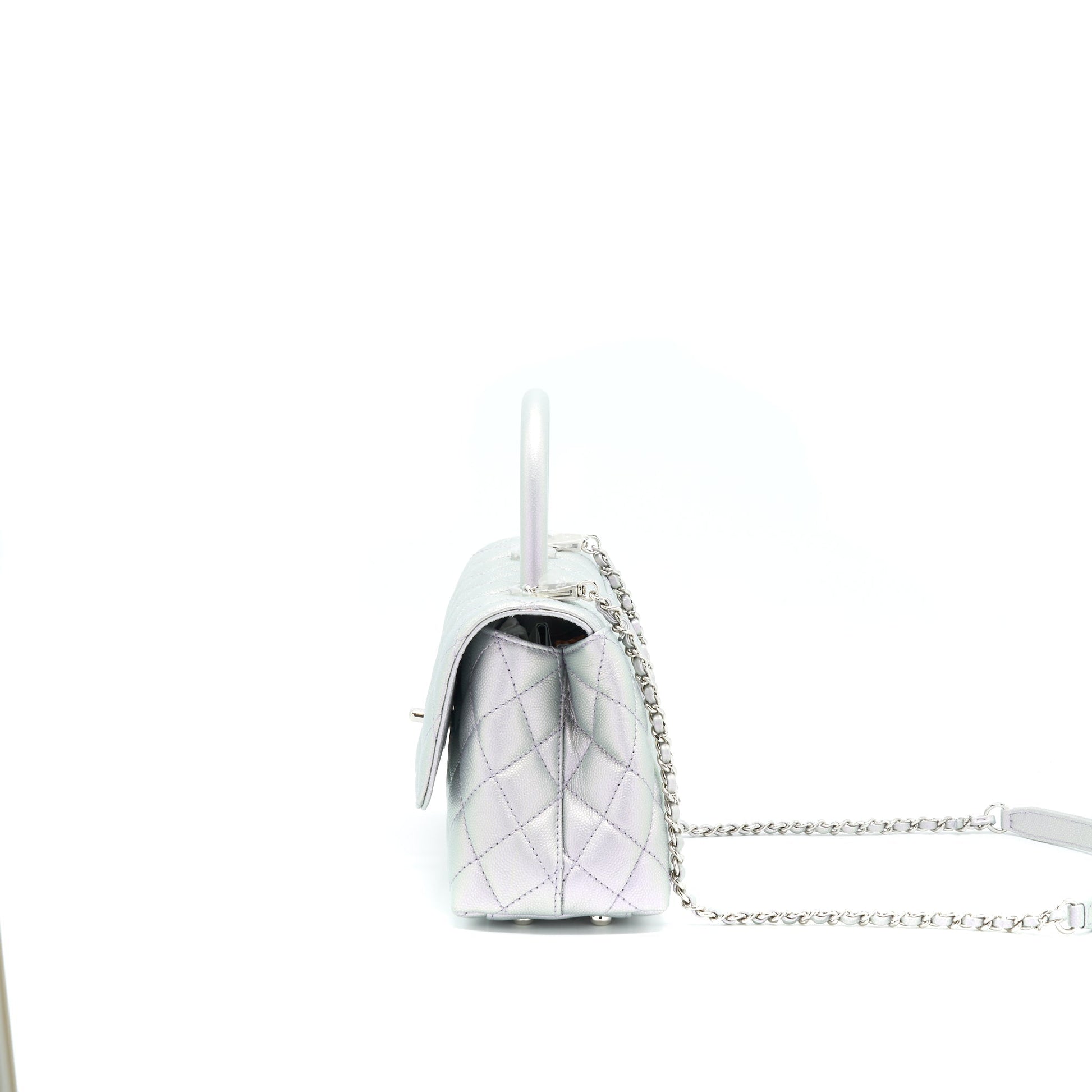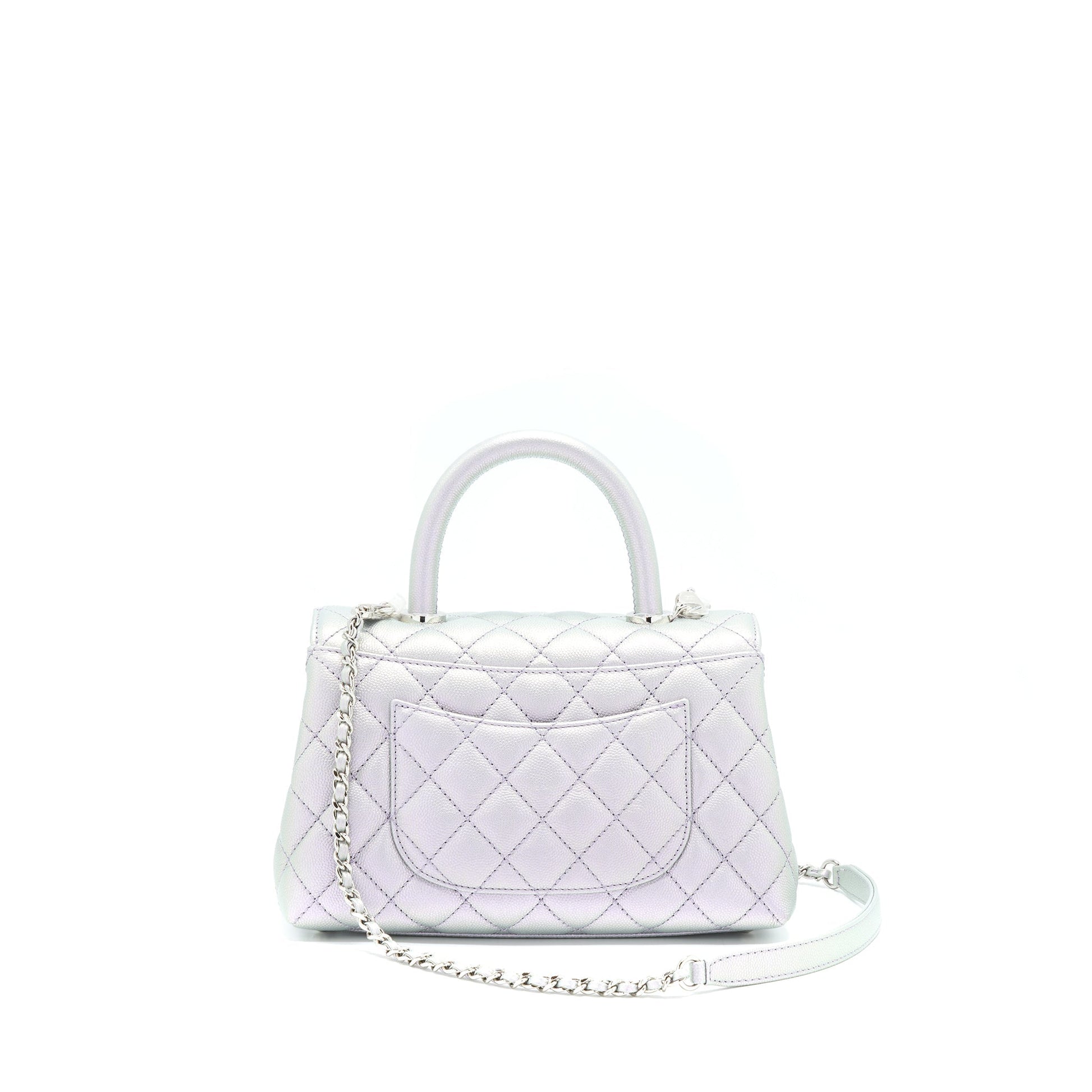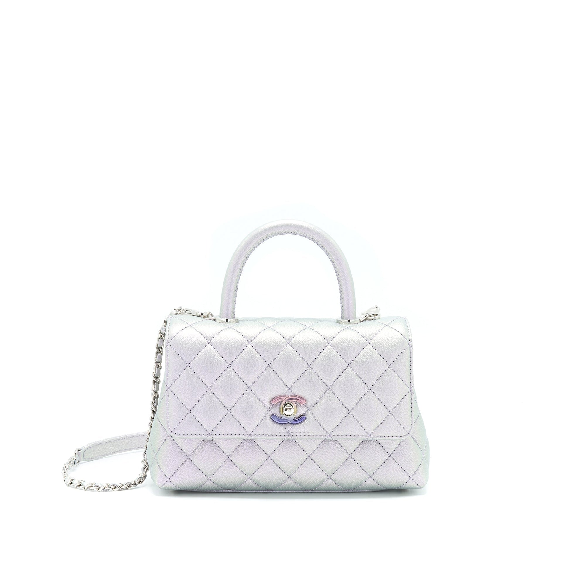Chanel 21K Small Coco Handle 24cm Caviar Iridescent Lilac Rainbow Hardware (Microchip)