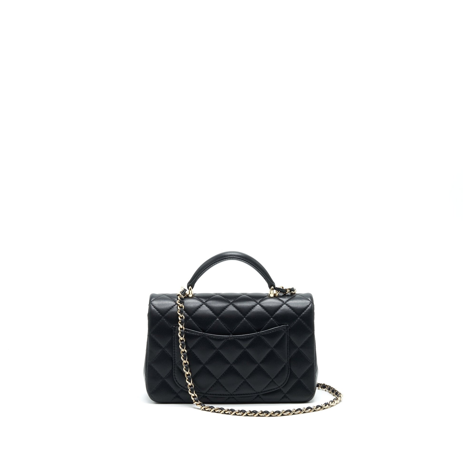 Chanel 21K Top Handle Mini Rectangular Flap Bag Black GHW