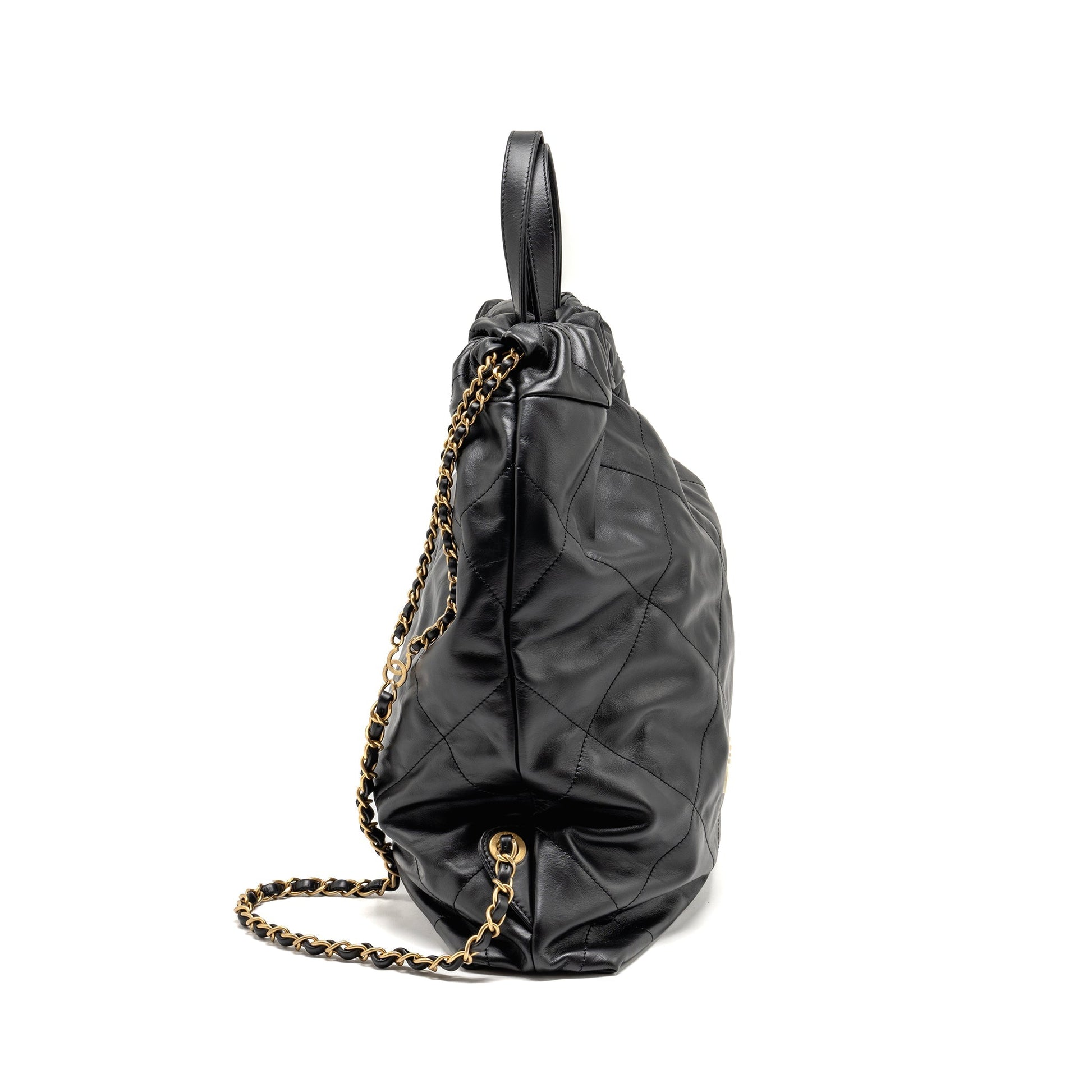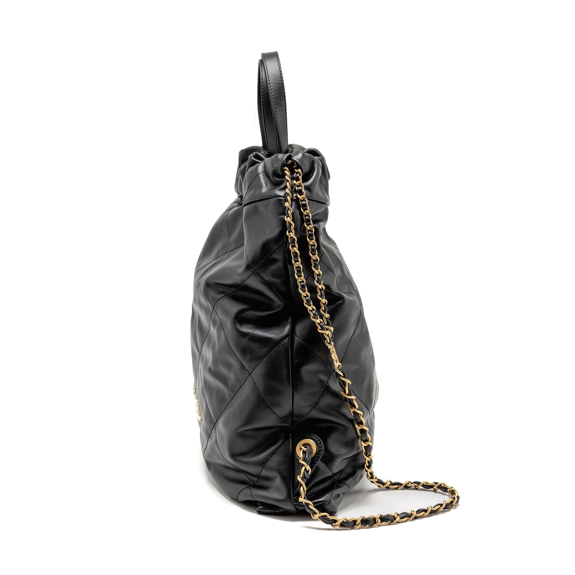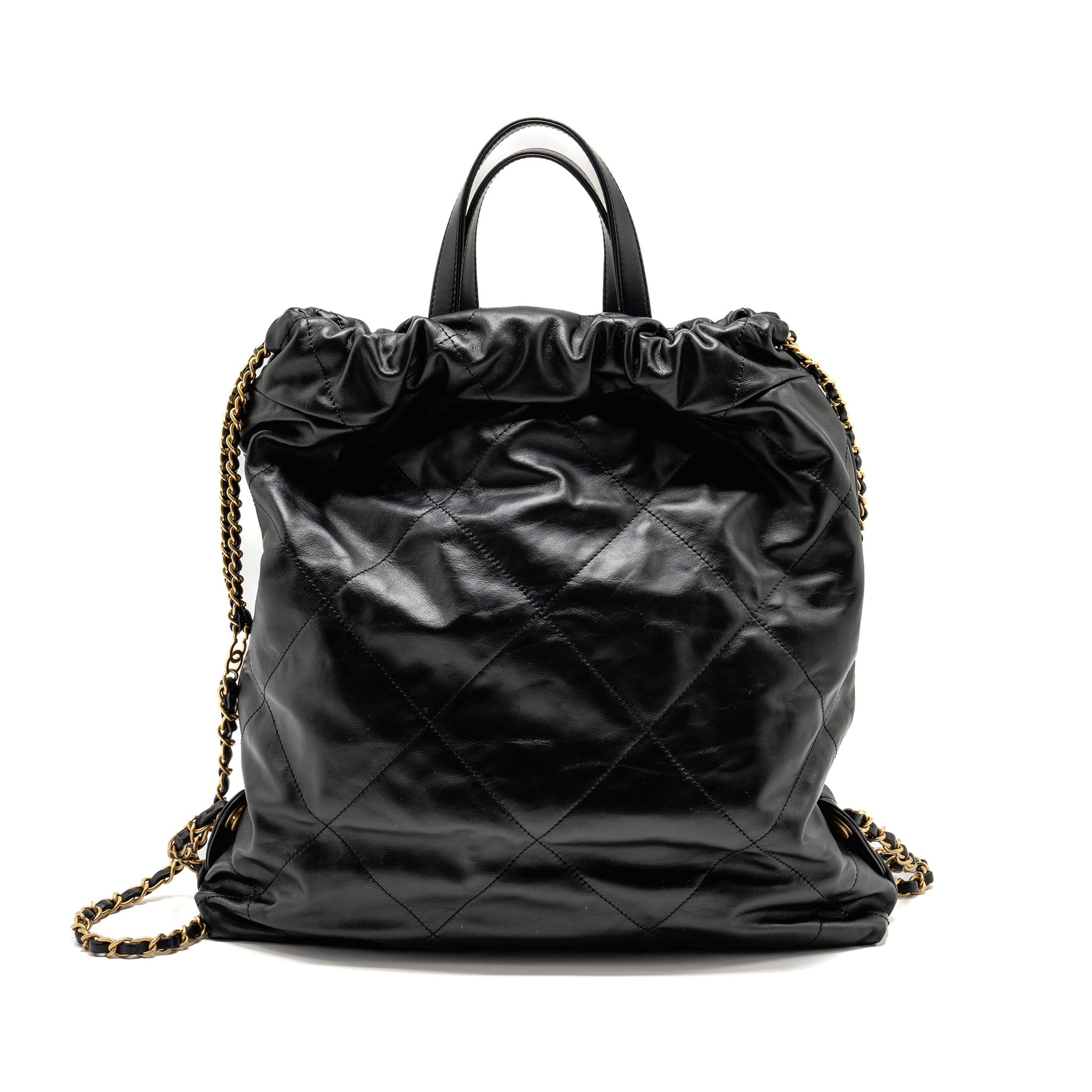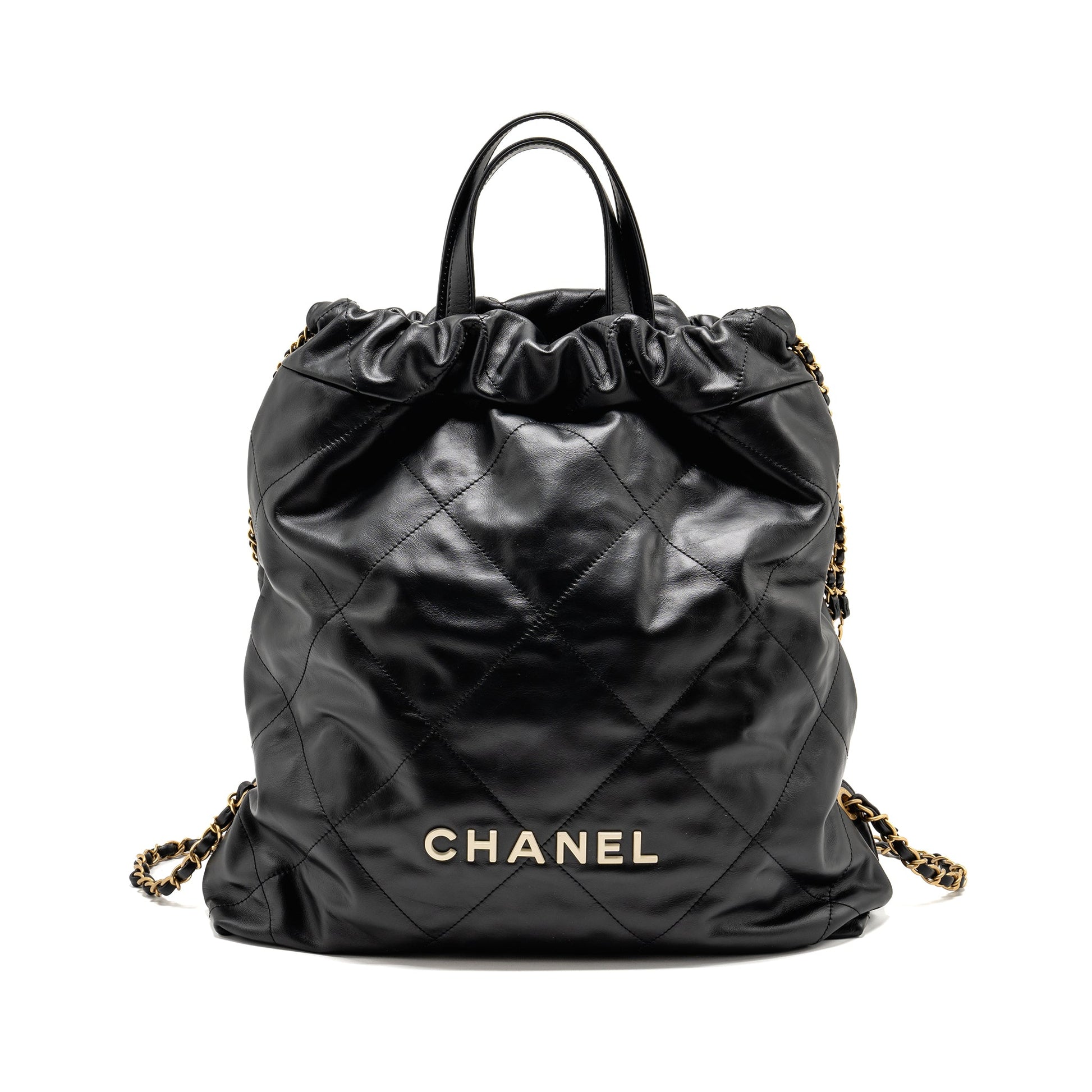 Chanel 22 Backpack White Letter Logo Shiny Calfskin Black GHW (Microchip)