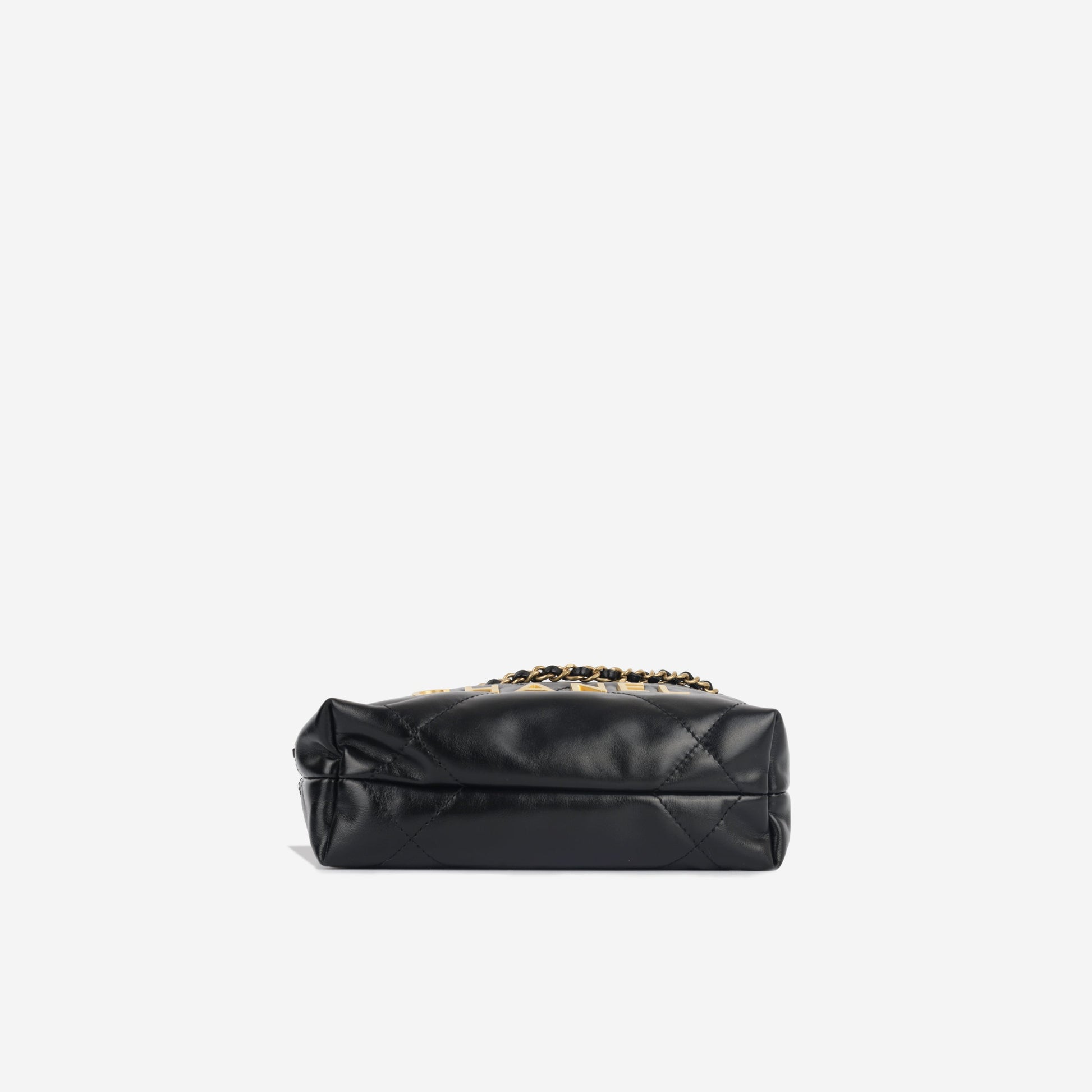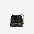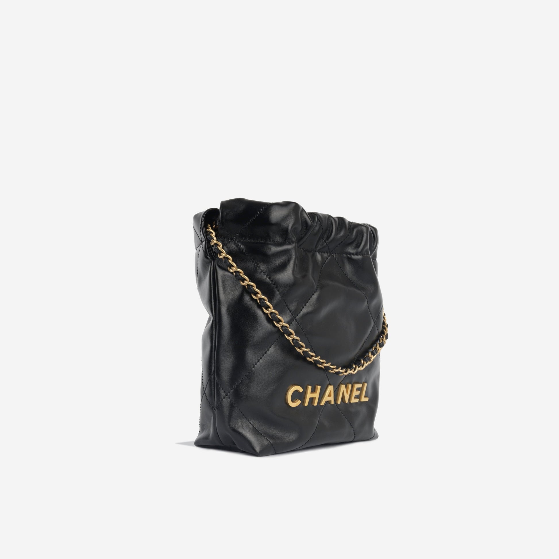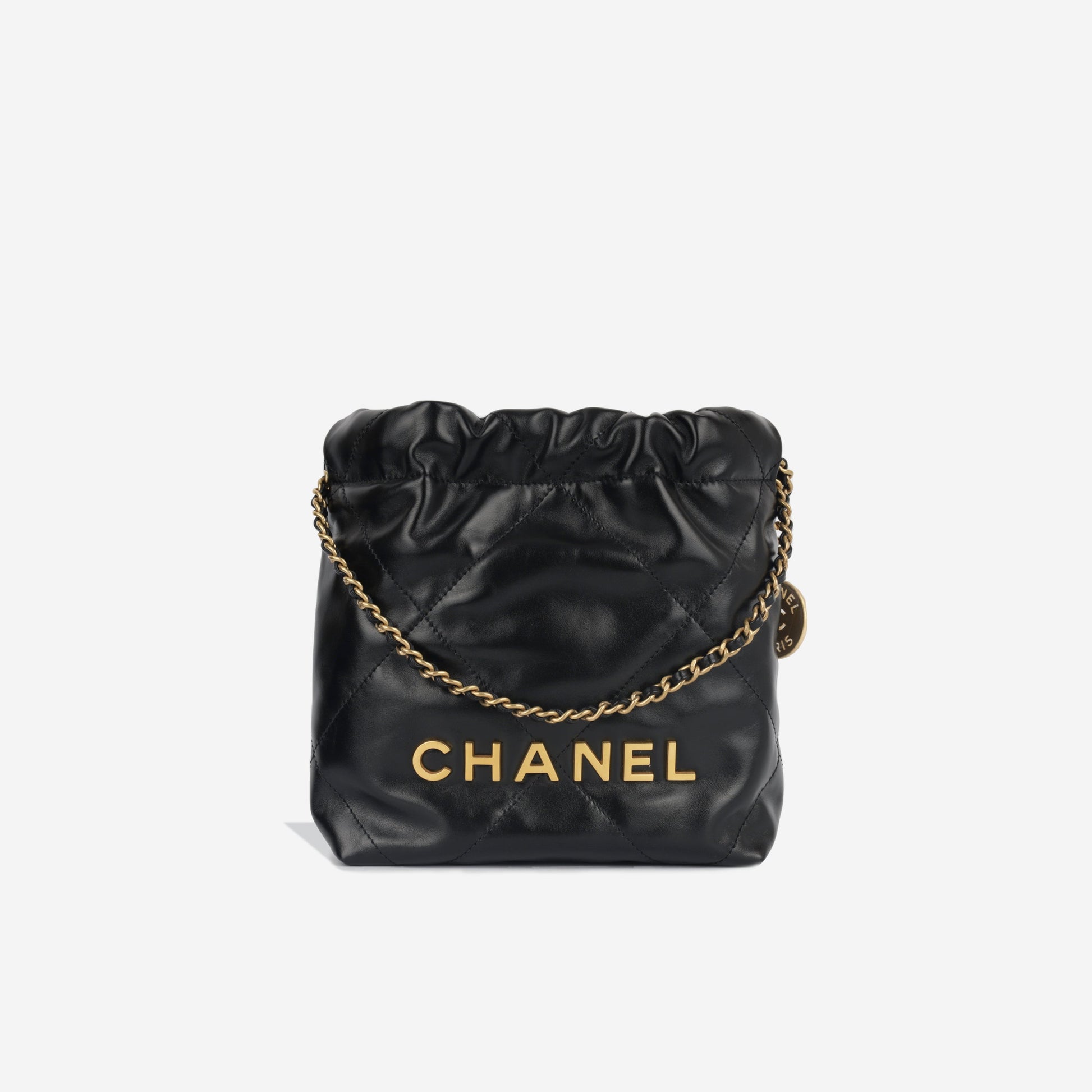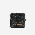 Carefully crafted from shiny crumpled calfskin leather, Chanel presents their 22 Mini. The chicest item for the lady that wants to carry everything around with them, this bag features Chanels classic interwoven back straps along with top handles to carry it handheld. This piece from 2023 is a well worthy addition to any luxury handbag collection.