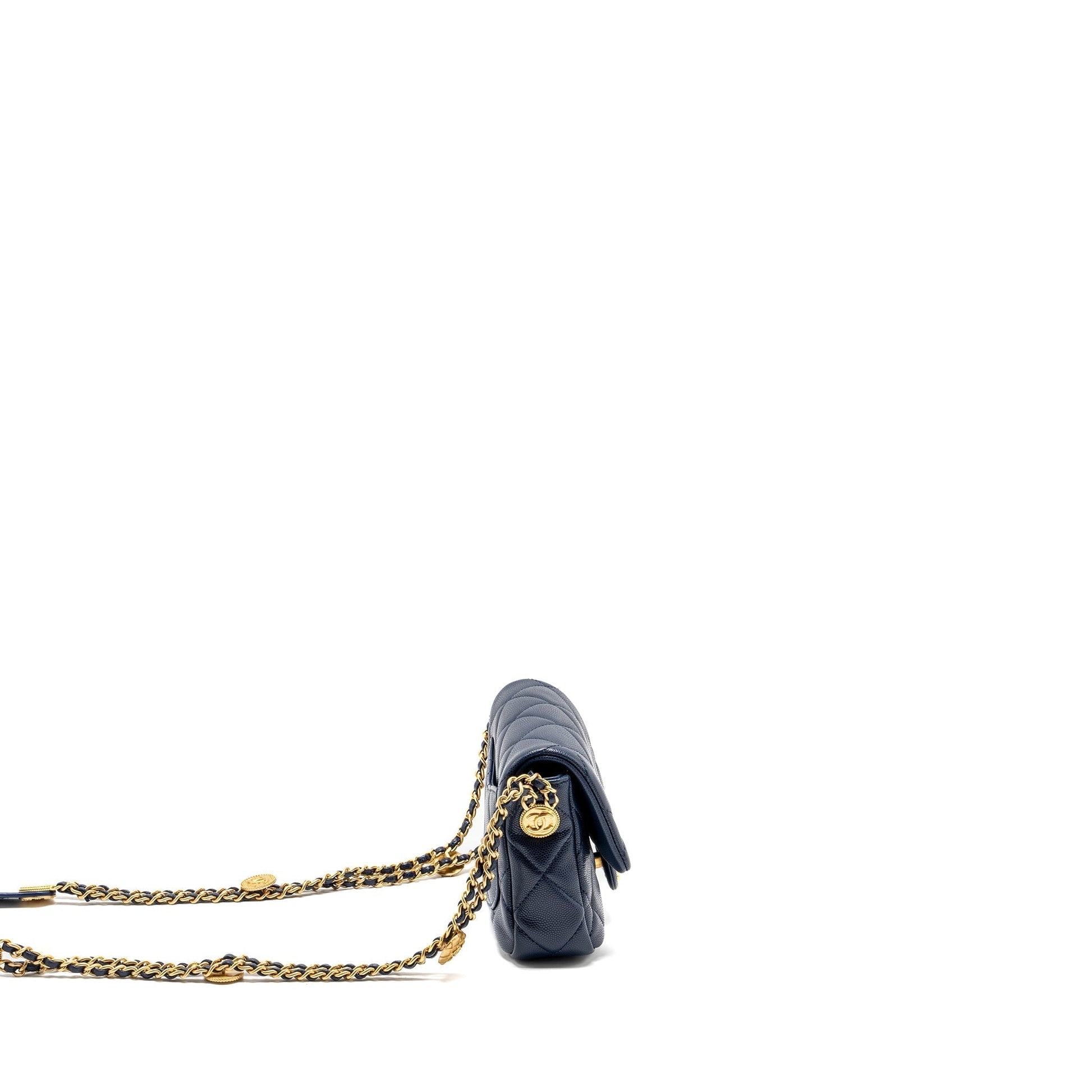Chanel 22A Button On Chain Mini Square Flap Bag Caviar Navy GHW (Microchip)