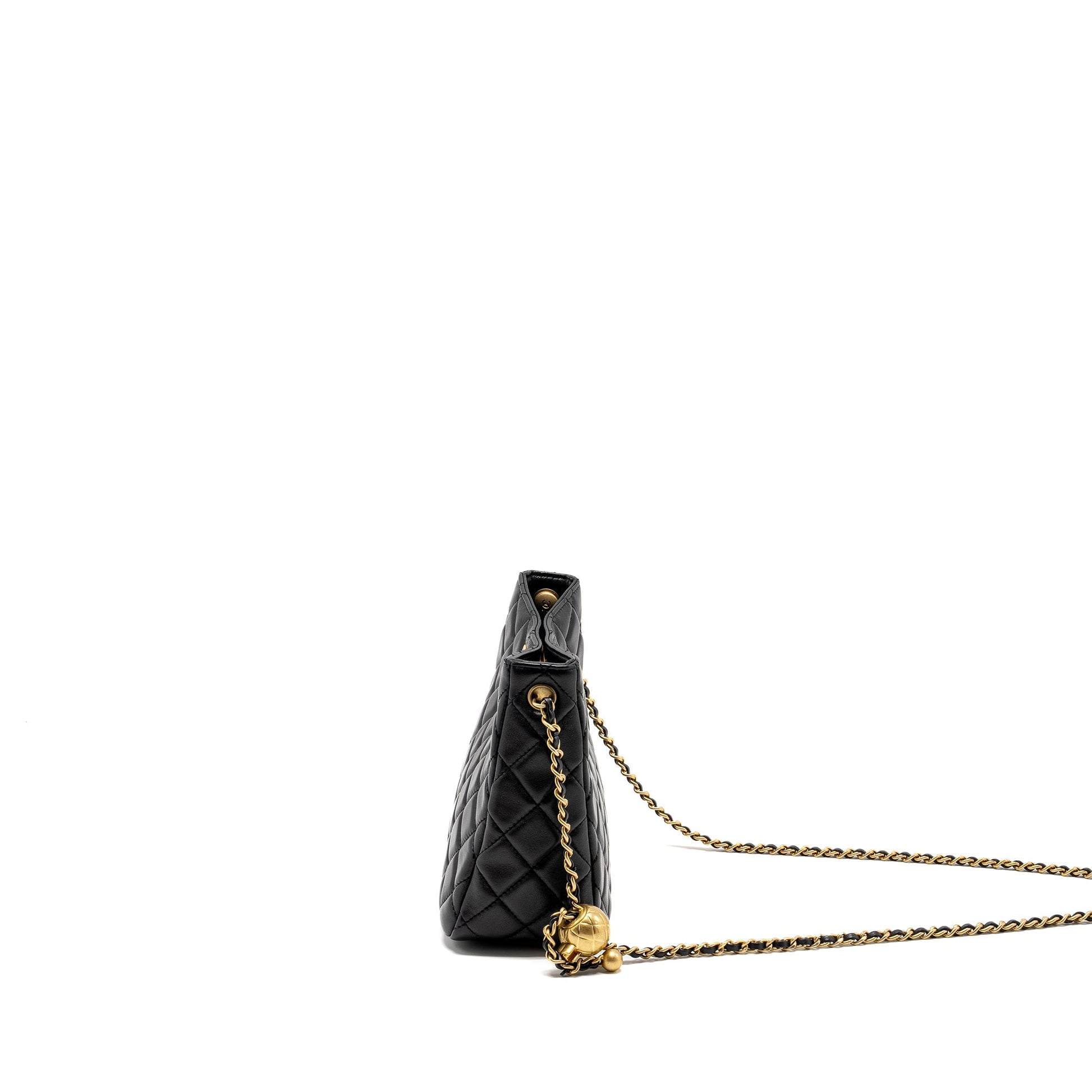 Chanel 22B Pearl Crush Hobo Bag Lambskin BLACK GHW (Microchip)