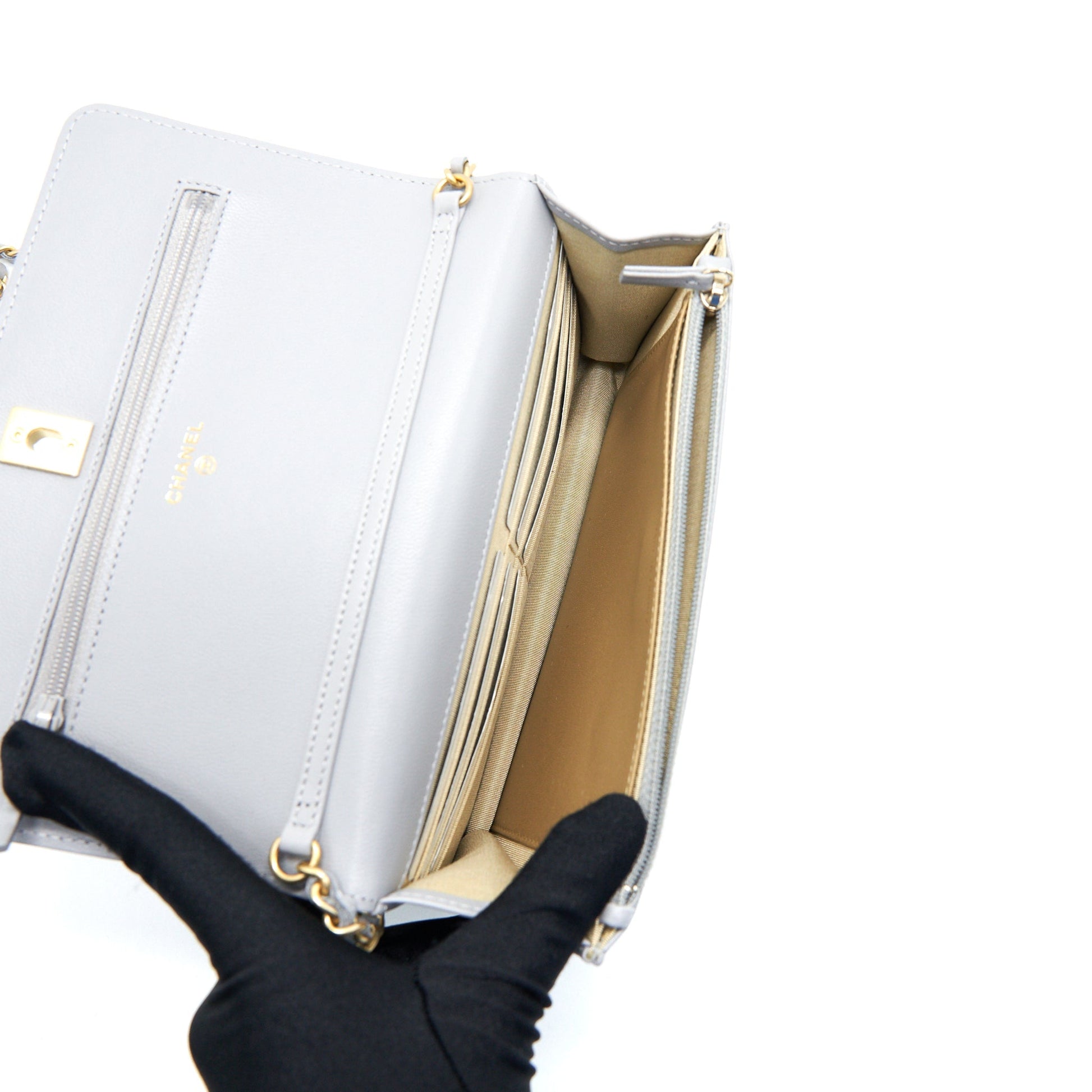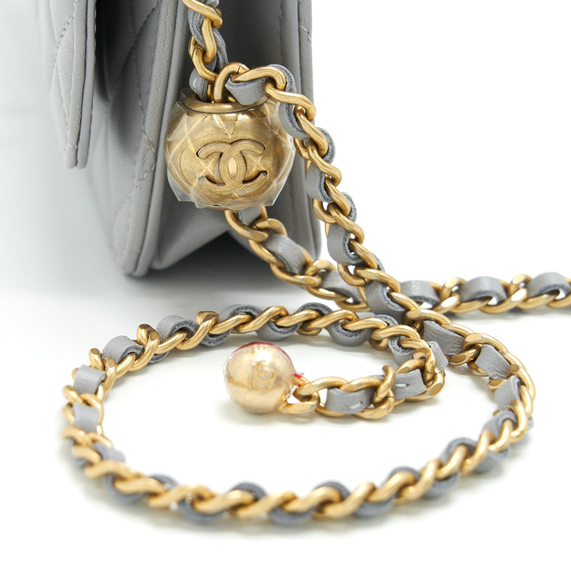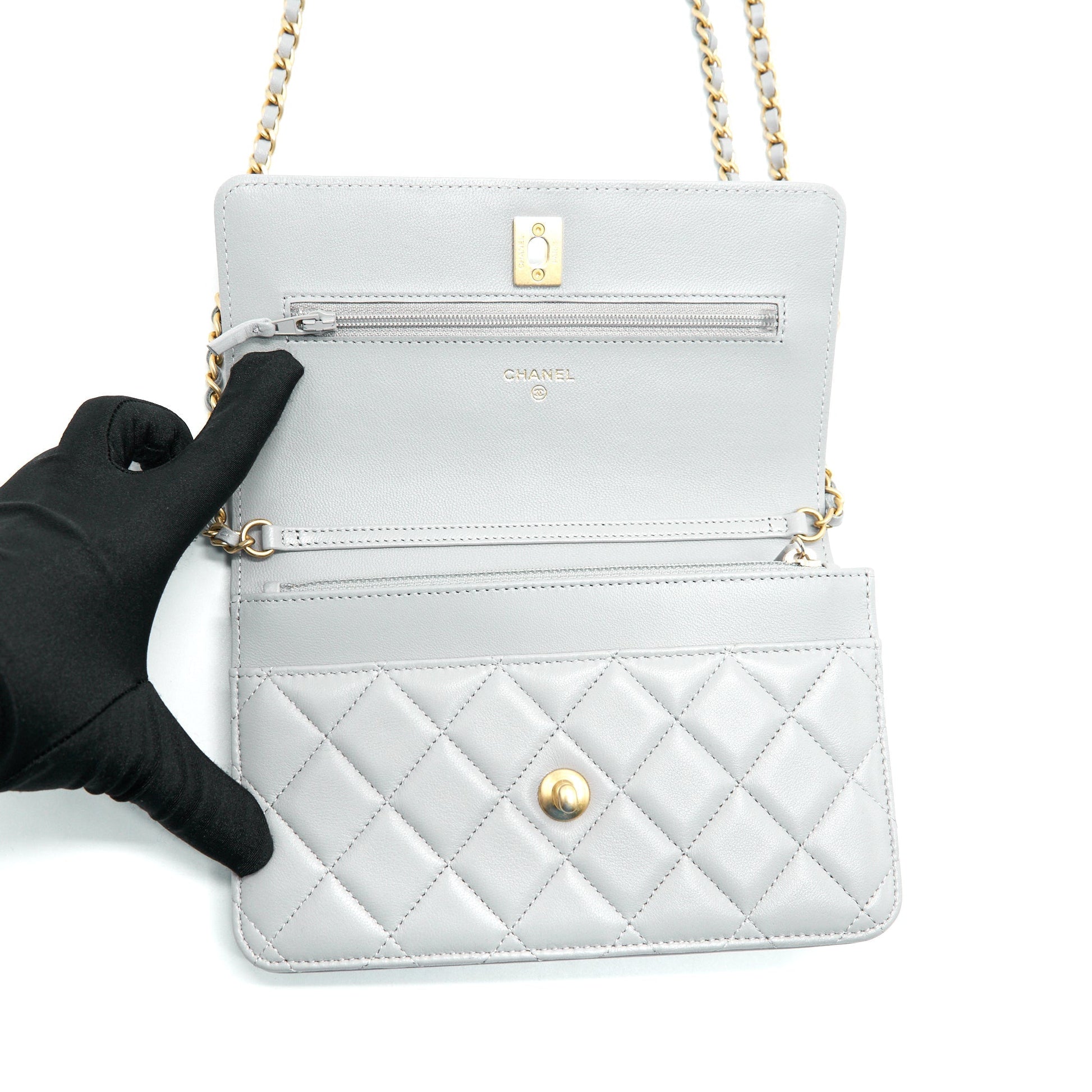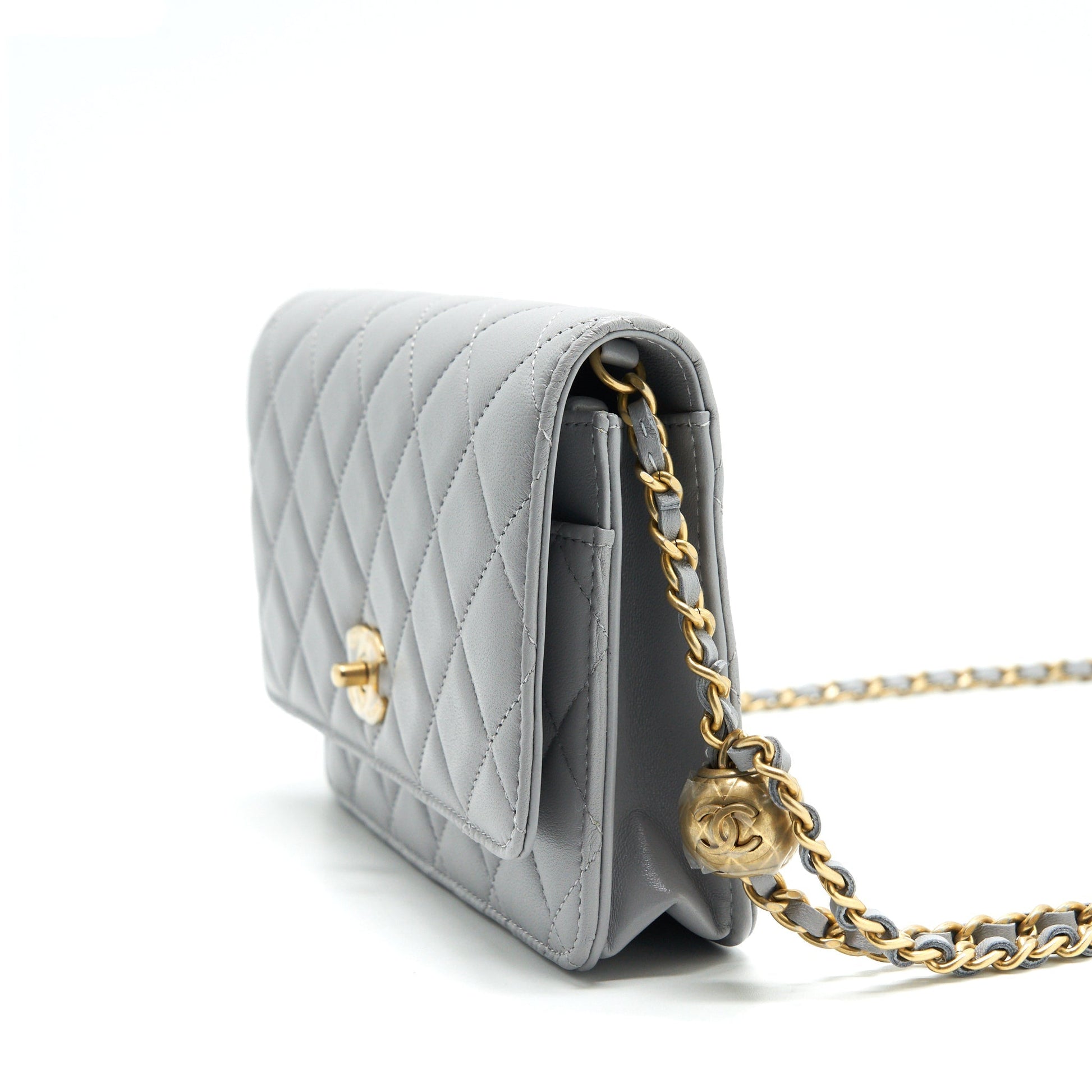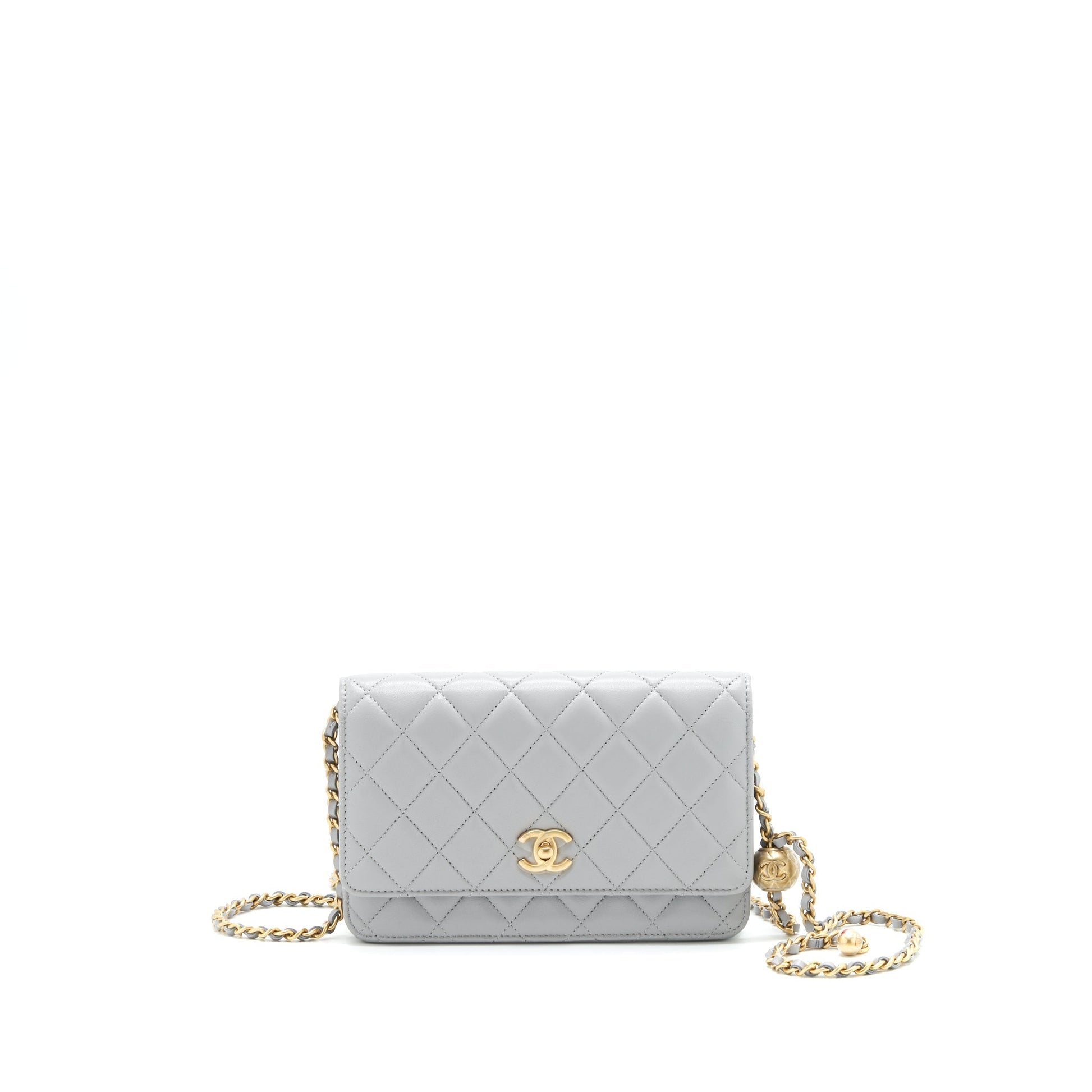 Chanel Pearl Crush Wallet On Chain Lambskin Grey GHW (Microchip)