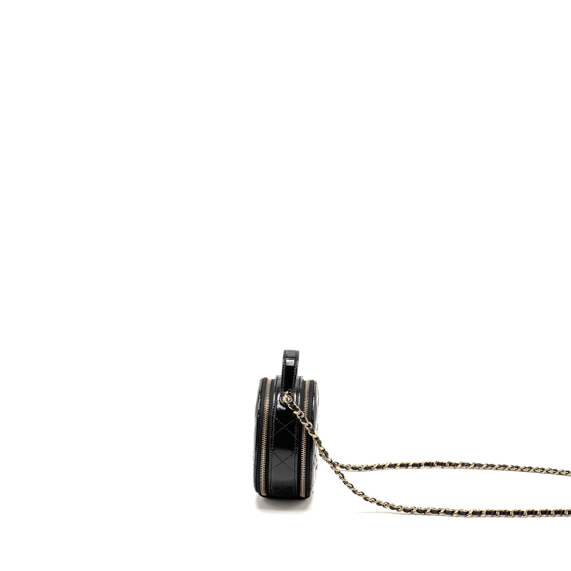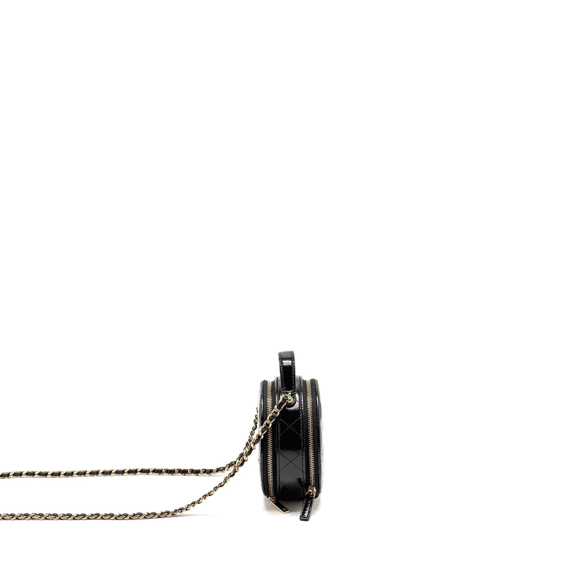 Chanel 22B Top Handle Mini Round Vanity Case With Chain Shiny Lambskin Black LGHW (Microchip)