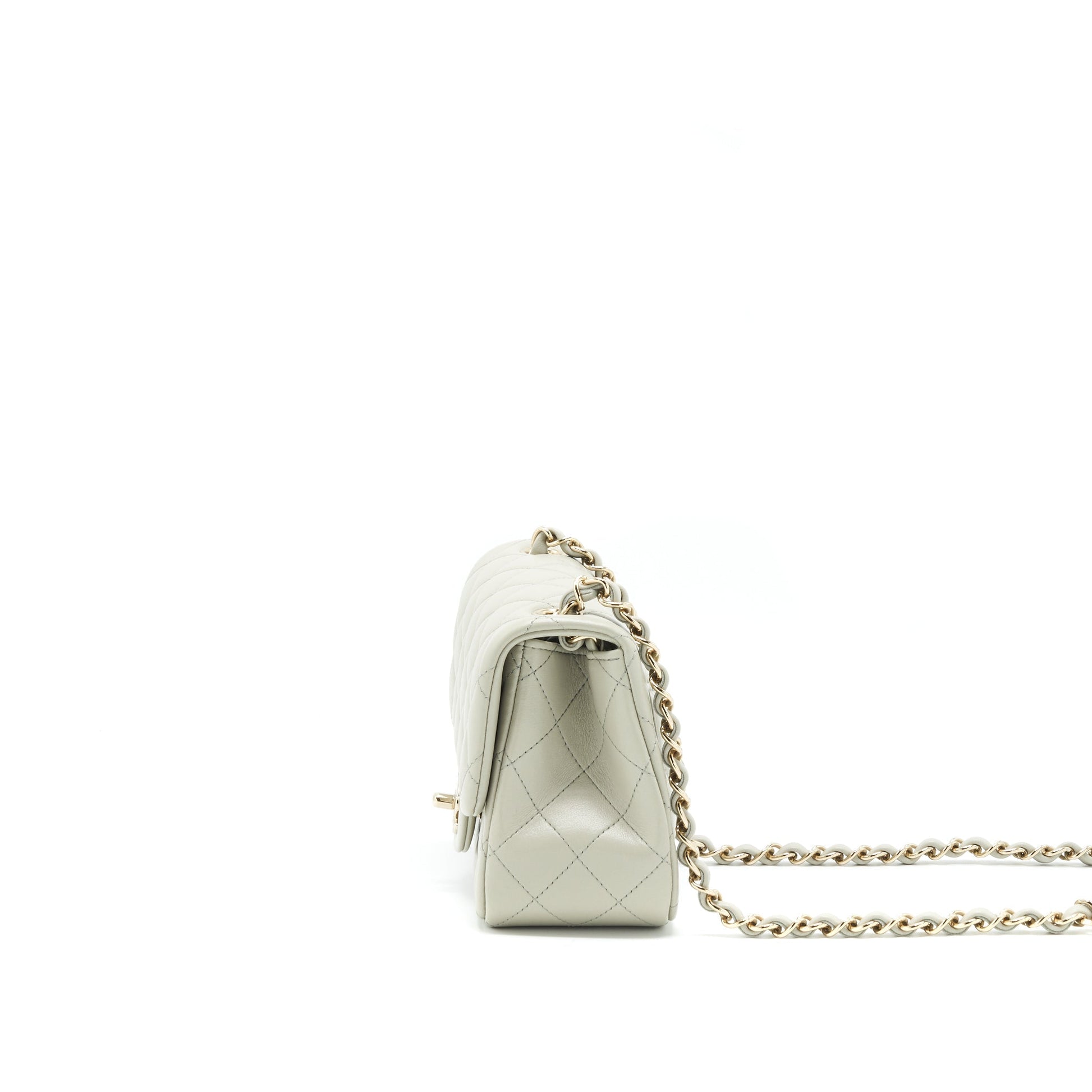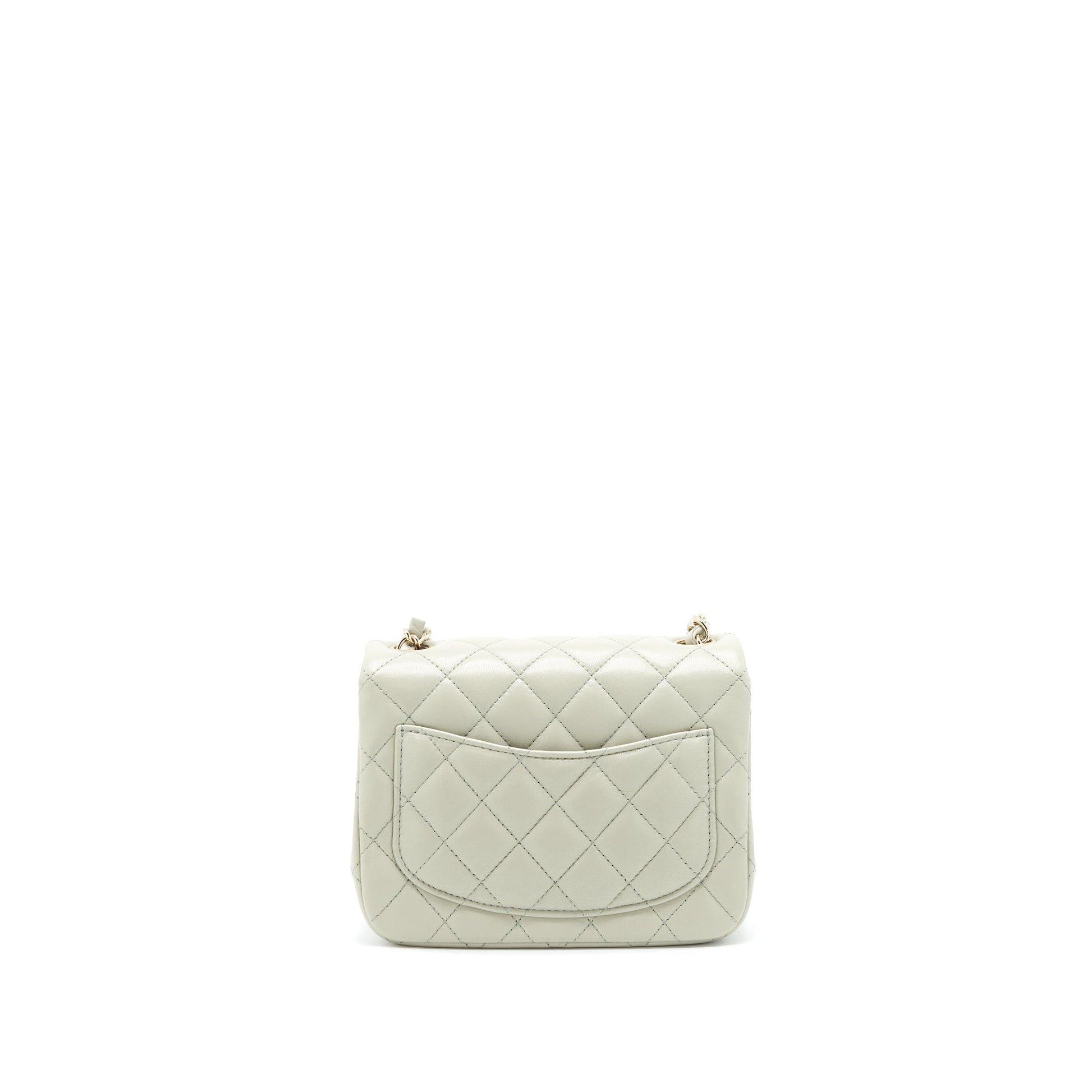 Chanel 22C Mini Square Flap Bag Lambskin Light Grey LGHW (Microchip)