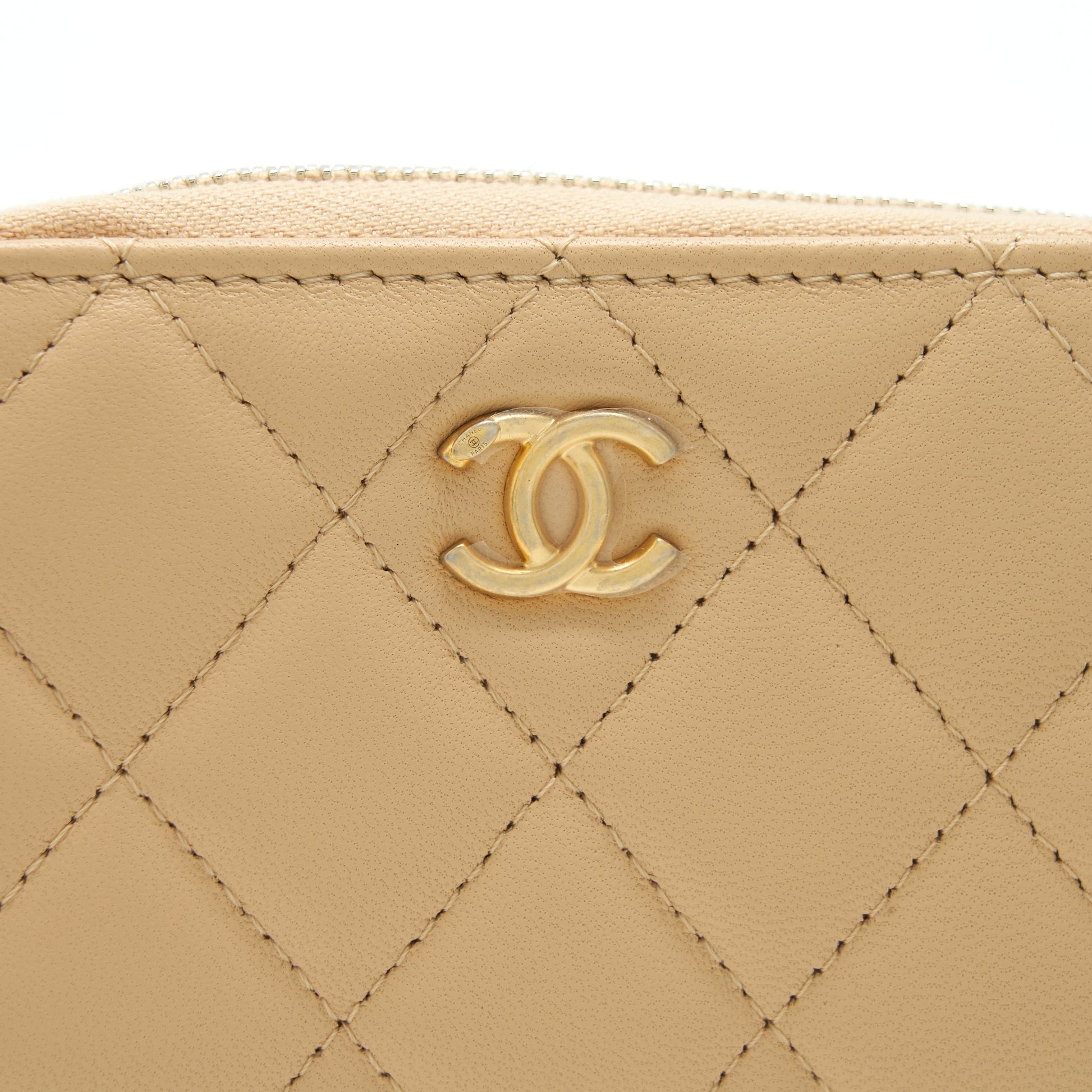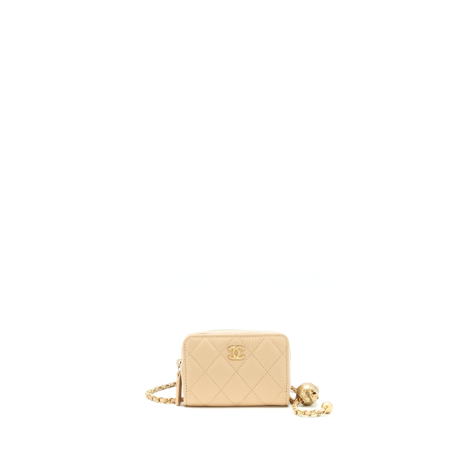 Chanel 22C Pearl Crush Card Holder With Chain Beige GHW