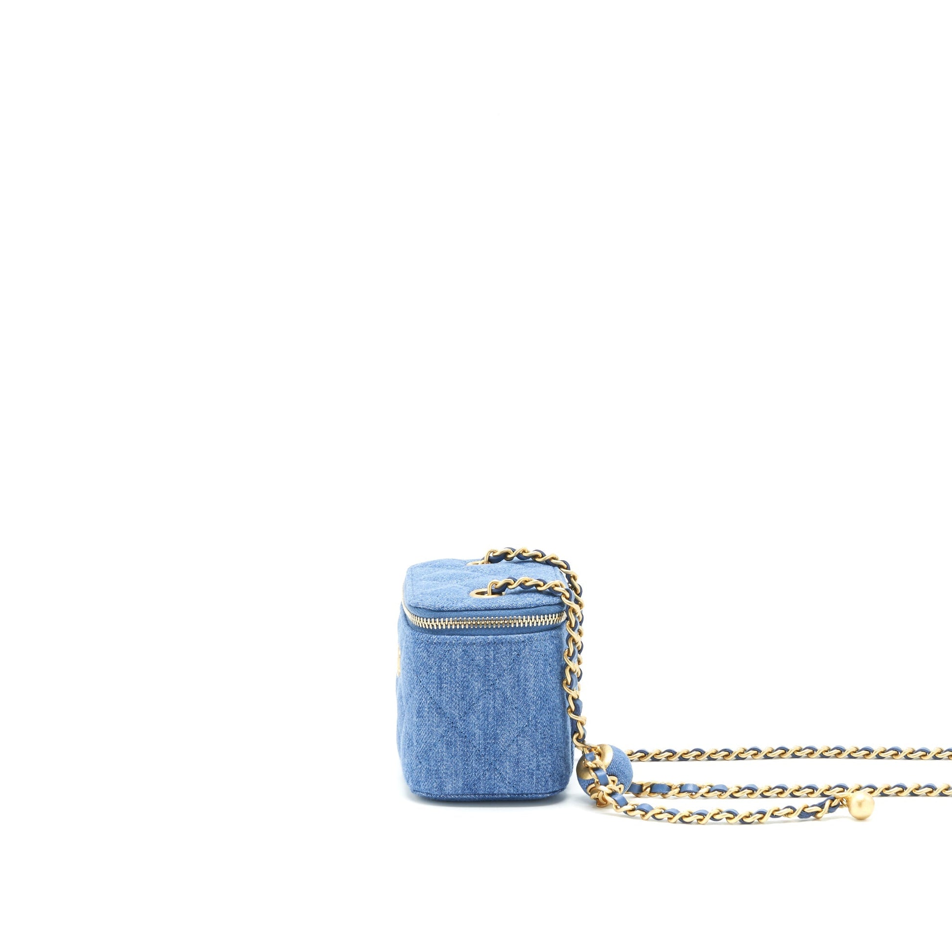 Chanel 22C Pearl Crush Denim Mini Vanity With Chain