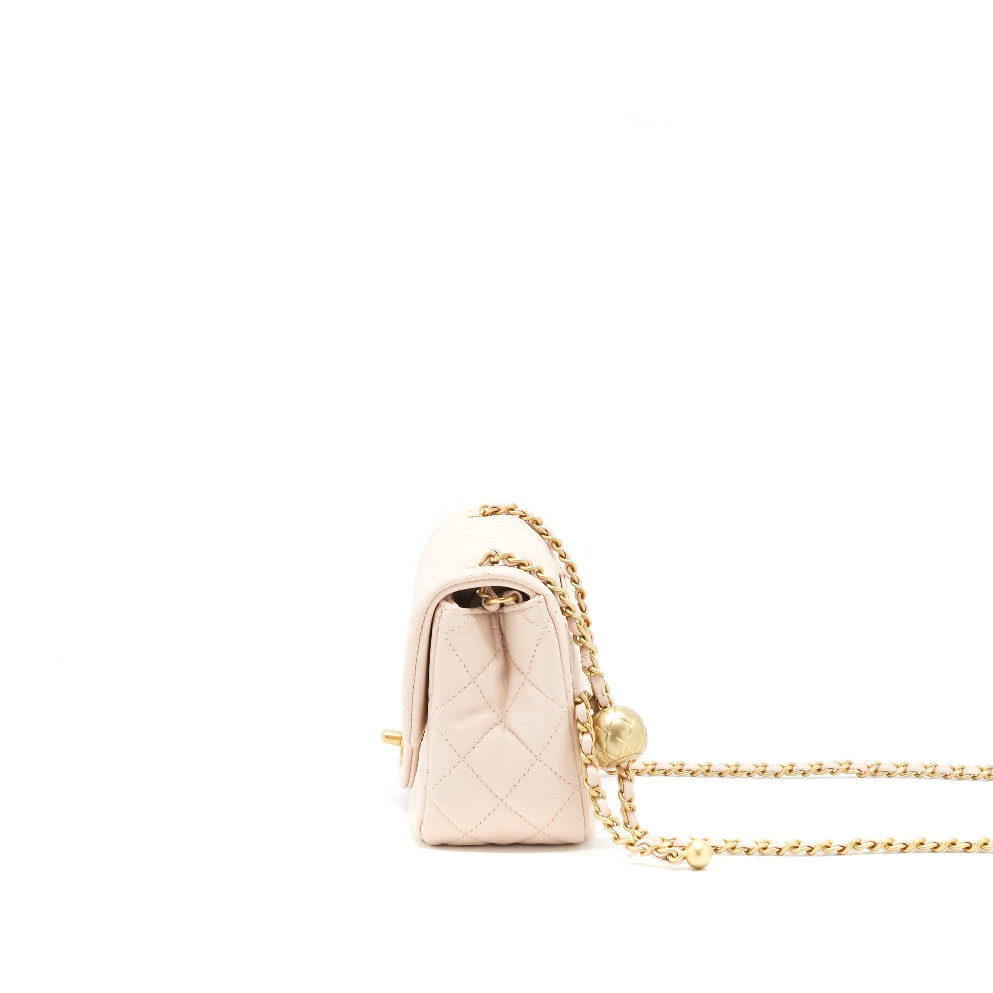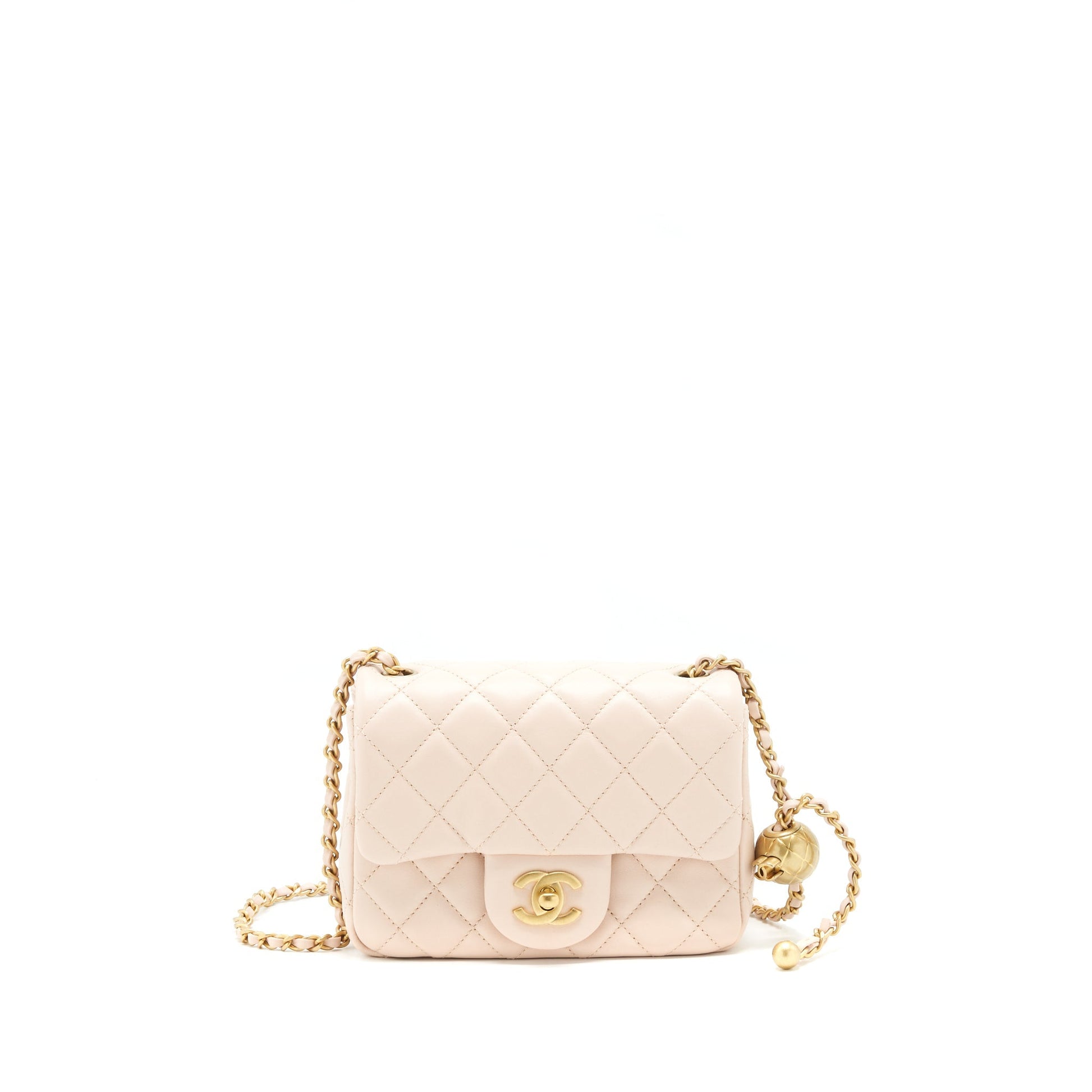 Chanel 22C Pearl Crush Mini Square Flap Bag Lambskin Light Pink GHW (Microchip)