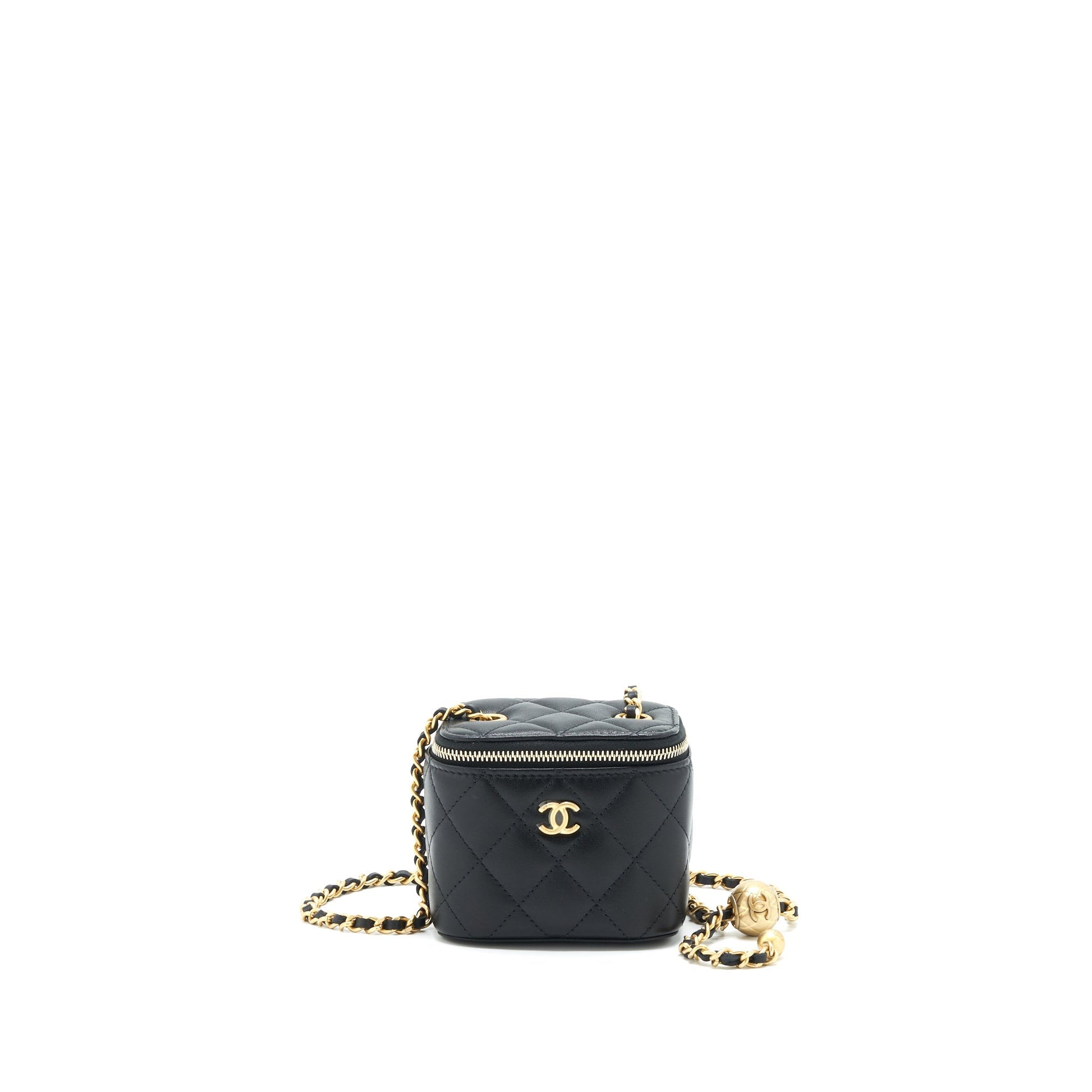 Chanel 22C Pearl Crush Mini Vanity With Chain Lambskin Black GHW