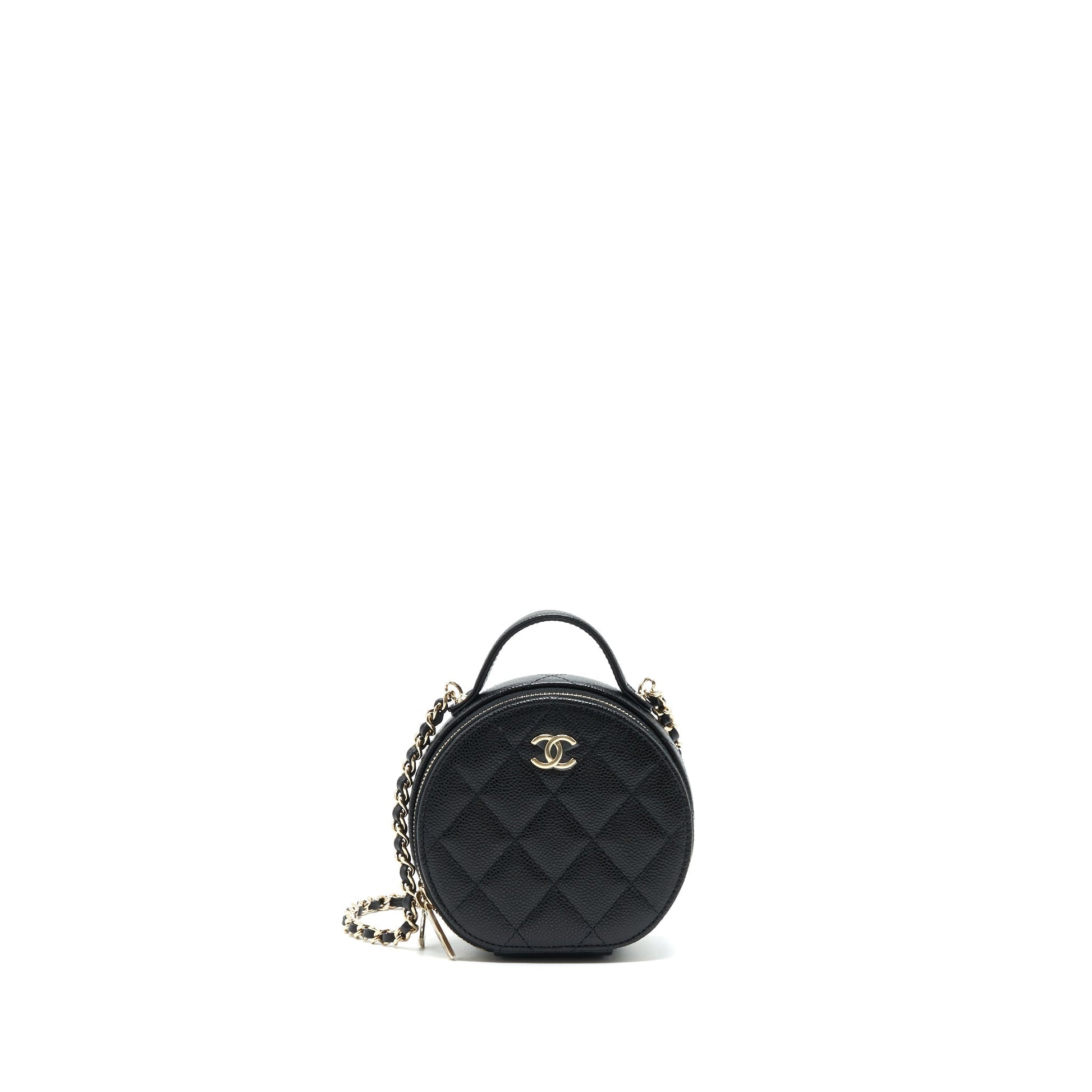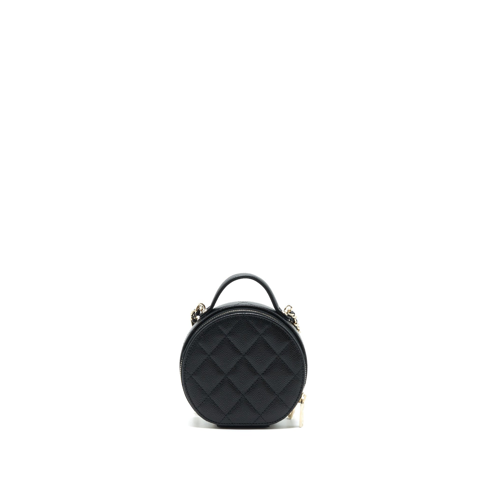 Chanel 22C Top Handle Round Vanity Black With Chain Caviar LGHW