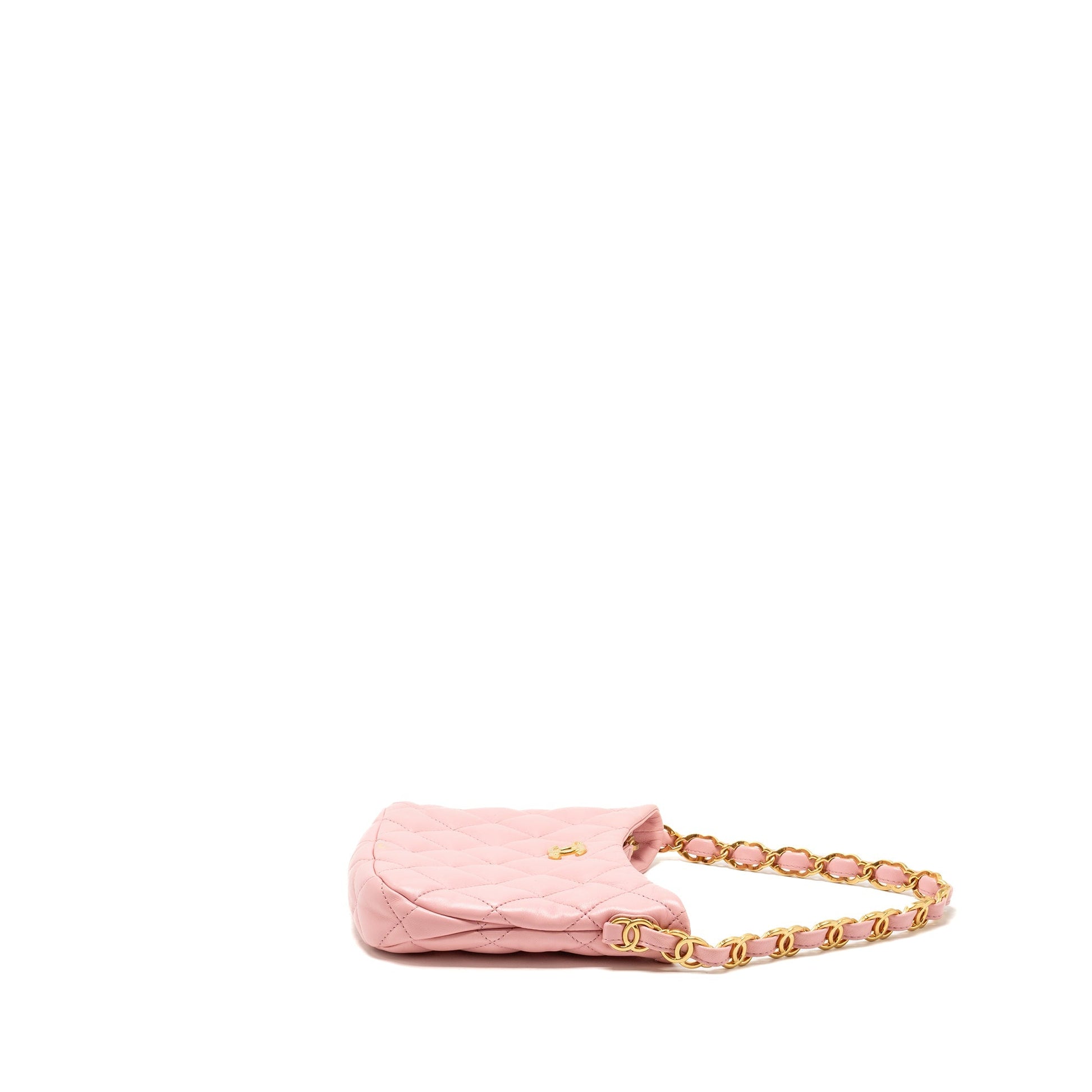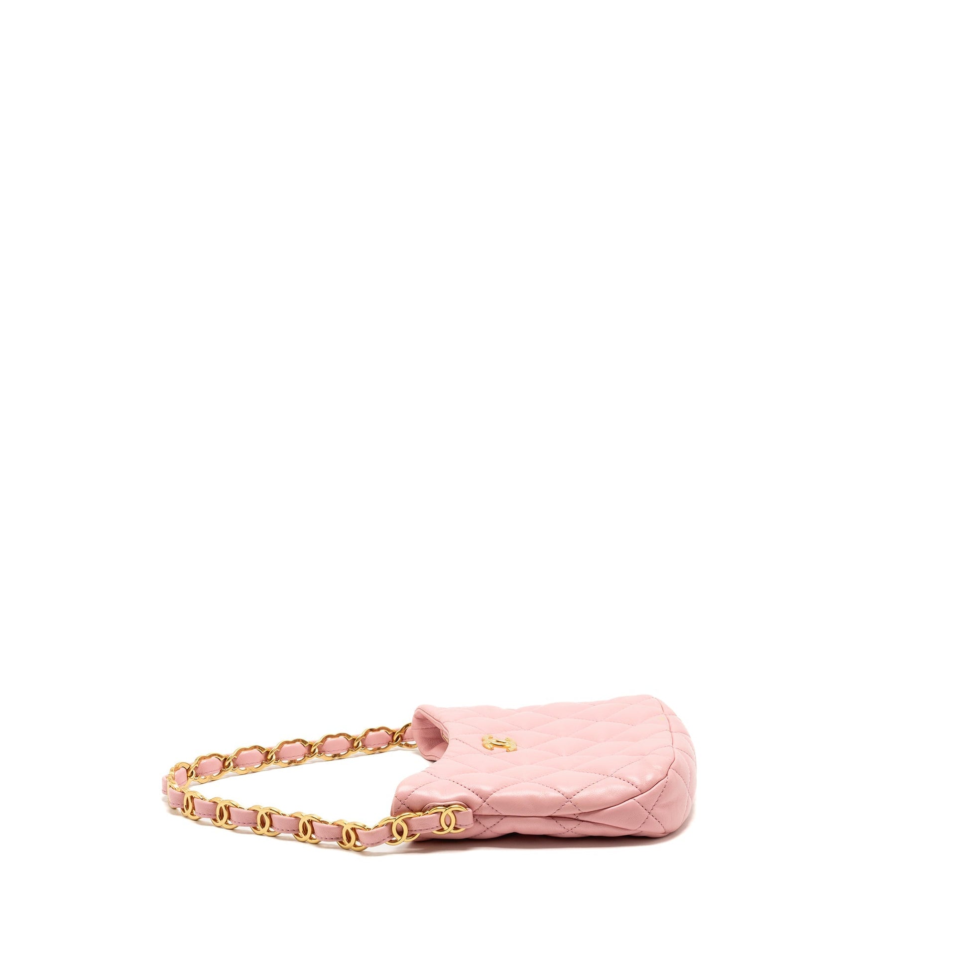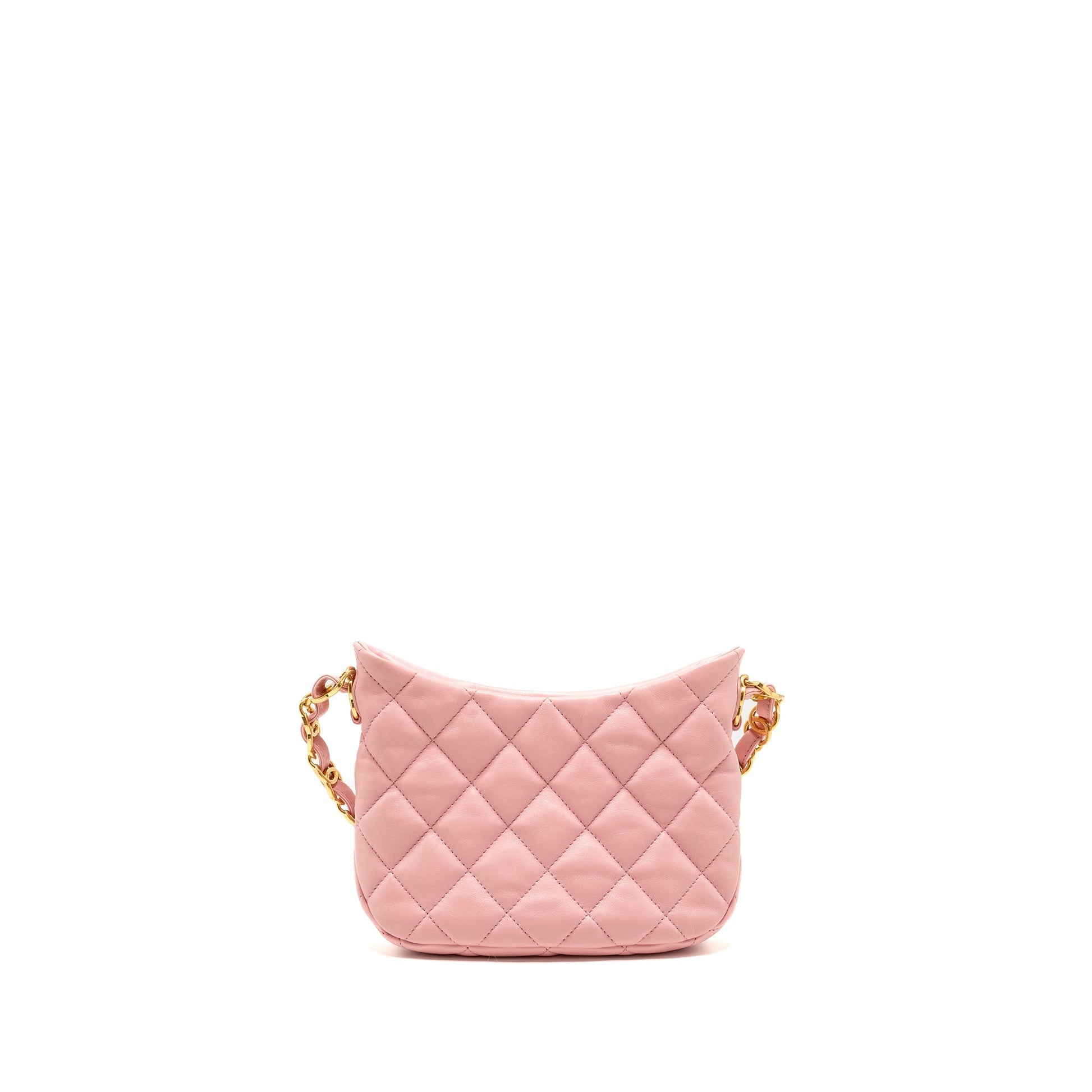 Chanel 22k Hobo Shoulder Bag with Logo Chain Lambskin Pink GHW (microchip)