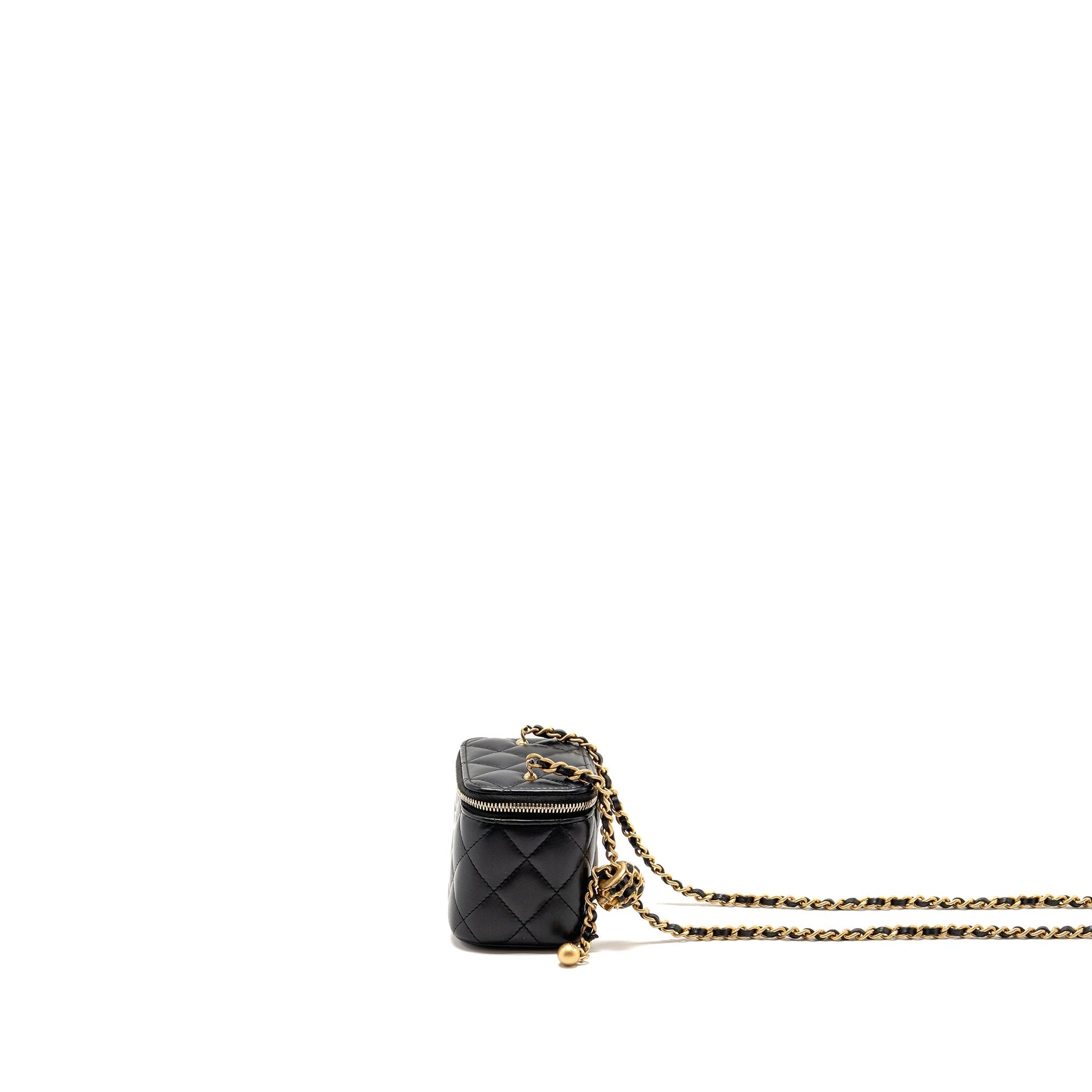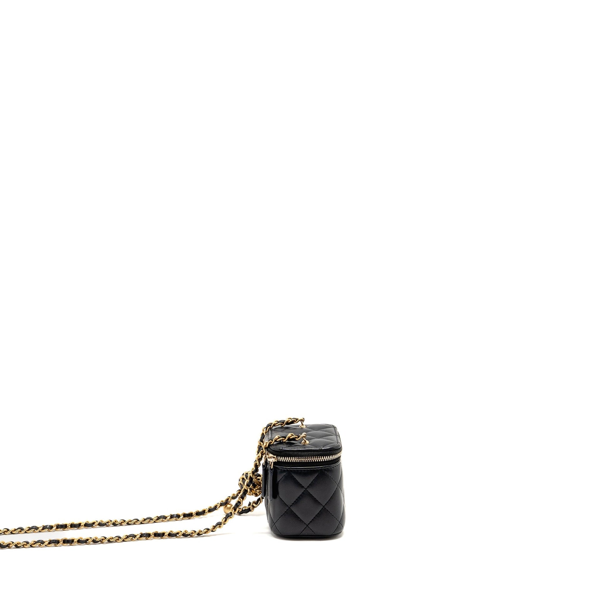 Chanel 22s Pearl Crush Mini Vanity With Chain Lambskin Black GHW