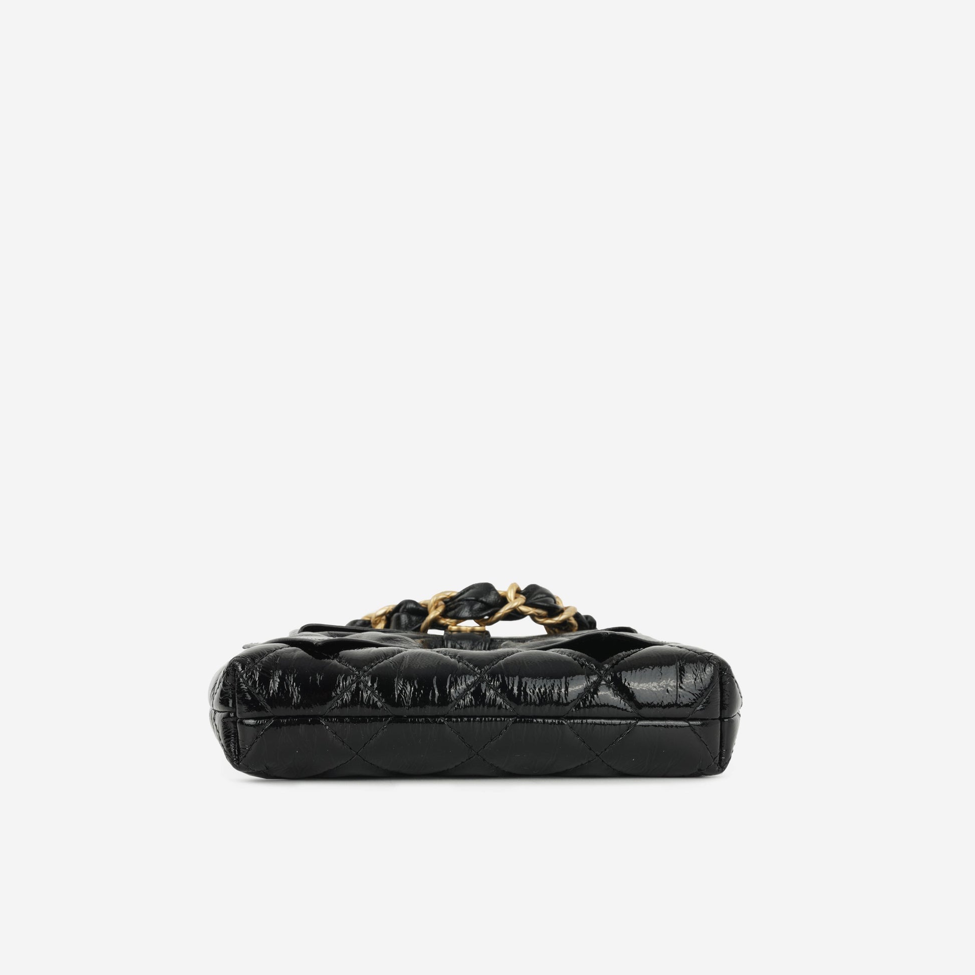 Chanel 24A Bowknot Clutch on ChainBlack Shiny Crumpled Calfskin Aged Gold Hardware