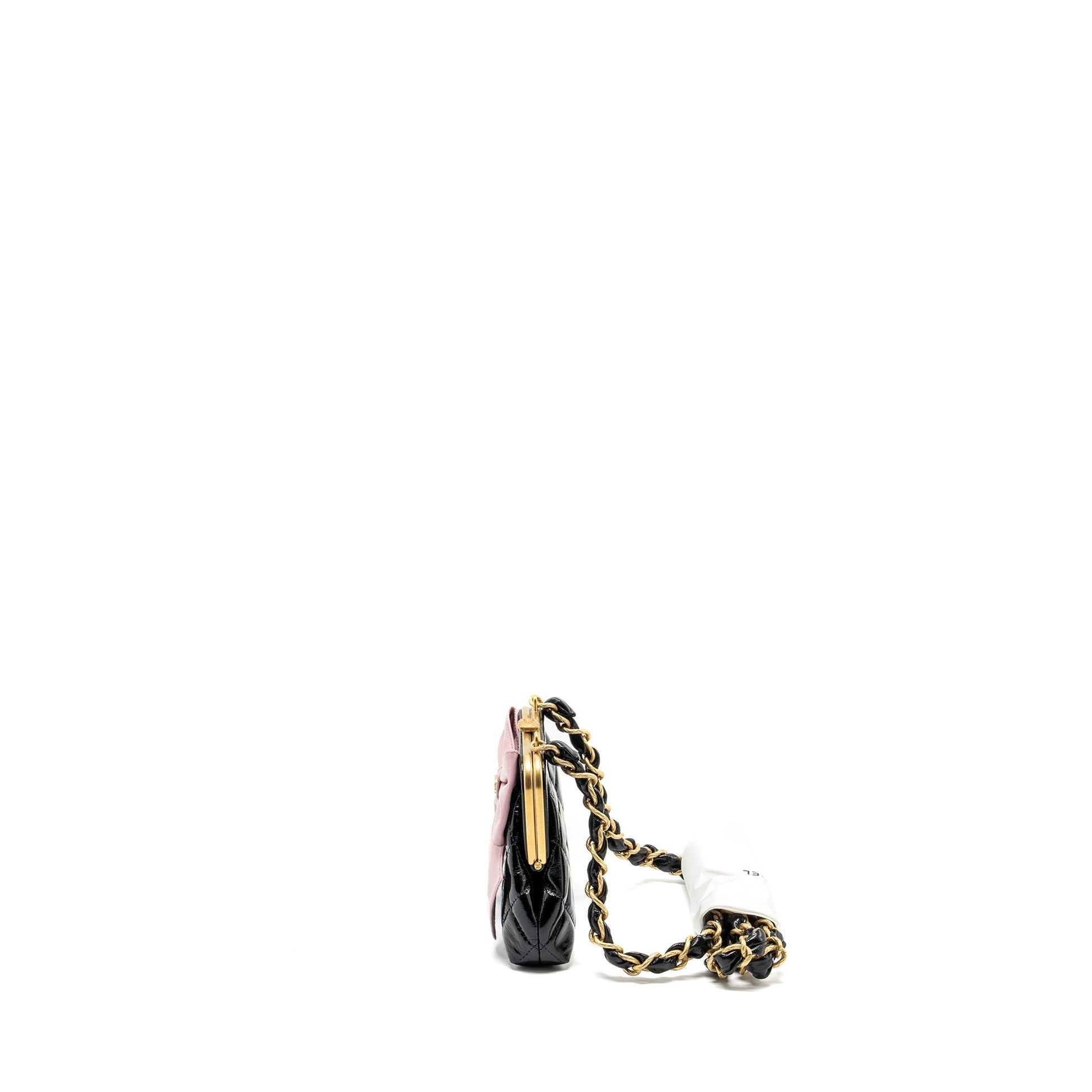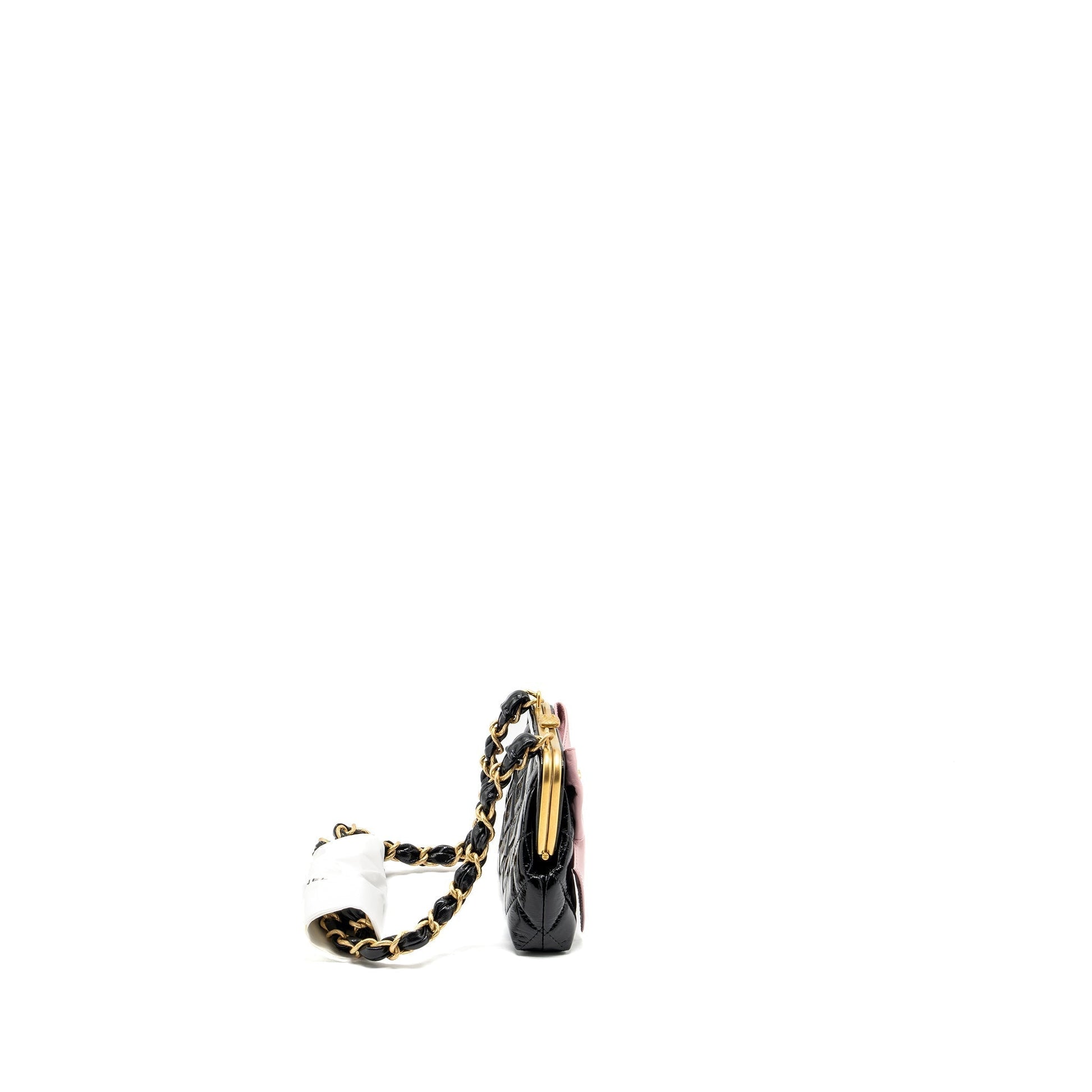 Chanel 24a Bowknot Clutch with Chain Patent Crumpled Lambskin/Shiny Lambskin Black/Pink GHW (Microchip)