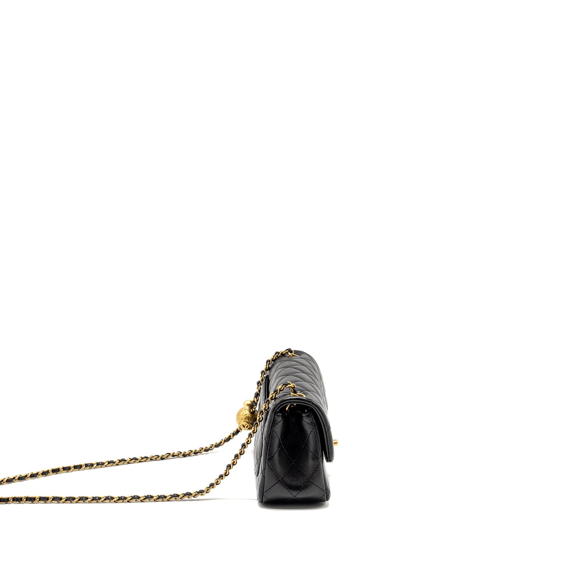 Chanel 24K Pearl Crush Mini Rectangular Flap Bag Shiny Lambskin Black GHW (Microchip)