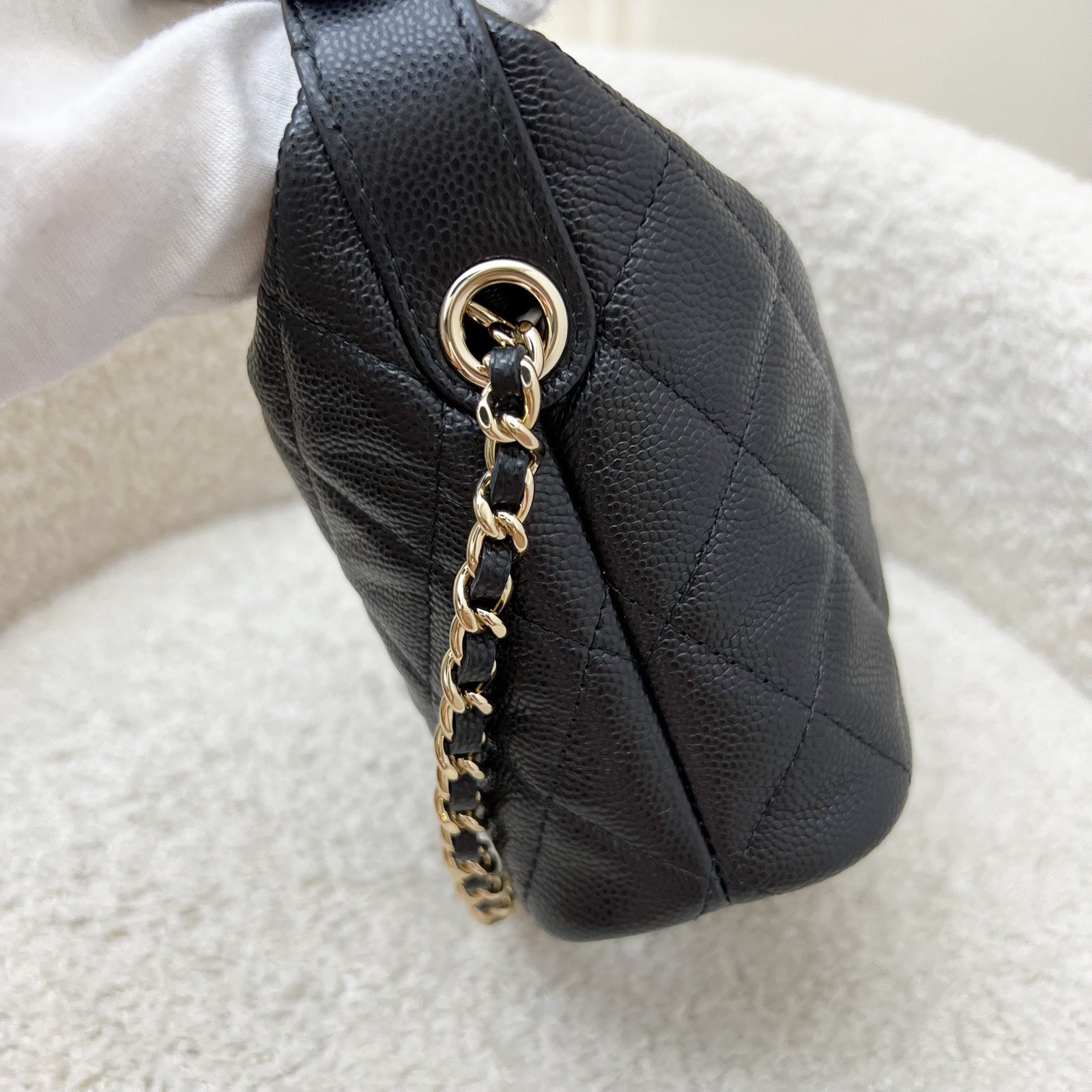 Chanel 25C Quilted Hobo Clutch on Chain in Black Caviar and LGHW (Model: AP4386)