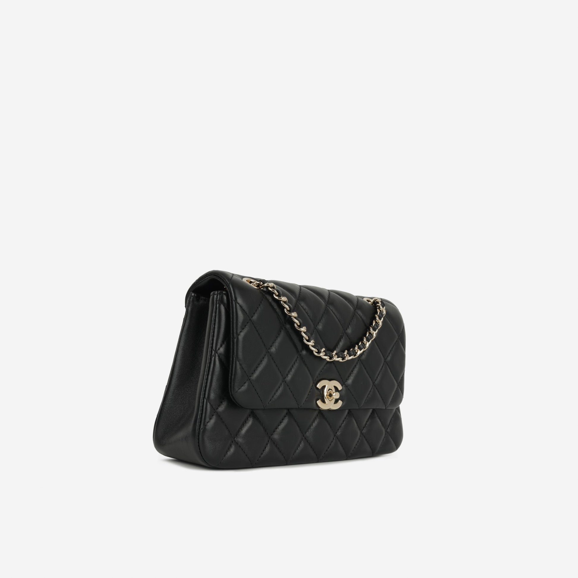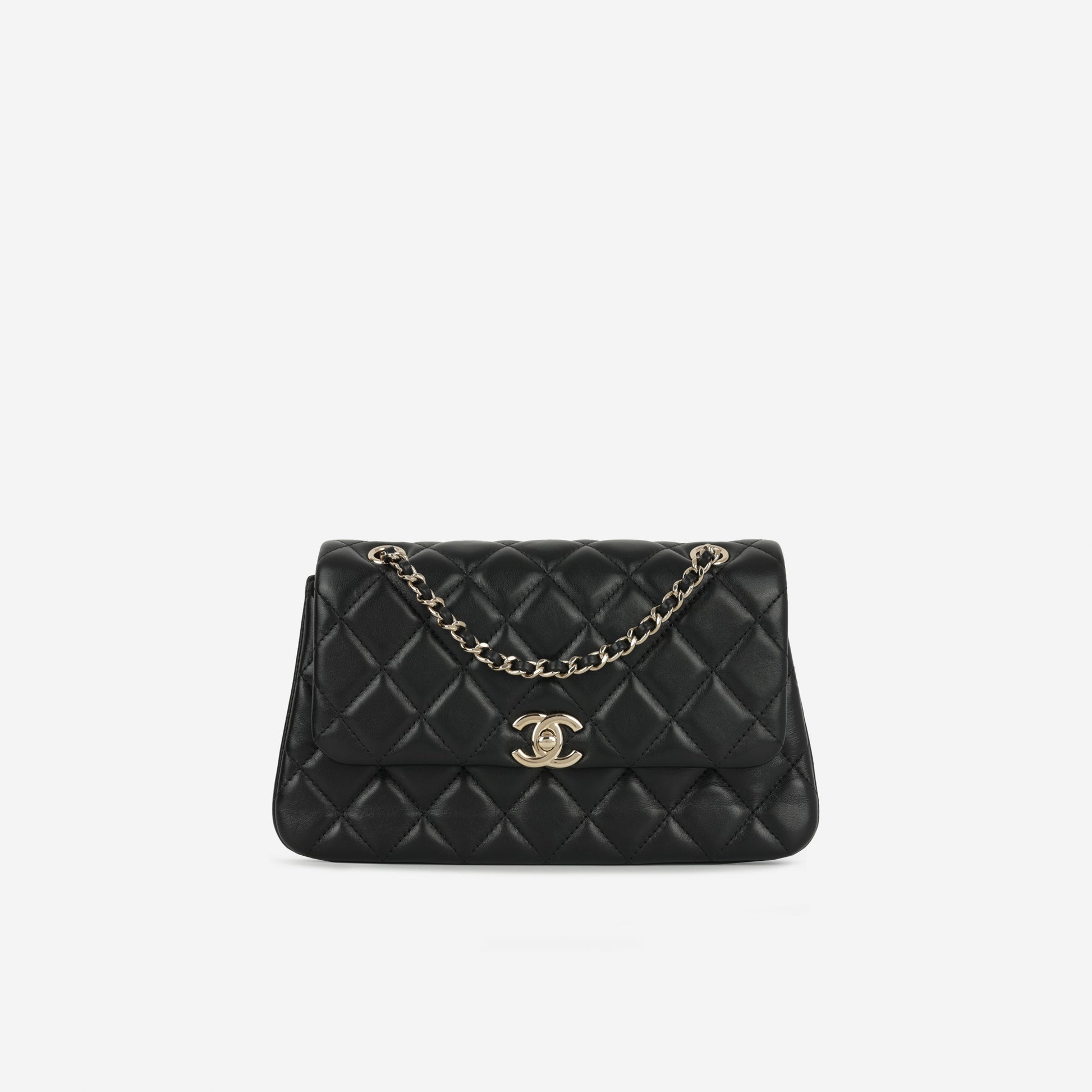 Chanel 25S Classic Flap Bag Black Lambskin Champagne Gold Hardware