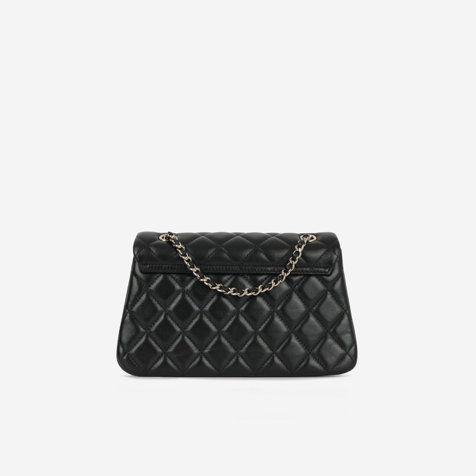 The Chanel 25S Classic Flap Bag in black lambskin leather with champagne gold hardware is the epitome of timeless luxury. Handcrafted with Chanel’s signature diamond quilting and finished with the iconic CC turn-lock closure, this bag embodies elegance and sophistication.
