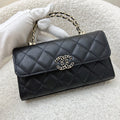 Chanel 25S Top Handle Kelly Clutch with Chain in Black Caviar and GHW